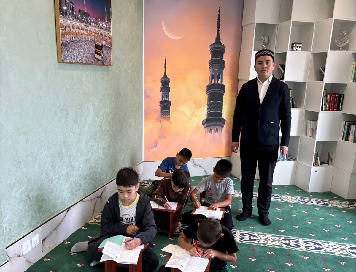 Дәрістерді мешіт имамы Орынбай Ерлан жүргізіп жатыр. Балалардың Құран әліппесін үйреніп, тәджуид қағидаларын меңгеруіне ерекше мән беріледі.