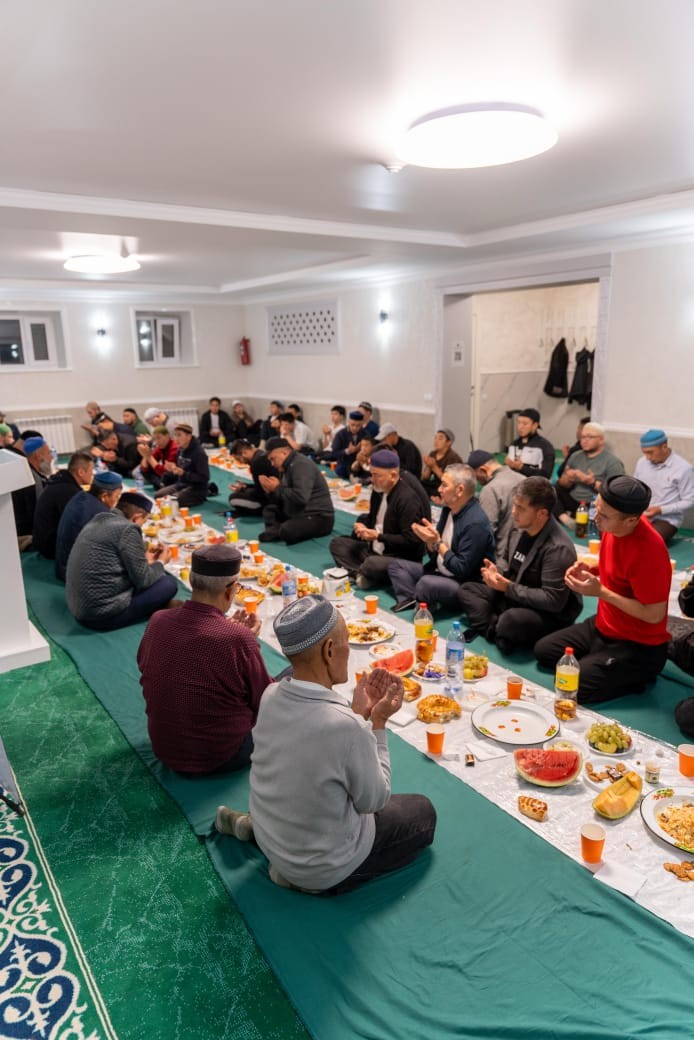 Кеш соңында мешіт ақсақалдары Пайғамбарымызға ﷺ мадақ айтып, дастарқан басында бата берді.