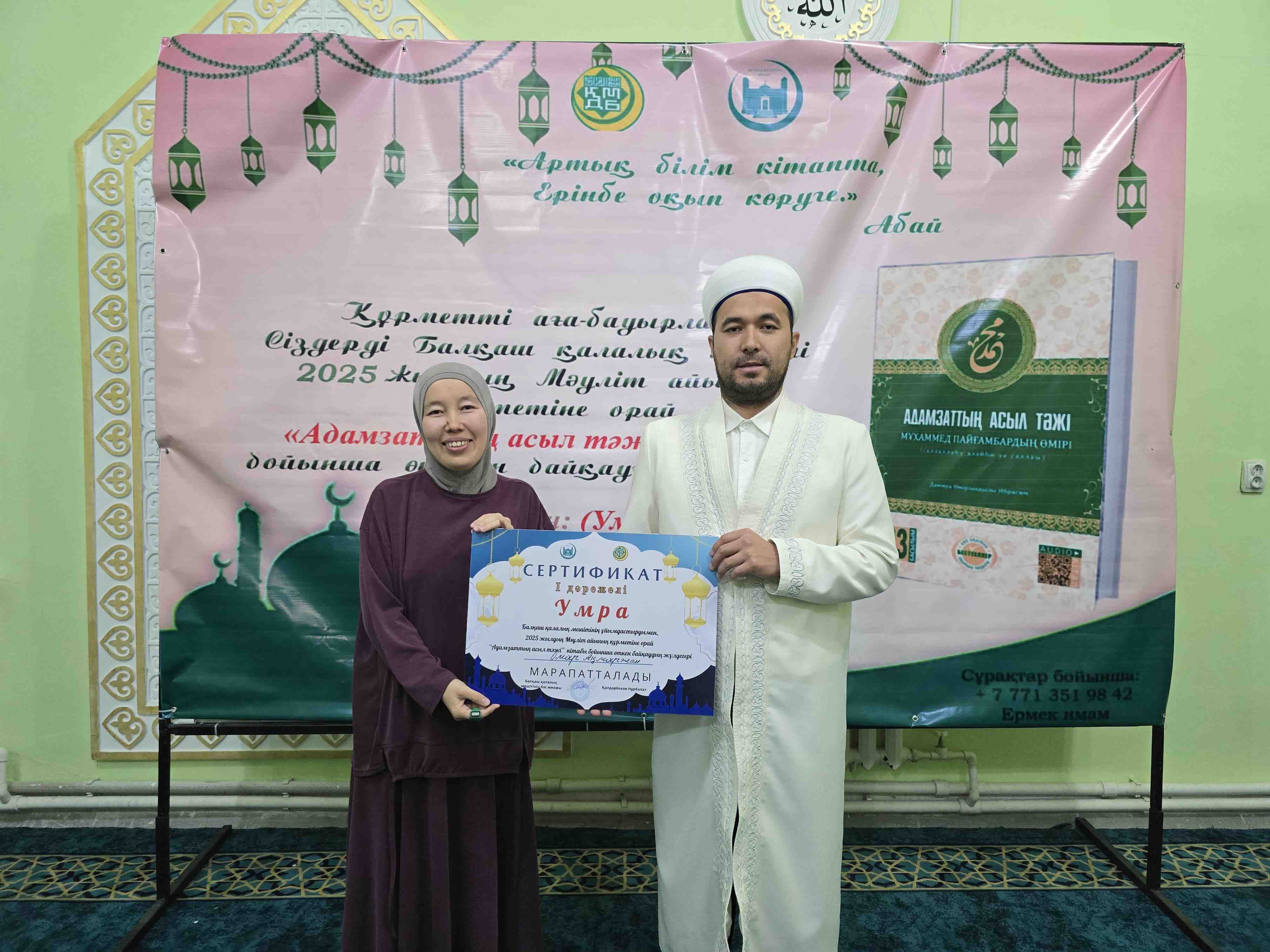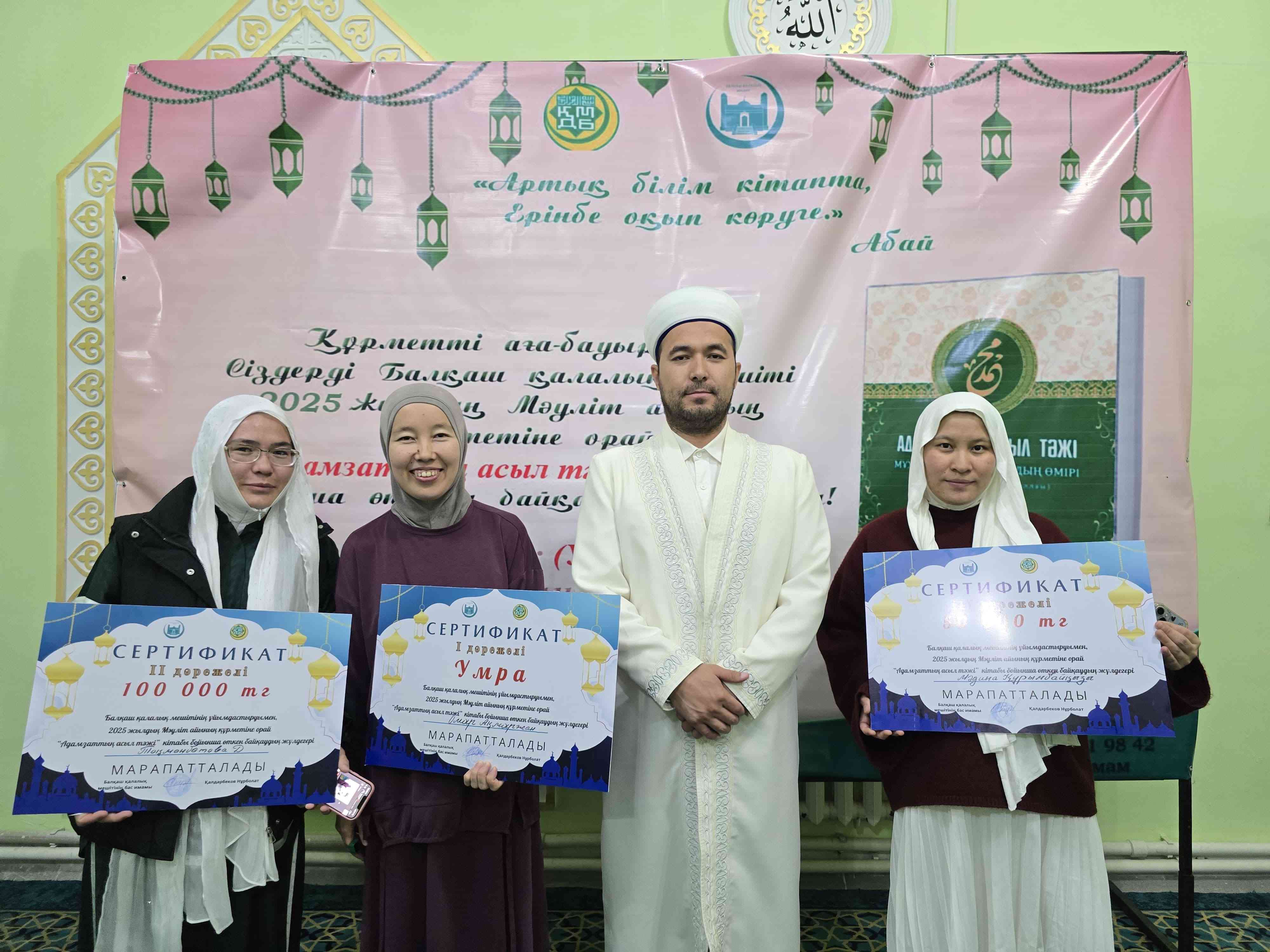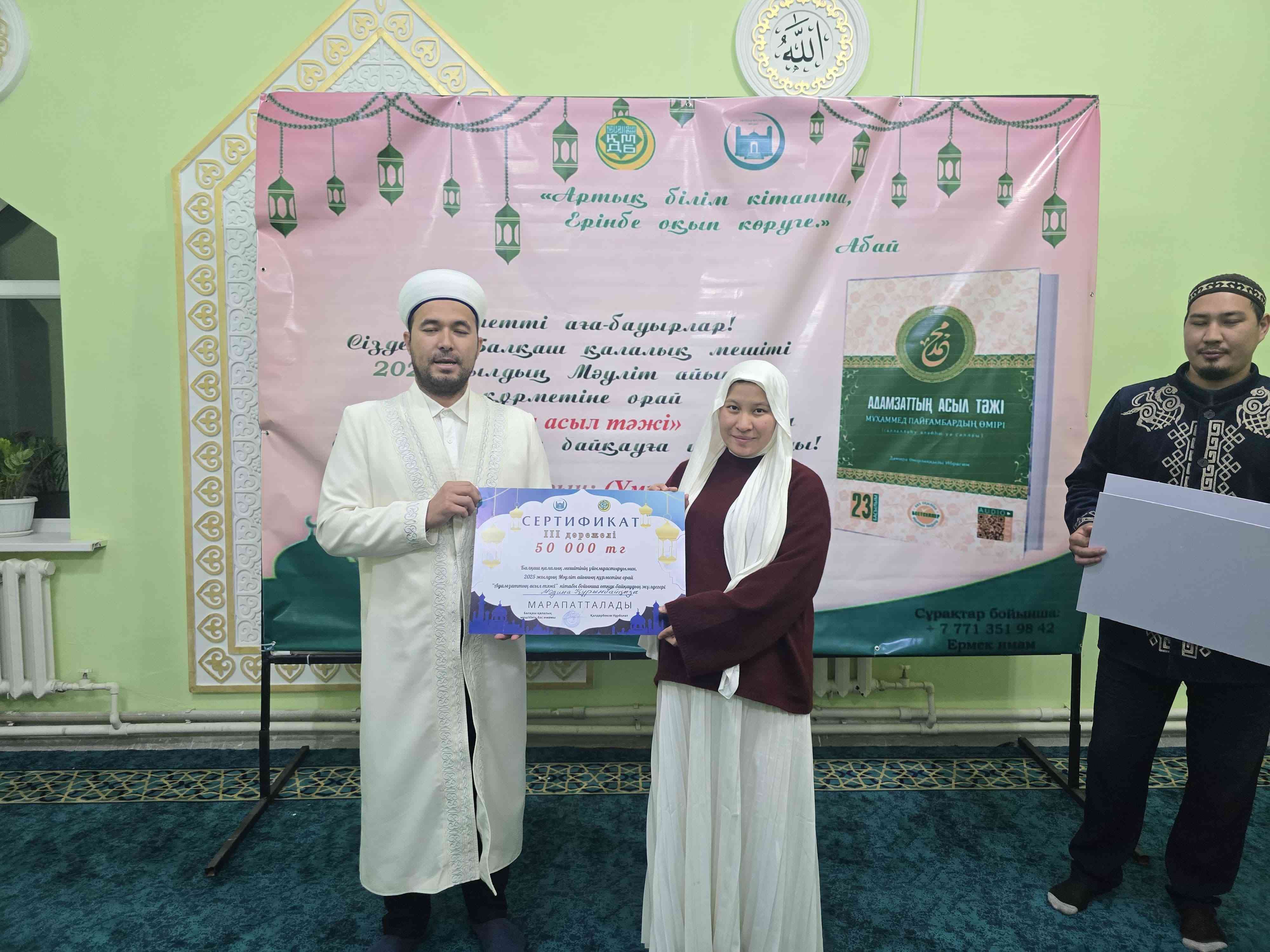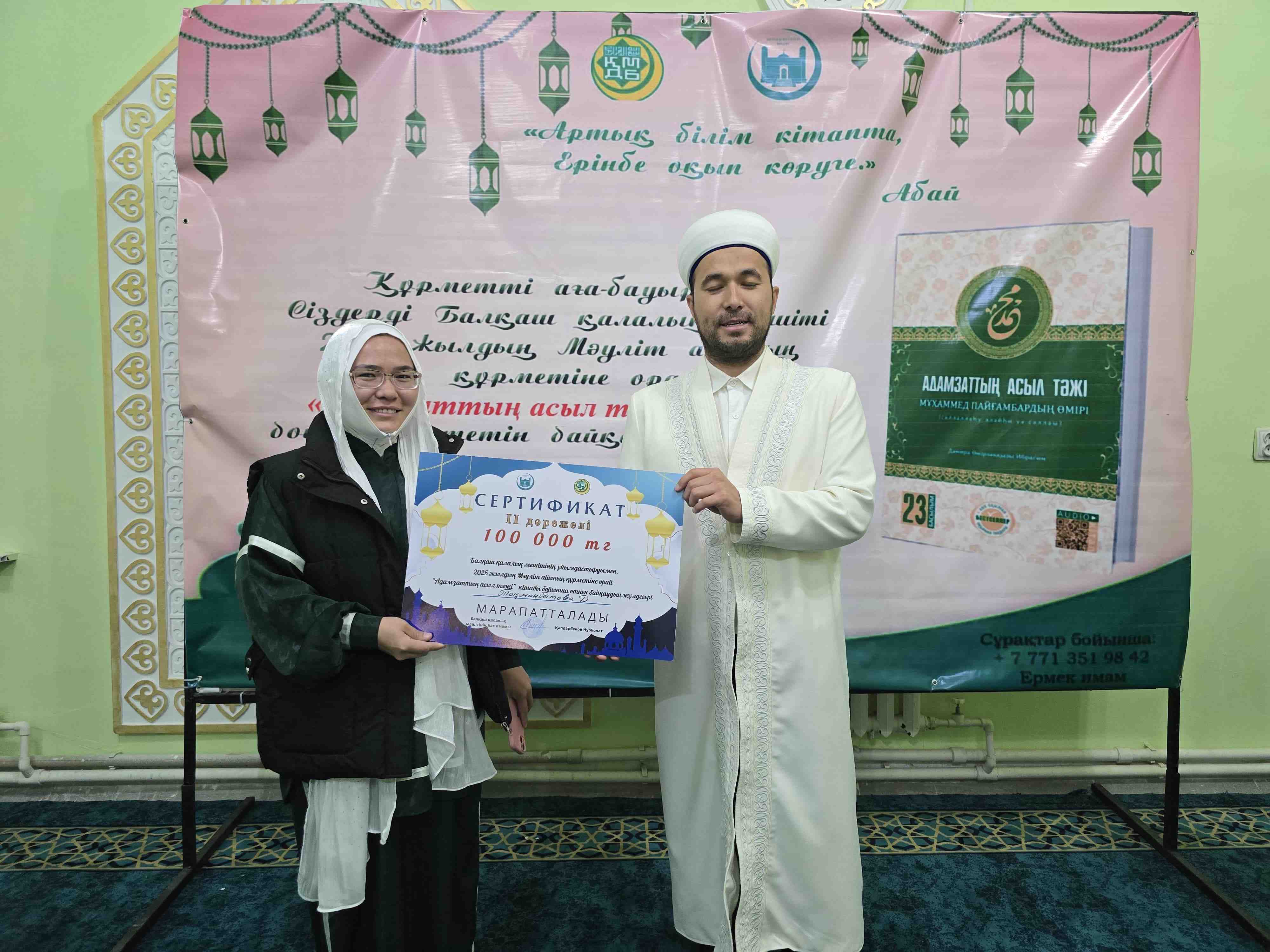 Қарағанды облысы, Балқаш қалалық мешітінің ұйымдастыруымен шәкірттер арасында «Адамзаттың асыл тәжі» кітабы бойынша сайыс өтті.