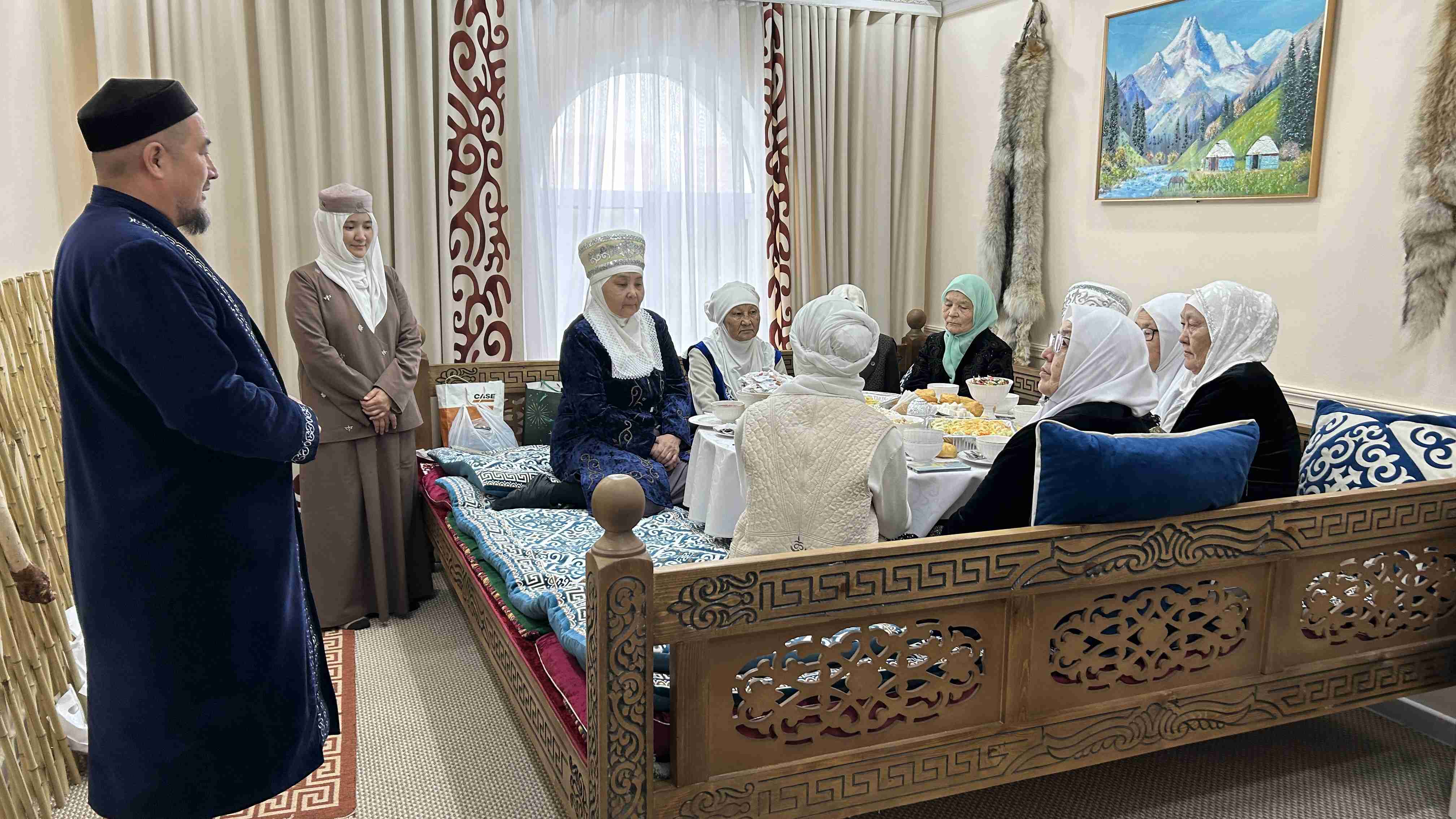 Іс-шара облыстық «Әнет баба» мешітінің «Дін мен дәстүр» бөлмесінде ұйымдастырылып, ақжаулықты әжелердің құрметіне берекелі дастархан жайылды.
