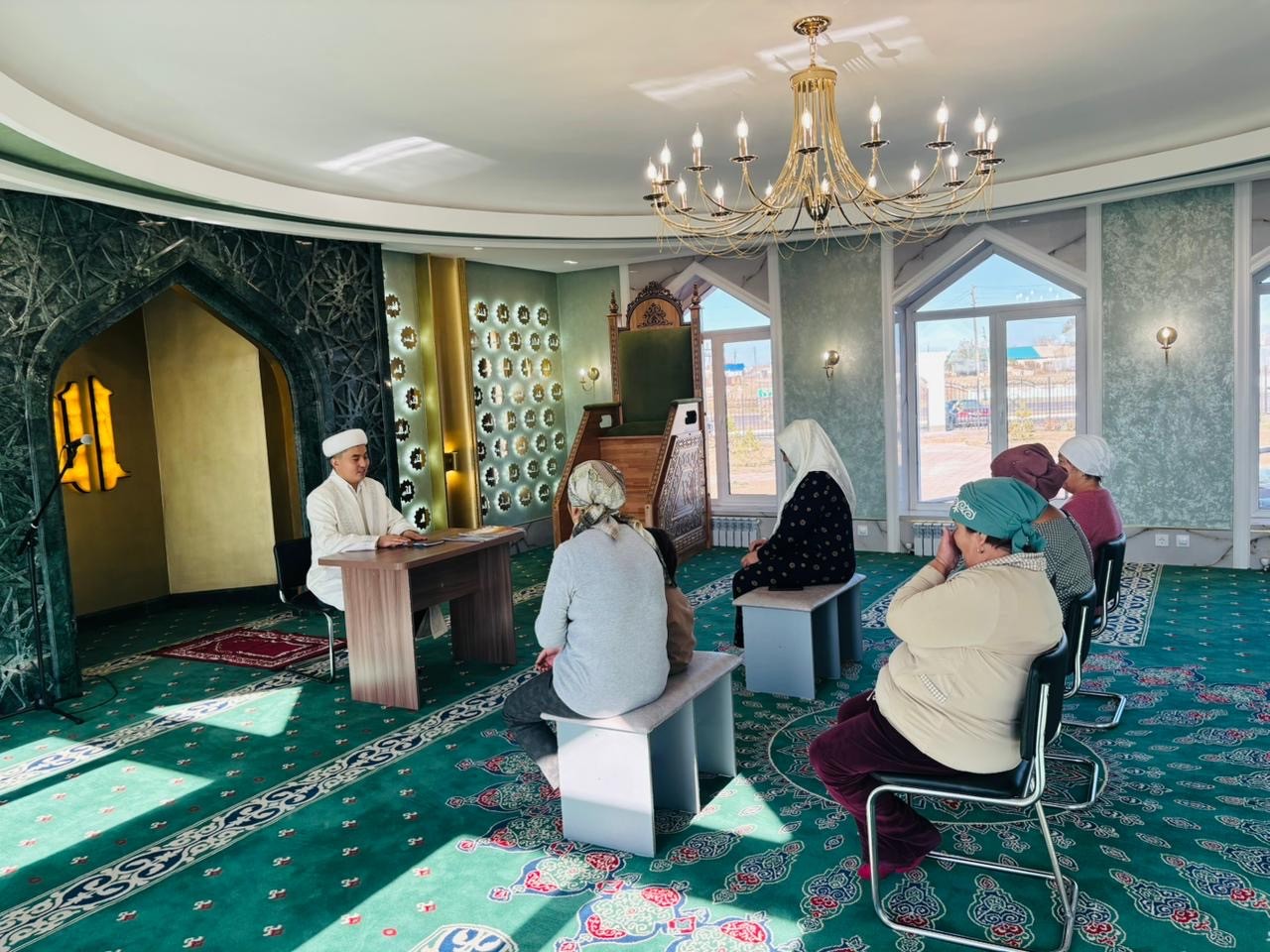 Бұқар Жырау ауданына қарасты Байқадам ауылдық «Ғизат қажы» мешітінде дін мен дәстүр бағыты аясында «Әжелер мектебі» құрылды.