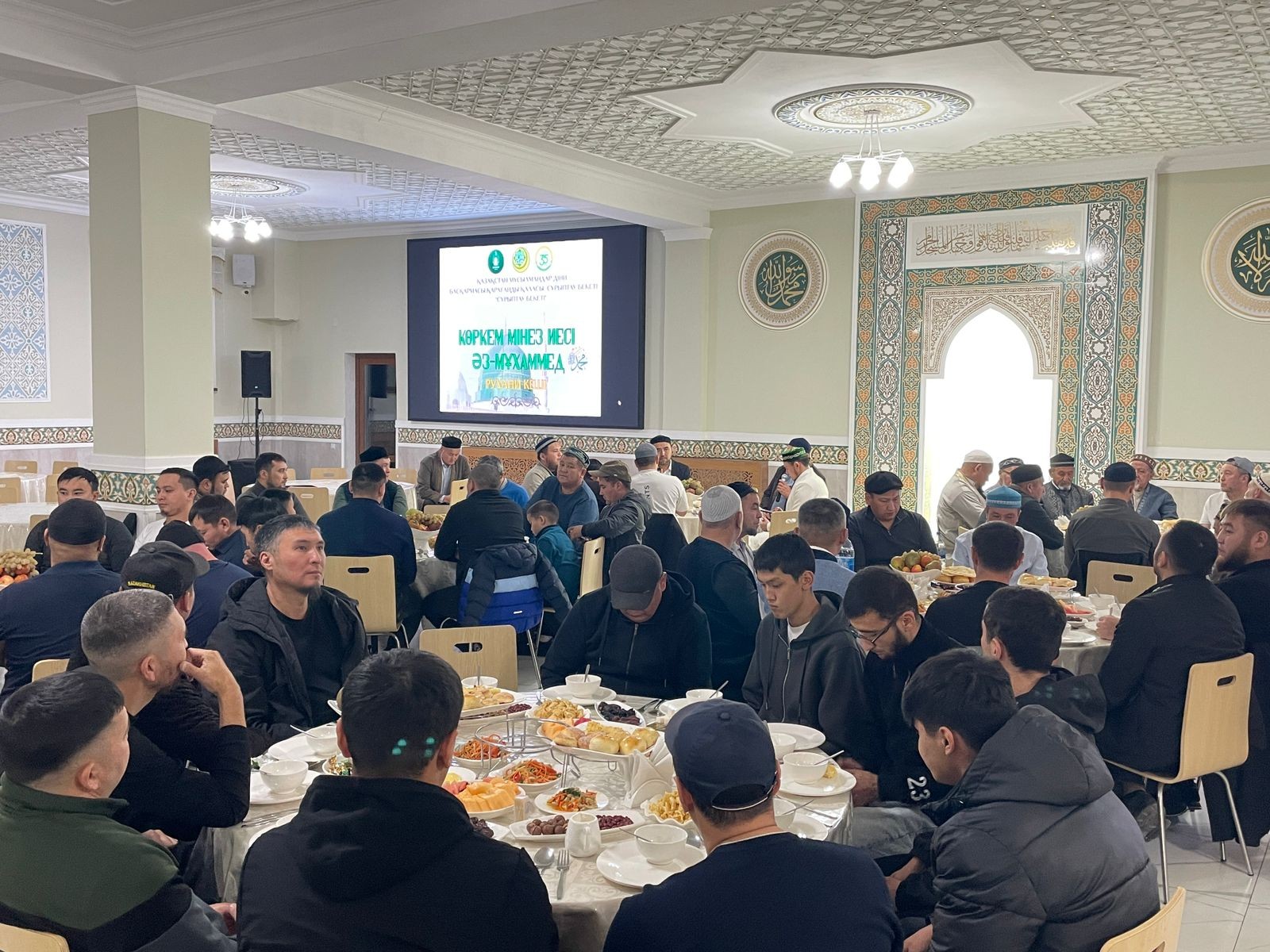 Сұрыптау кенті «Қамзе» мешітінің имамы Думан Қамариденұлының ұйымдастыруымен өткен рухани кешке дін қызметкерлері, зиялы қауым өкілдері, дін жанашырлары және мешіт жамағаты қатысты.