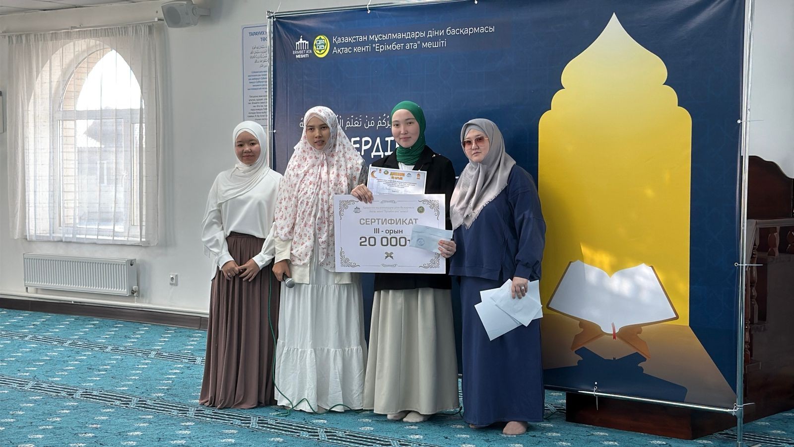 «Ерімбет ата» мешітінің ұстазы Әмина Алмасқызының ұйымдастыруымен Қарағанды облыстық деңгейінде әйел-қыздар арасында «Духа» мен «Нәс» сүрелері аралығындағы Құран жарысы өткізілді.
