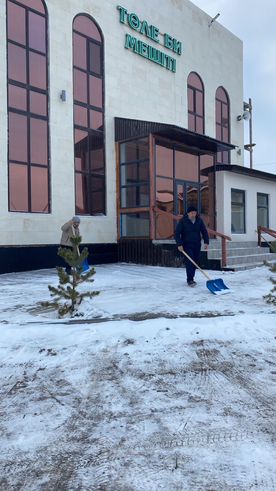 Шара барысында мешіт жамағаты мен дін қызметкерлері аула мен айналаны тазалап, қоршаған ортаны таза ұстауға өз үлестерін қосты.