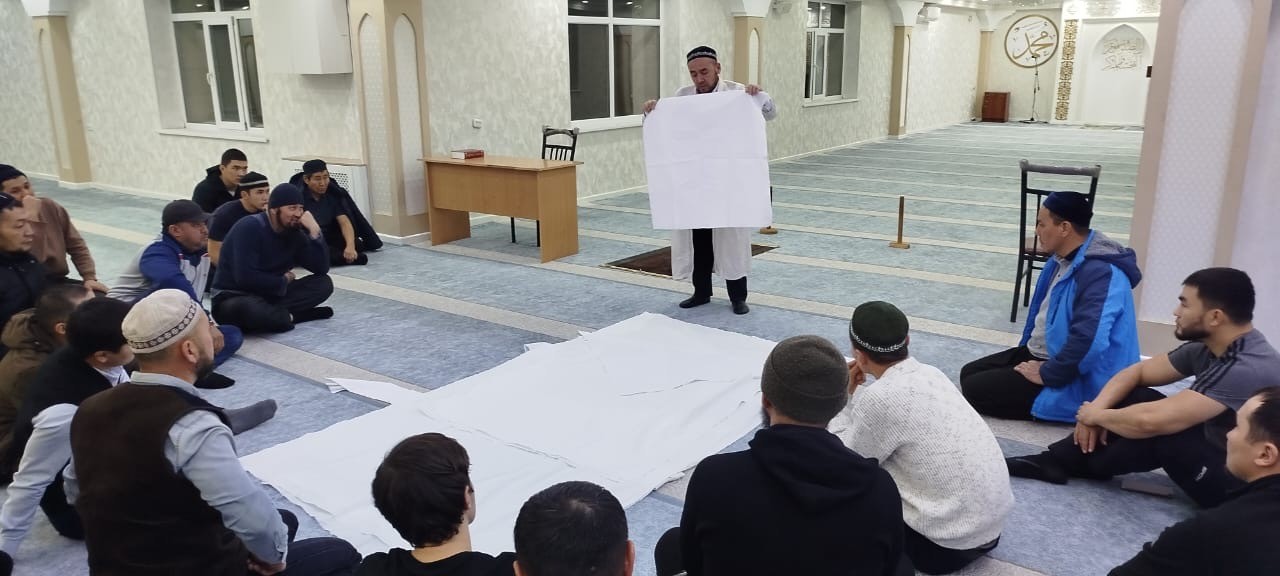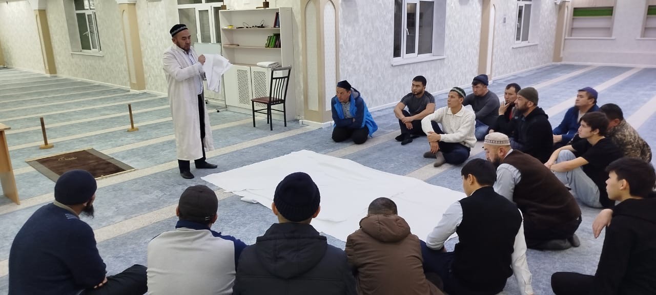 Теміртау қалалық «Жақып Ақбай» мешітінде «Қамқор Шарапат» салттық қызмет көрсету бағыты аясында марқұмға кебін дайындау жөнінде дәріс ұйымдастырылды.