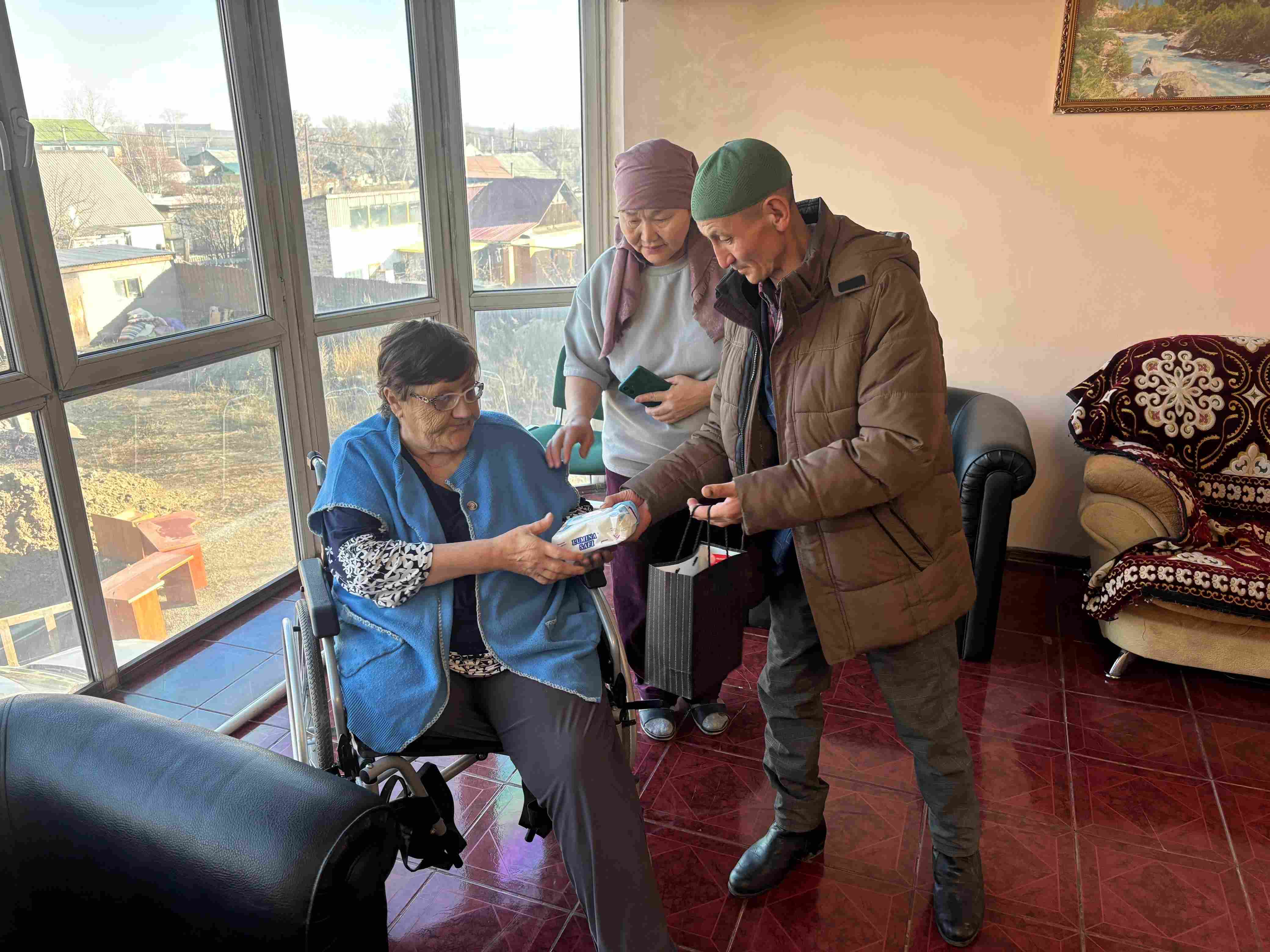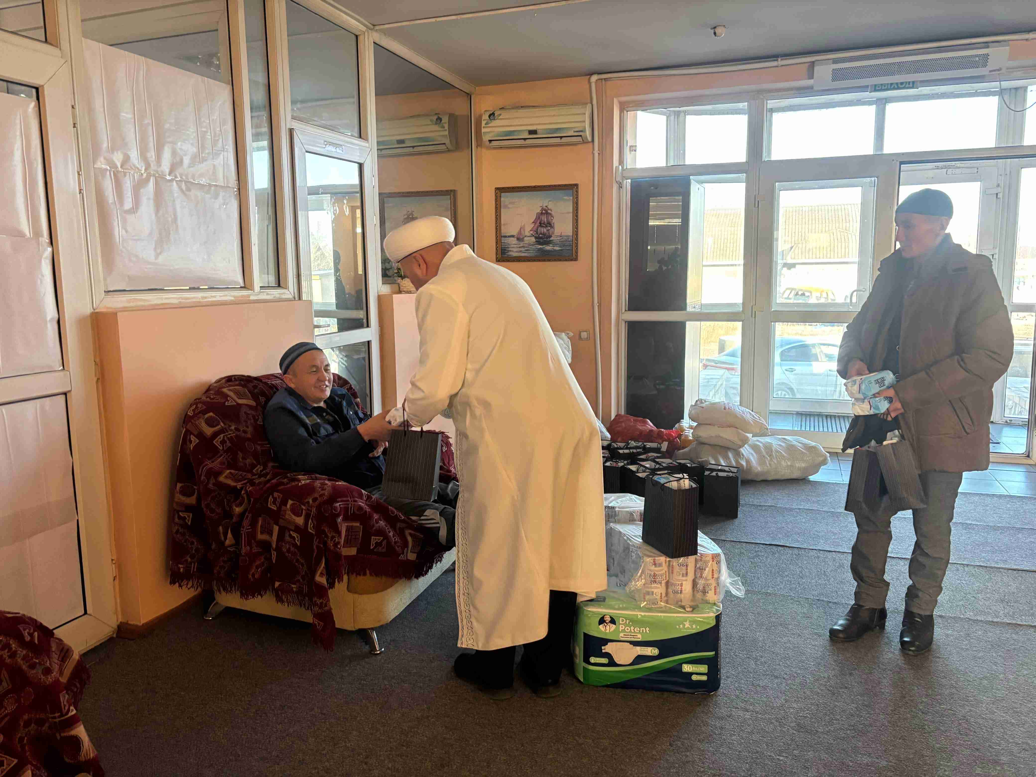 Мүгедектер үйінің тұрғындарына азық-түлік пакеттері, гигиеналық заттар және күнделікті қажетті тұрмыстық бұйымдар үлестірілді. Жылы жүзді кездесу барысында дін қызметкерлері әлеуметтік қолдауға мұқтаж жандардың жағдайымен танысып, рухани қолдау көрсетті.