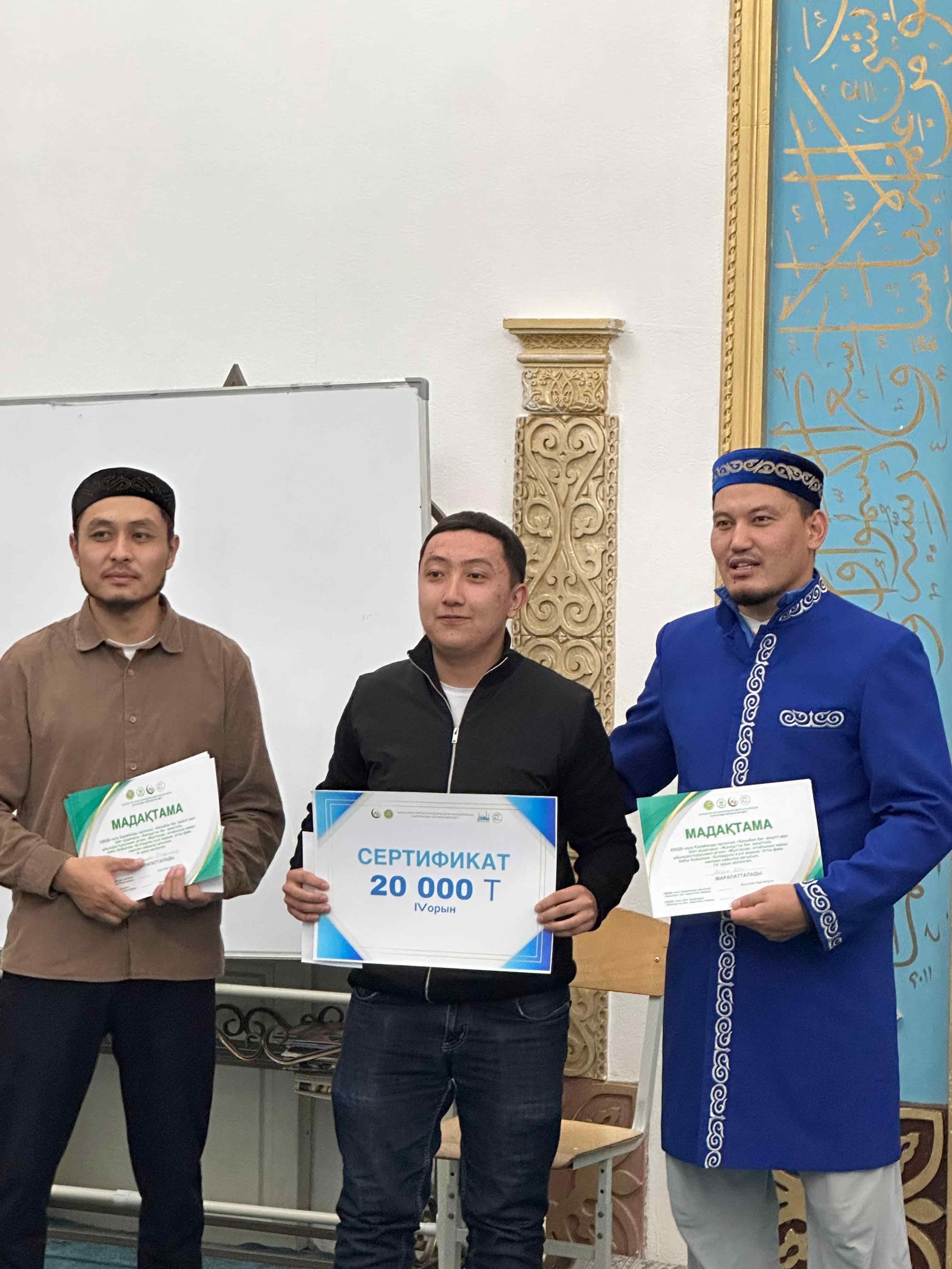 Жеңімпаздар мен белсенді қатысушыларға қаржылай сертификаттар мен алғыс хаттар табысталып, олардың діни білімге деген ынтасы мен еңбегі ерекше атап өтілді.