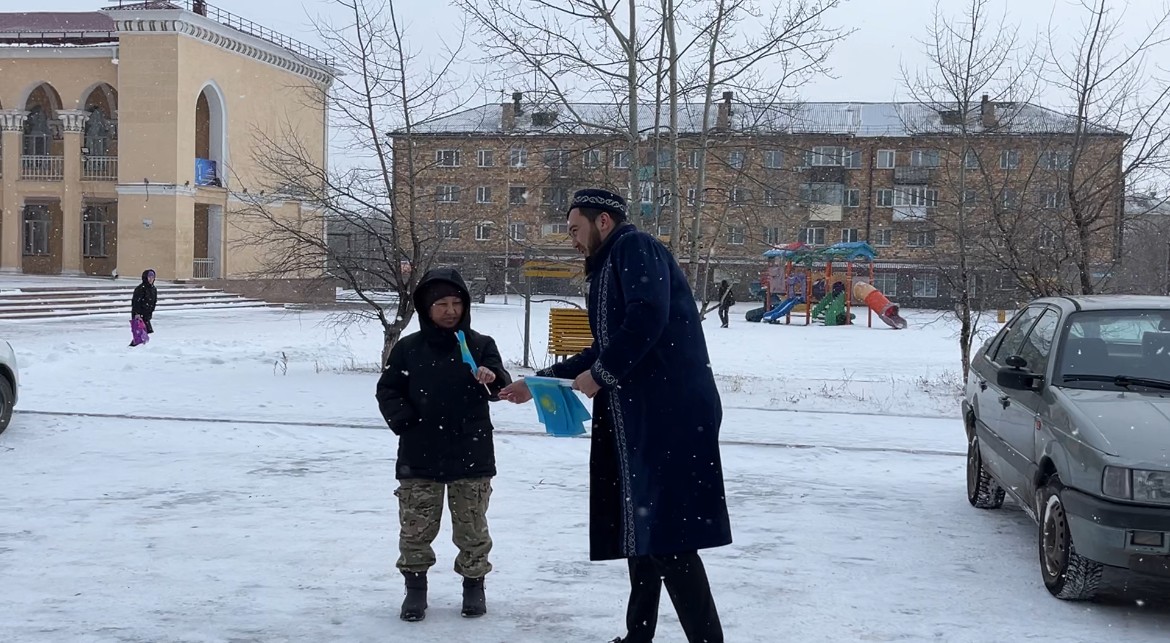 Ақтас кенті «Ерімбет ата» мешітінің имамы Азамат Сайлауұлының ұйымдастыруымен 16 желтоқсан - Қазақстан Республикасының Тәуелсіздік күні мерекесіне орай кент тұрғындарына мемлекеттік тулар таратылды.