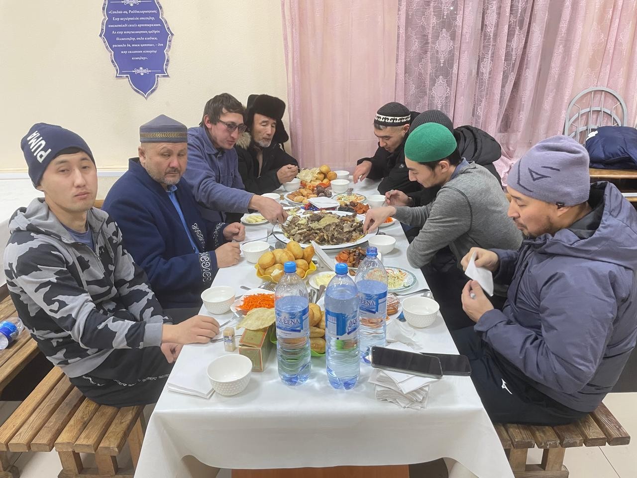 Шет аудандық «Жанқұтты би» мешітінің имамы Берік Алпысбайұлының ұйымдастыруымен мешіт жамағаты сенбілік дастархан басында бас қосты.