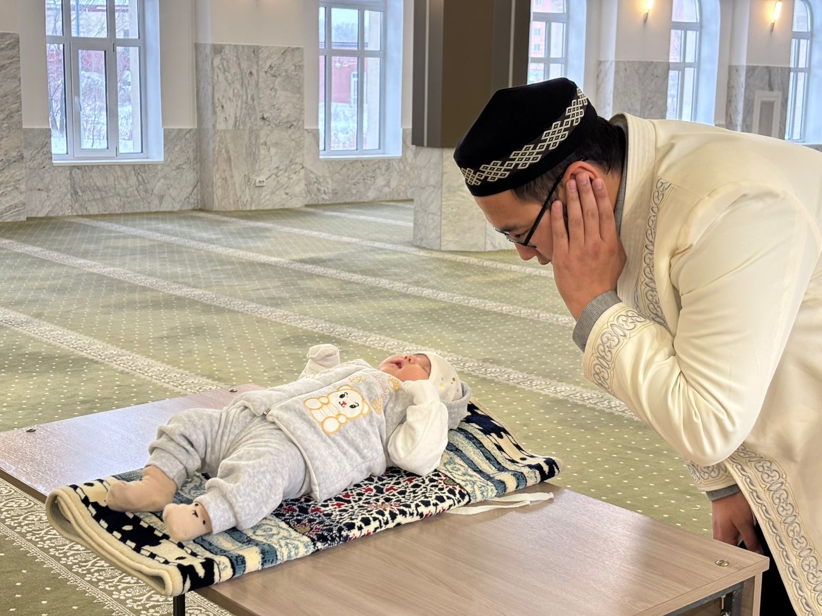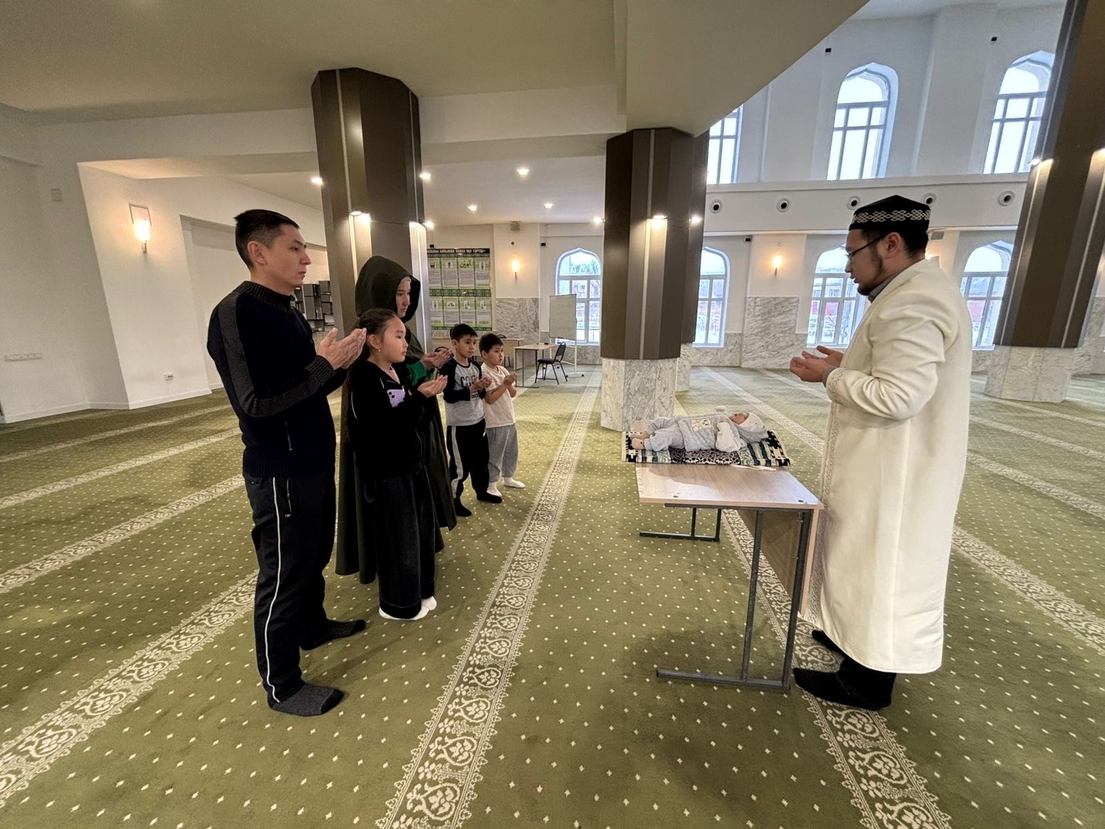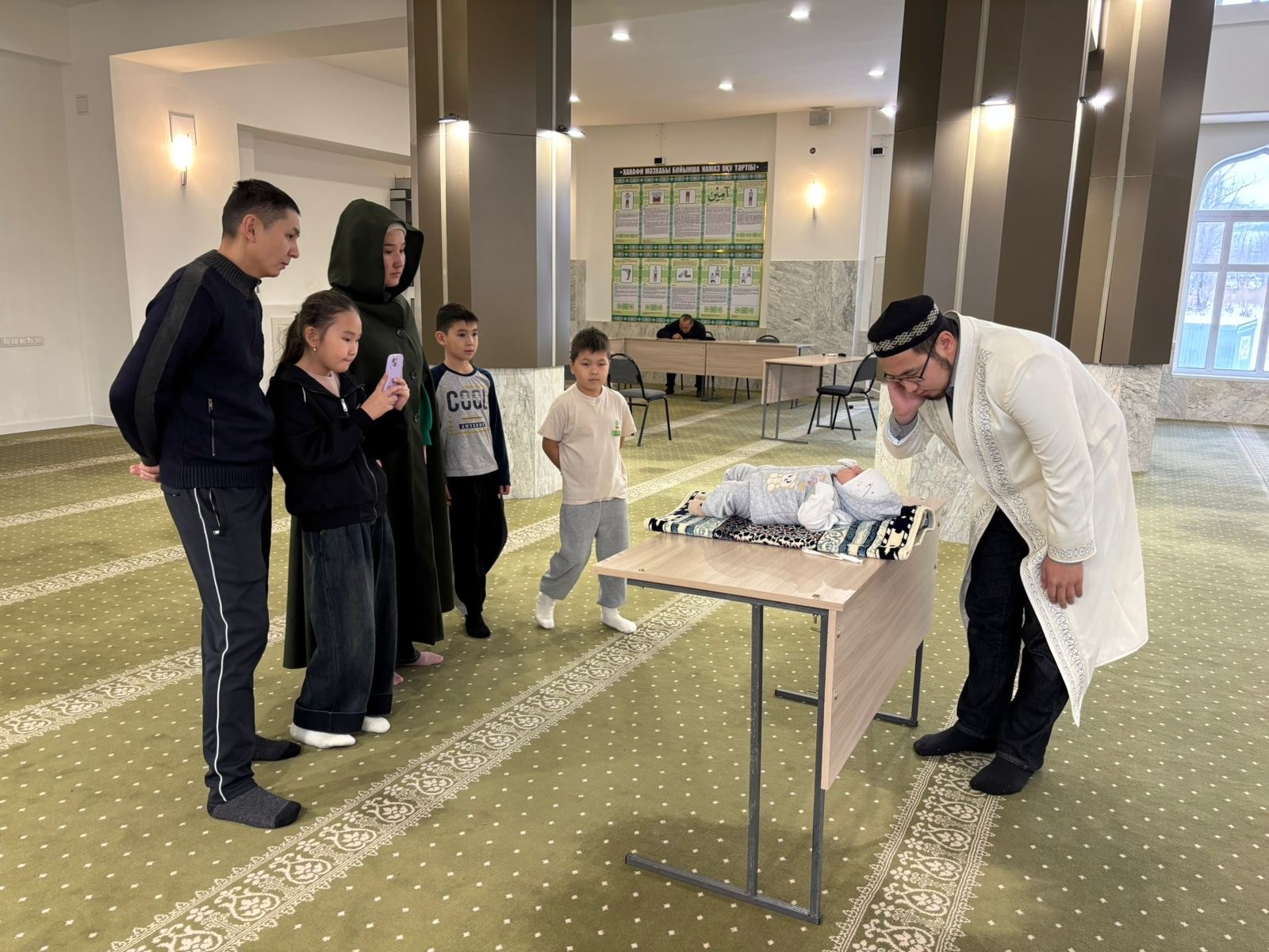 Шара барысында мешіт ұстазы Кажимов Дамир шариғат талаптарына сәбидің құлағына азан шақырып, есім қойды. Сондай ақ, дұға жасап, сәбиге ізгі тілек білдірілді.
