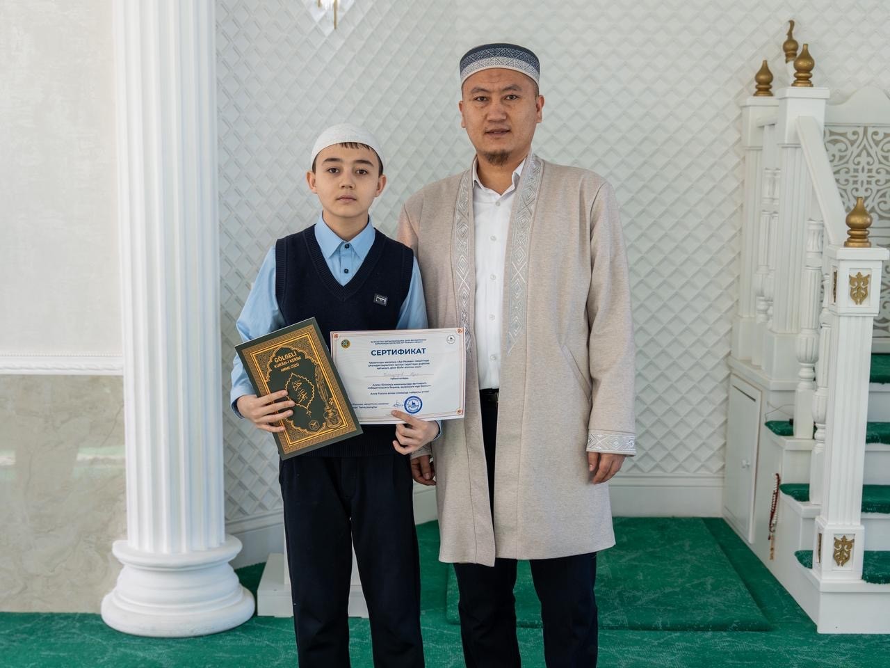 Шара барысында мешіт имамы Азамат Төлеуханұлы шәкірттерге оқу курсын сәтті аяқтағанын растайтын сертификаттар және рухани-танымдық мазмұндағы сыйлық кітаптар табыстады.