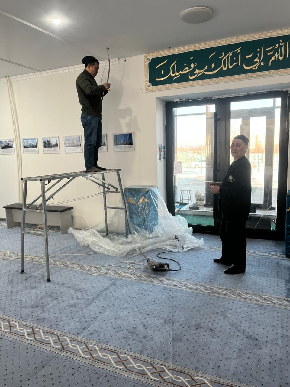 Жаңадан орнатылған аспа шамдар мешіт ішінің көркемдік келбетін арттырып қана қоймай, жамағаттың мешітке кіріп-шығу барысында ыңғайлы әрі қауіпсіз қозғалуына мүмкіндік береді.
