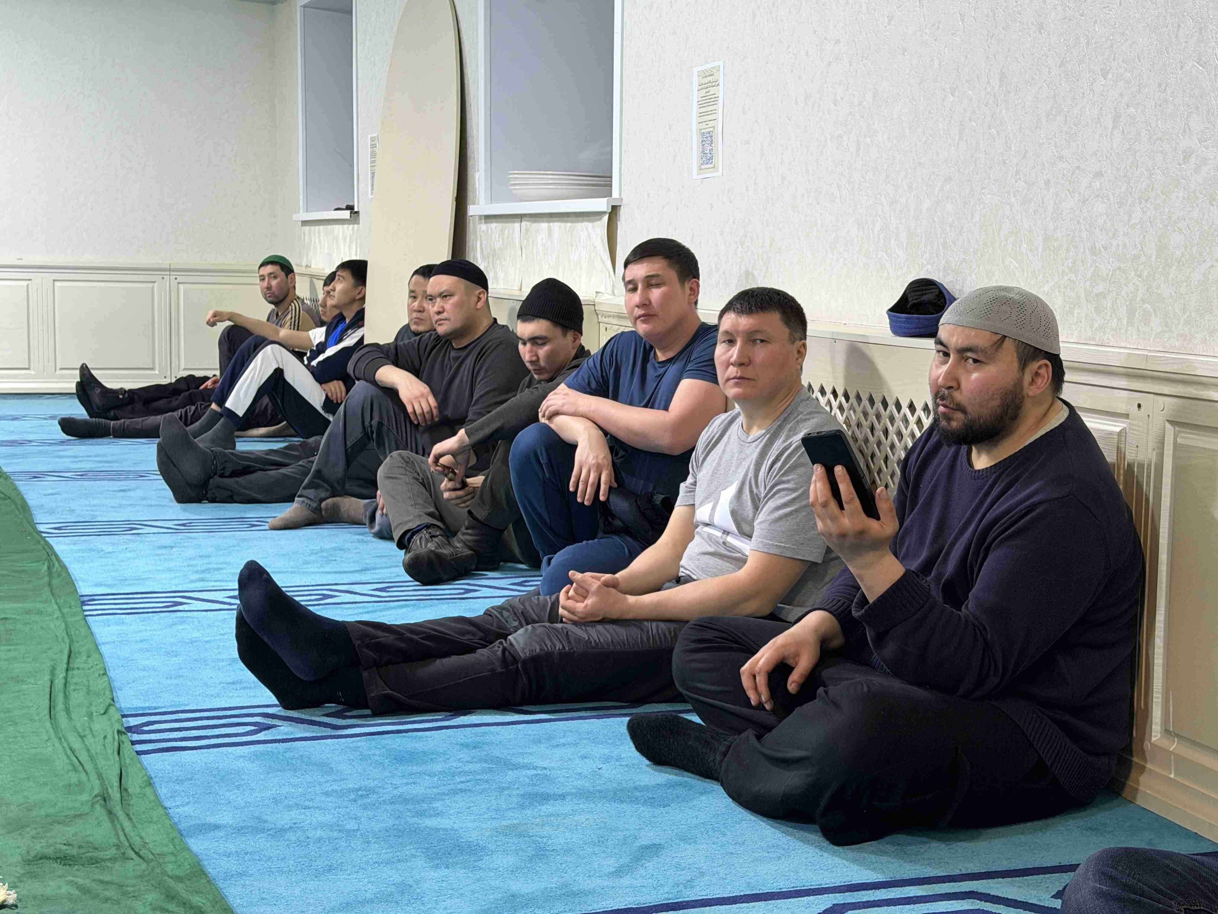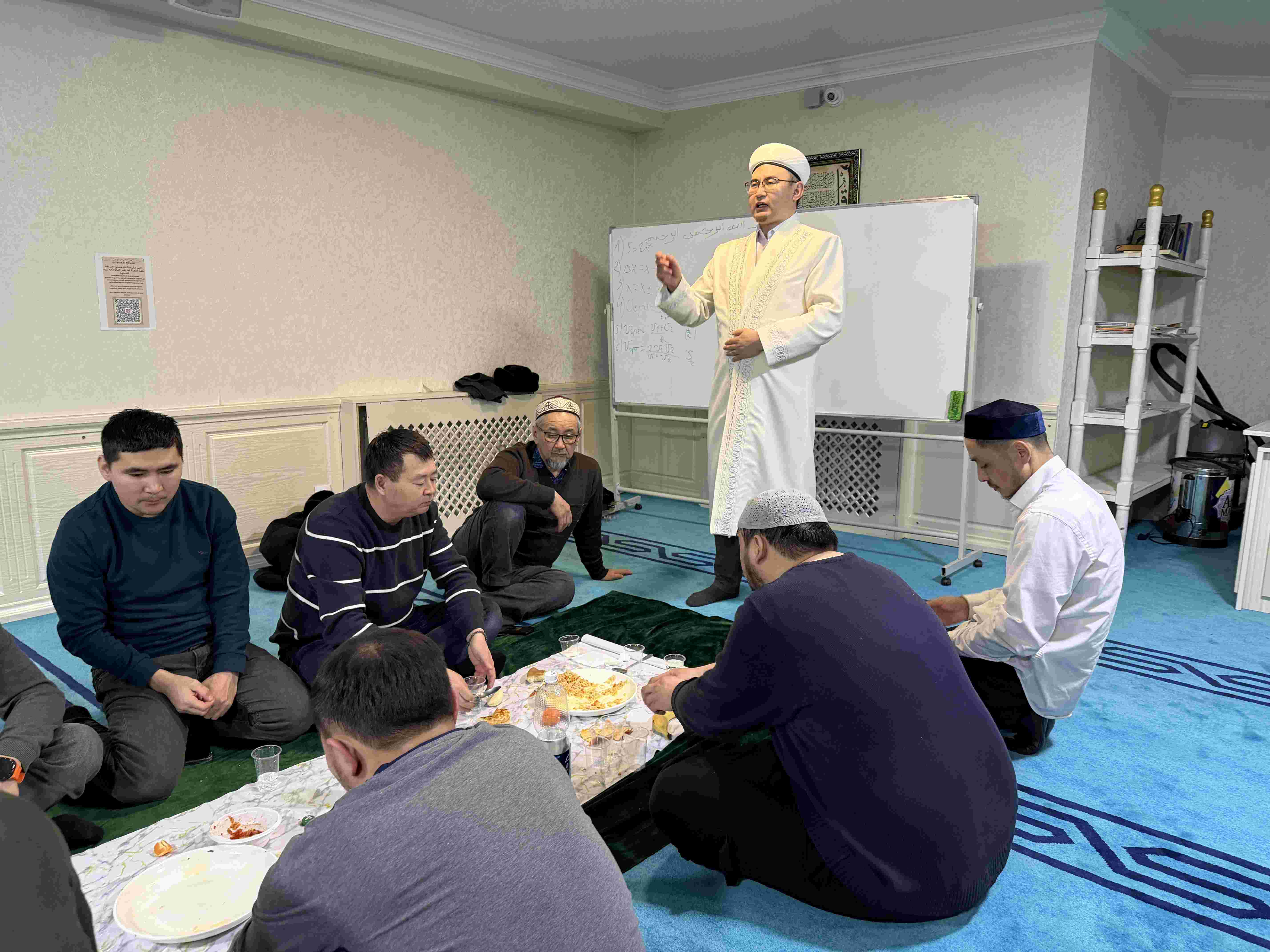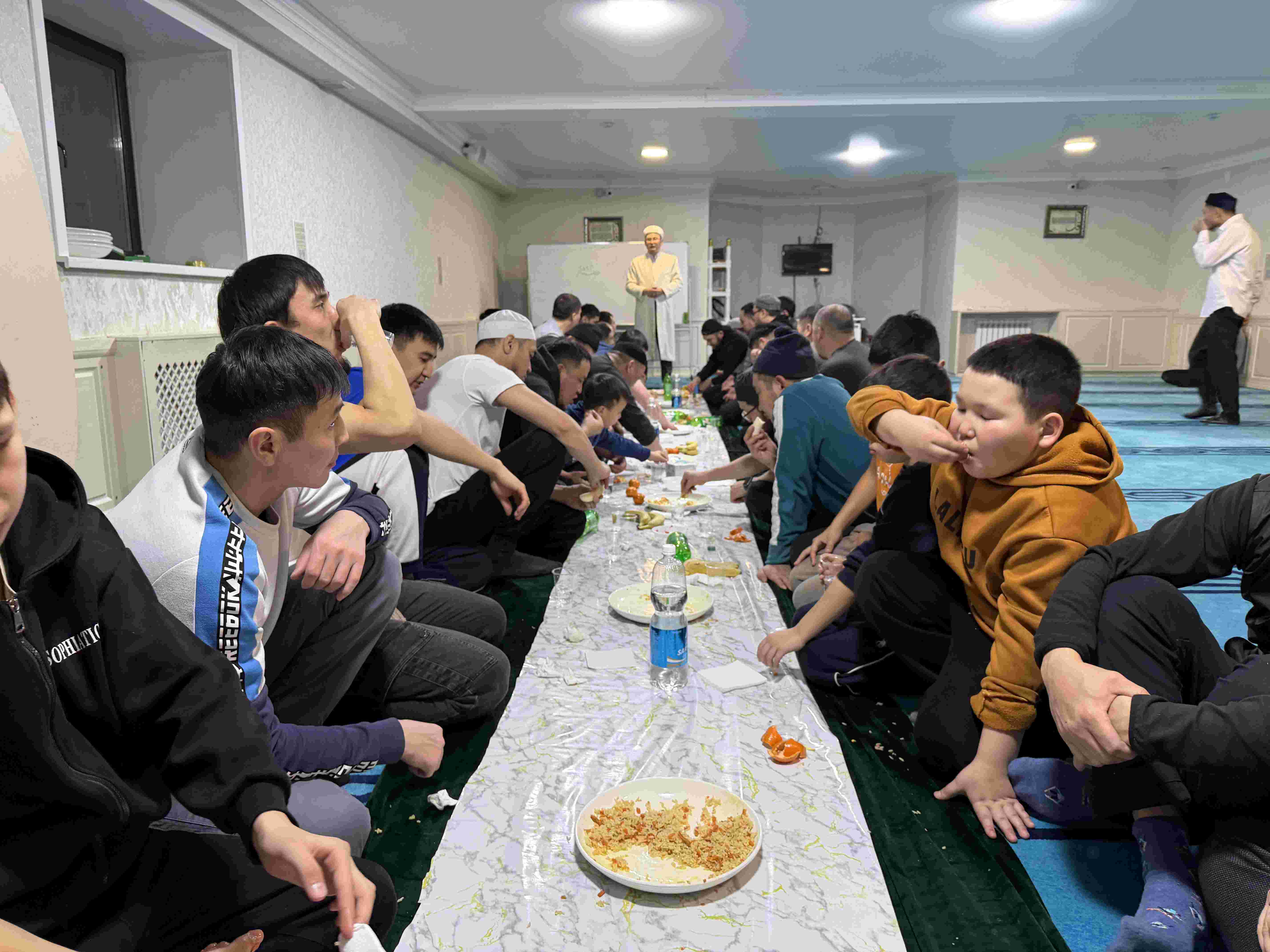 Игі шараға жиналған жамағатқа мешіт имамы Асылхан Нұртайұлы мен мешіттің наиб имамы Дастан Жанқозыұлы тағылымды дәріс оқып, насихат айтуда.