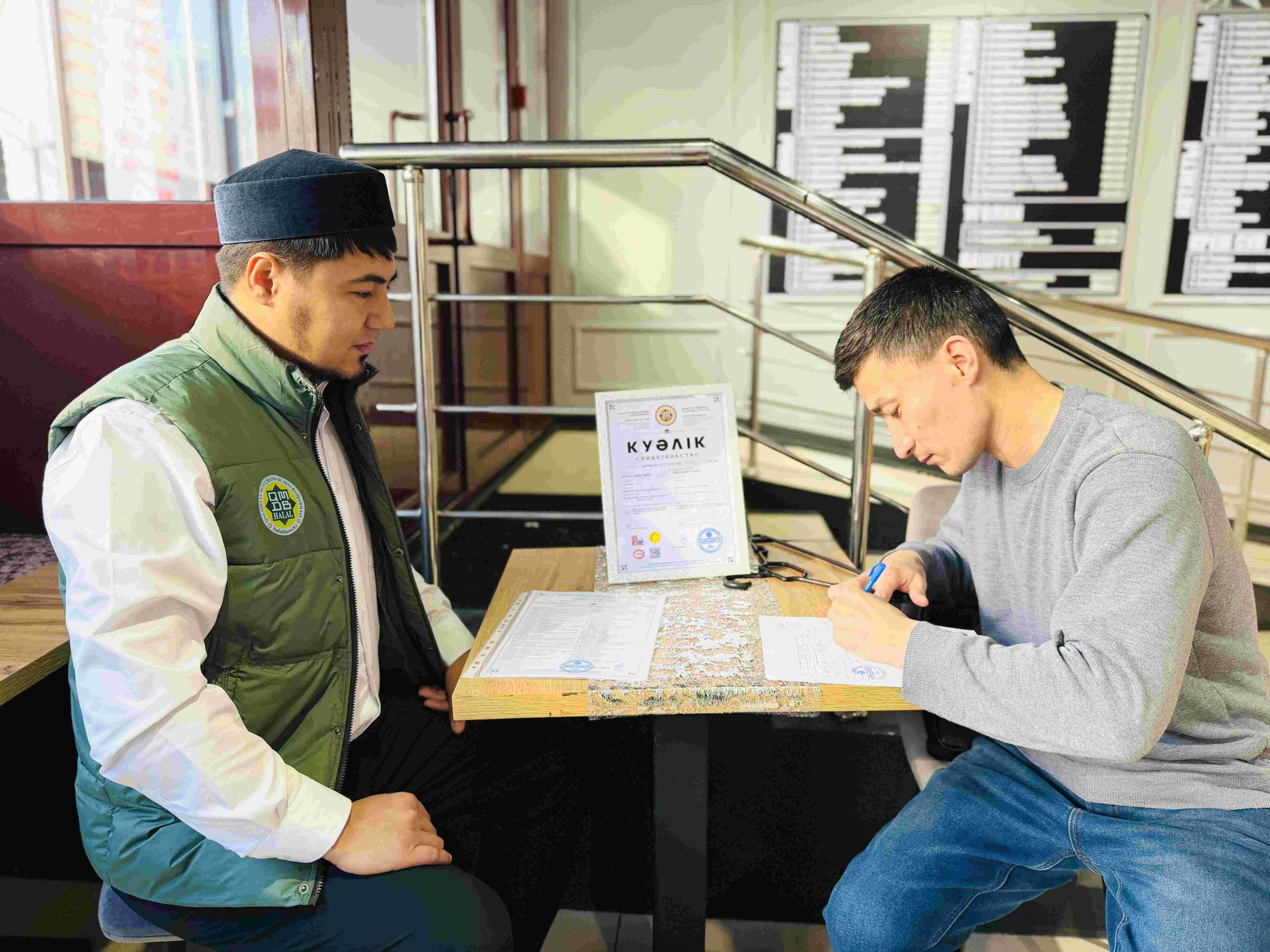Арнайы сертификатты Халал Даму ЖШС-ның Қарағанды облысы бойынша жауапты меңгерушісі Амангелді Дәулеткелдіұлы табыстады.