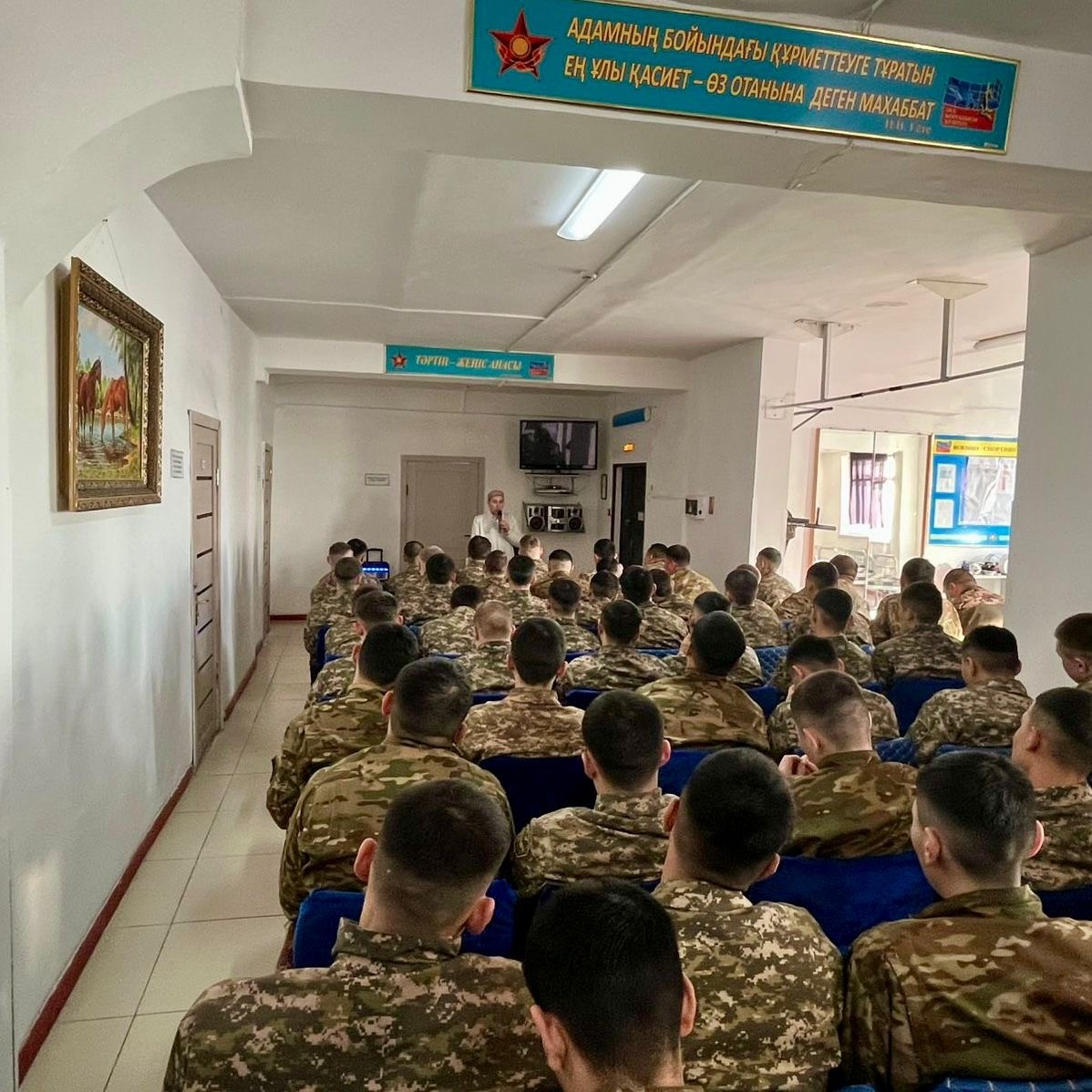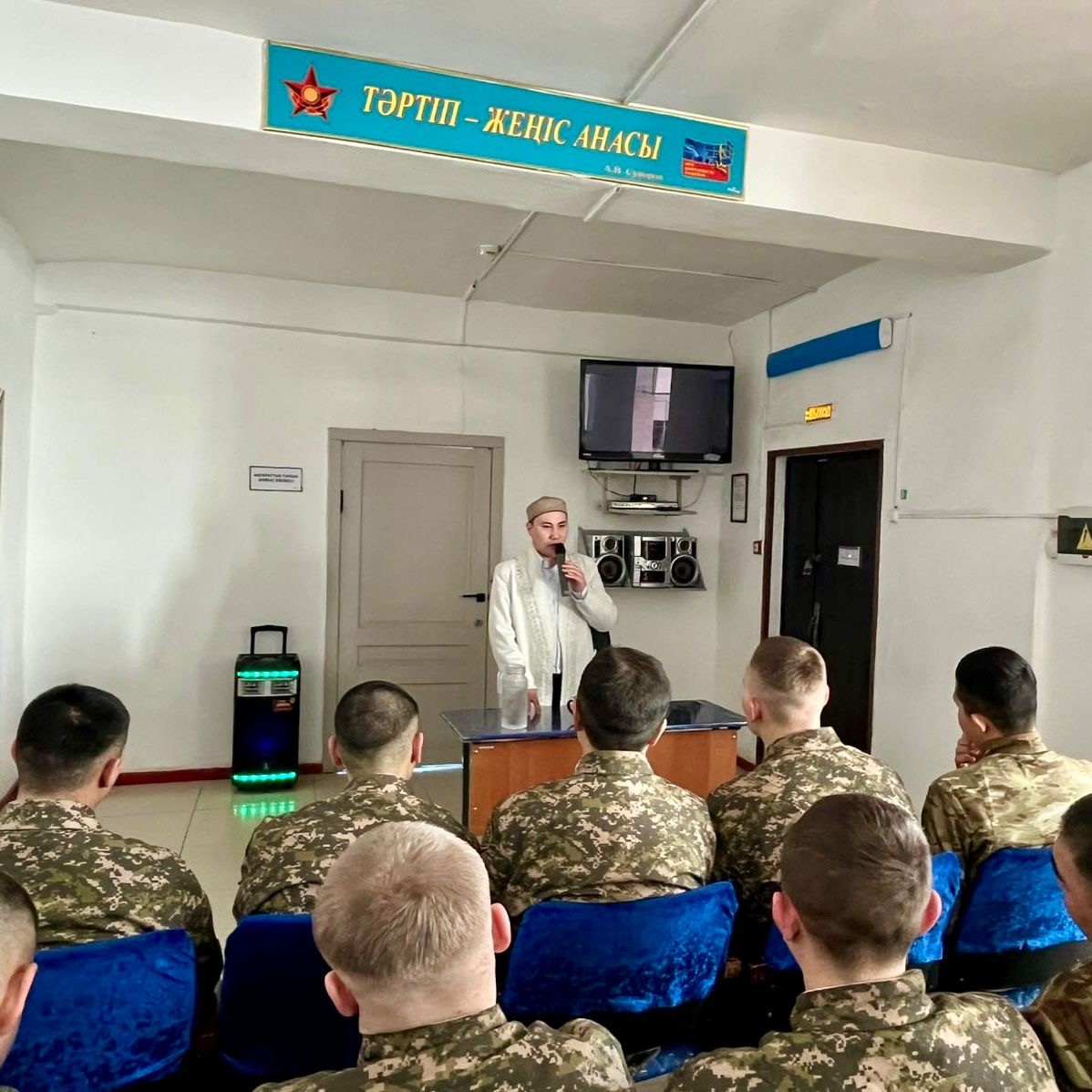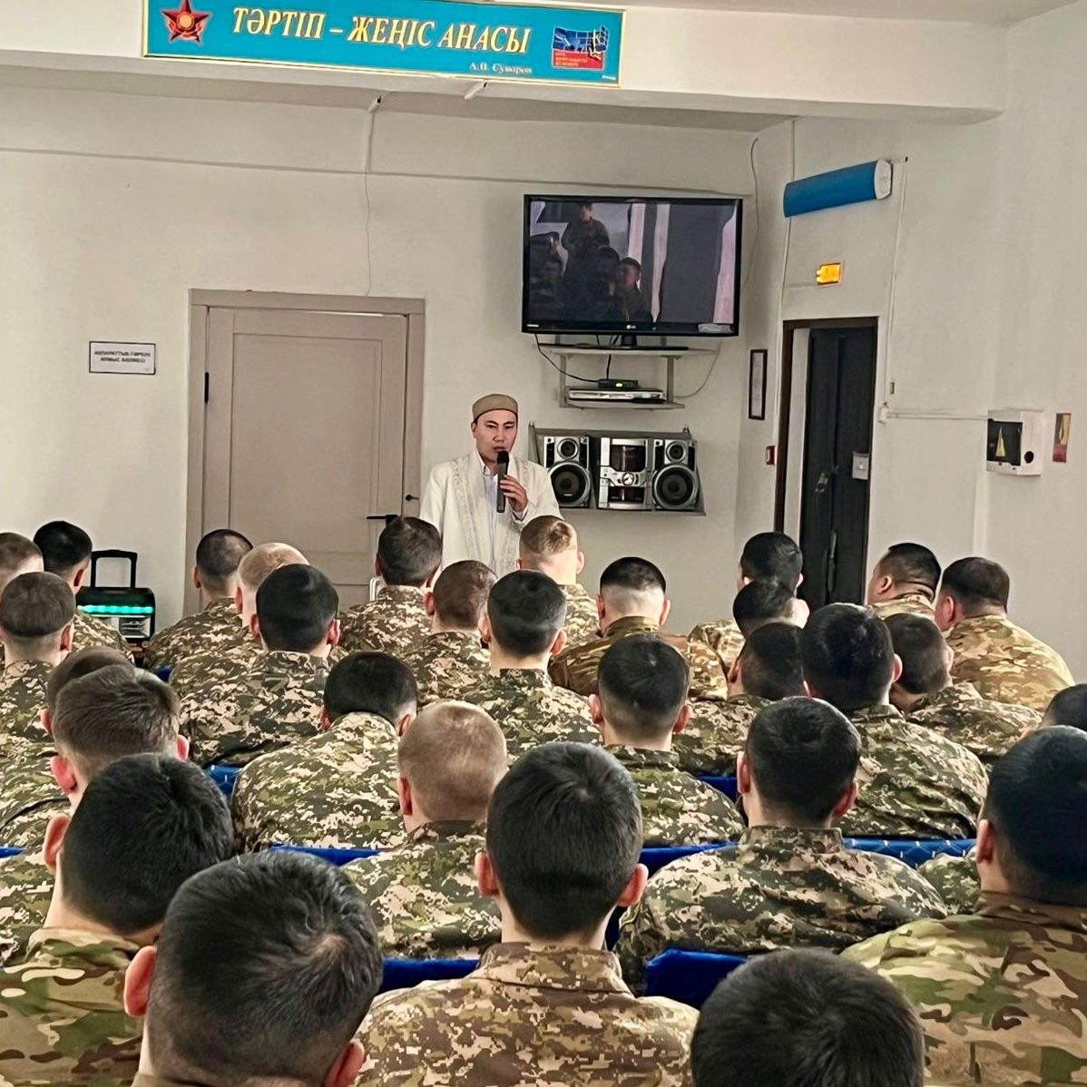 Қарағанды облысы, Саран қалалық мешітінің наиб имамы Саран қаласында орналасқан №44803 әскери бөлімінде жас буын сарбаздармен кездесу өткізді.
