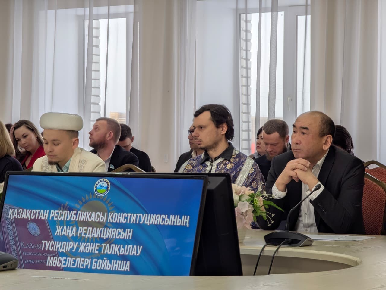 Абай ауданы әкімдігінде конституциялық реформа мәселелері бойынша қоғам белсенділерінің жиыны өтті. Жиынға Абай аудандық орталық мешітінің имамы Бейсембаев Нұрқанат Төлеутайұлы қатысты.