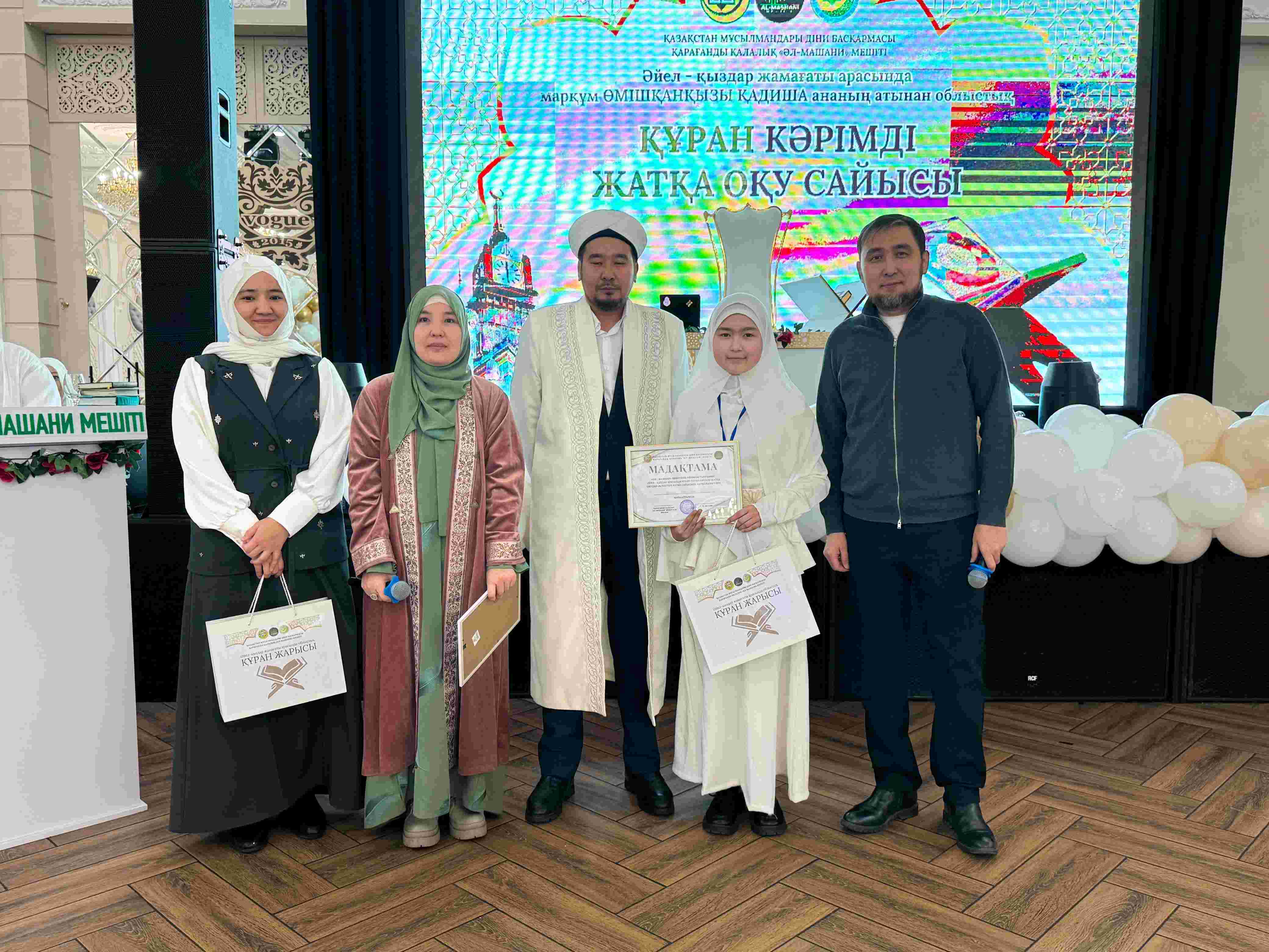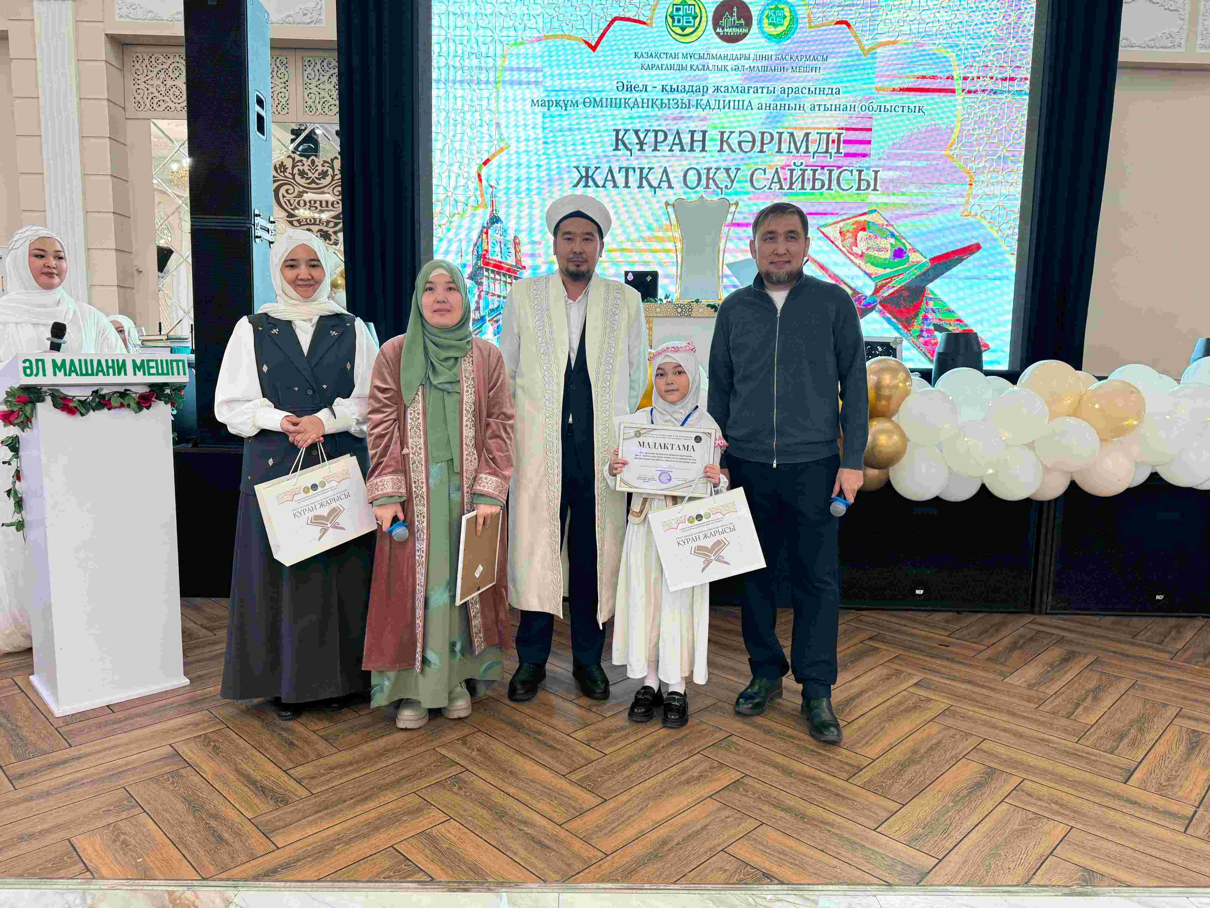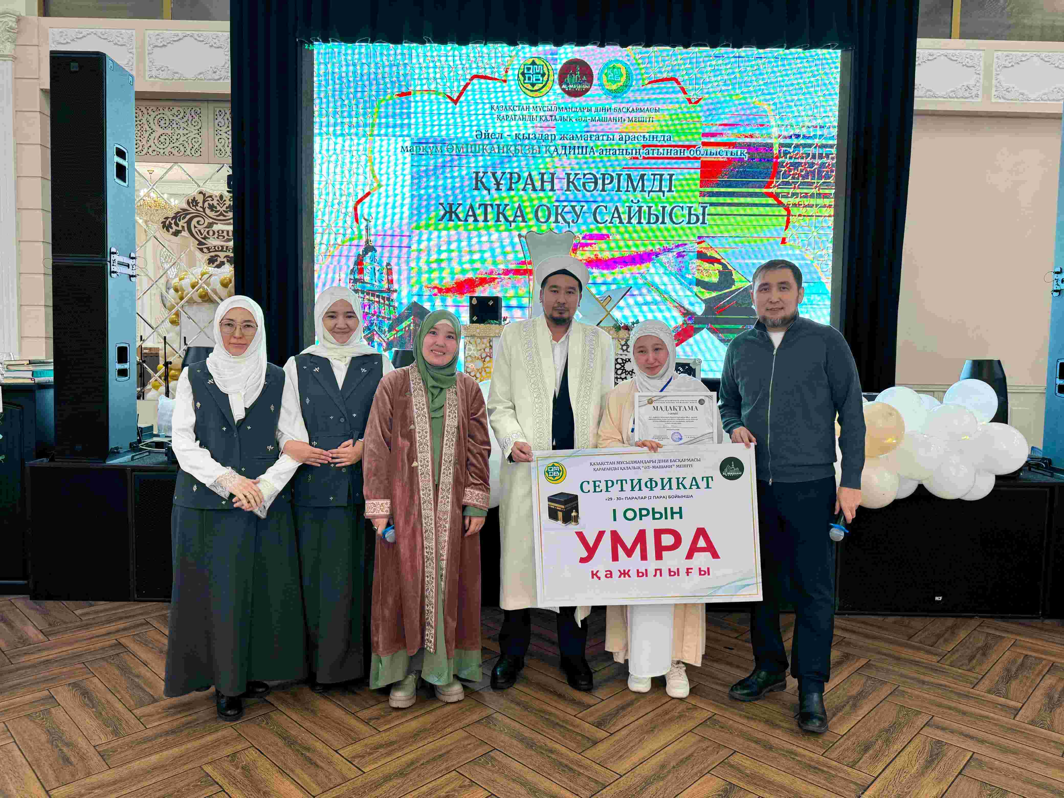 Қарағанды қалалық «Әл-Машани» мешітінің ұйымдастыруымен Vogue мейрамханасында әйел-қыздар жамағаты арасында 29–30-паралар және жарты пара бойынша Құран жарысы өтті.