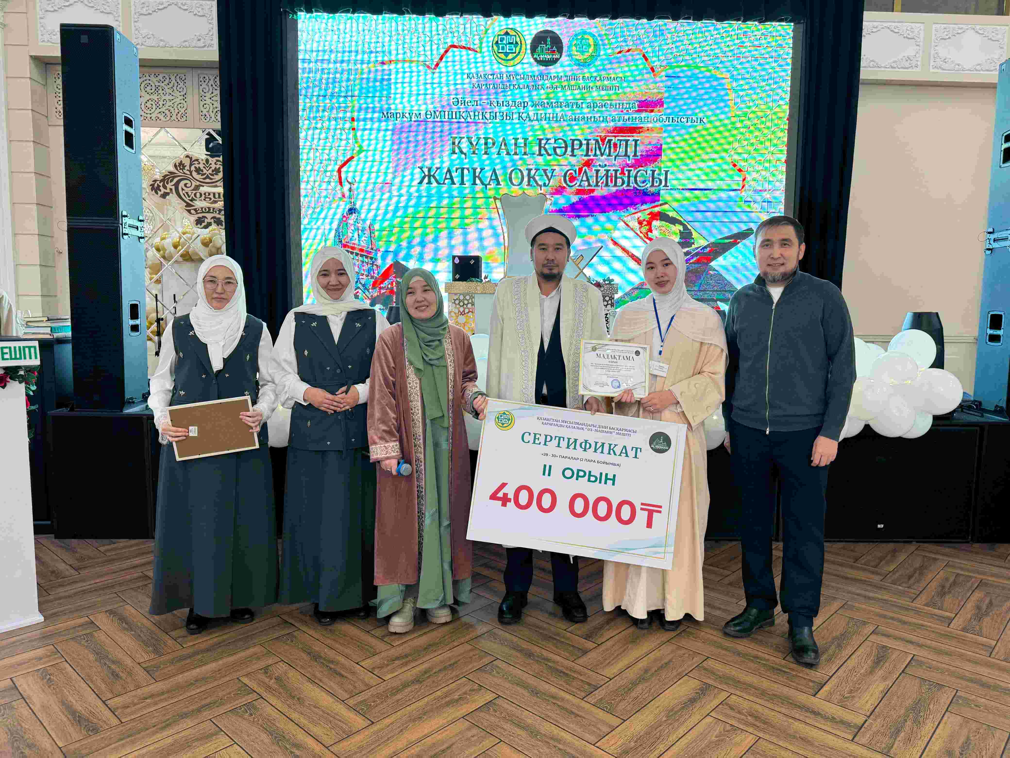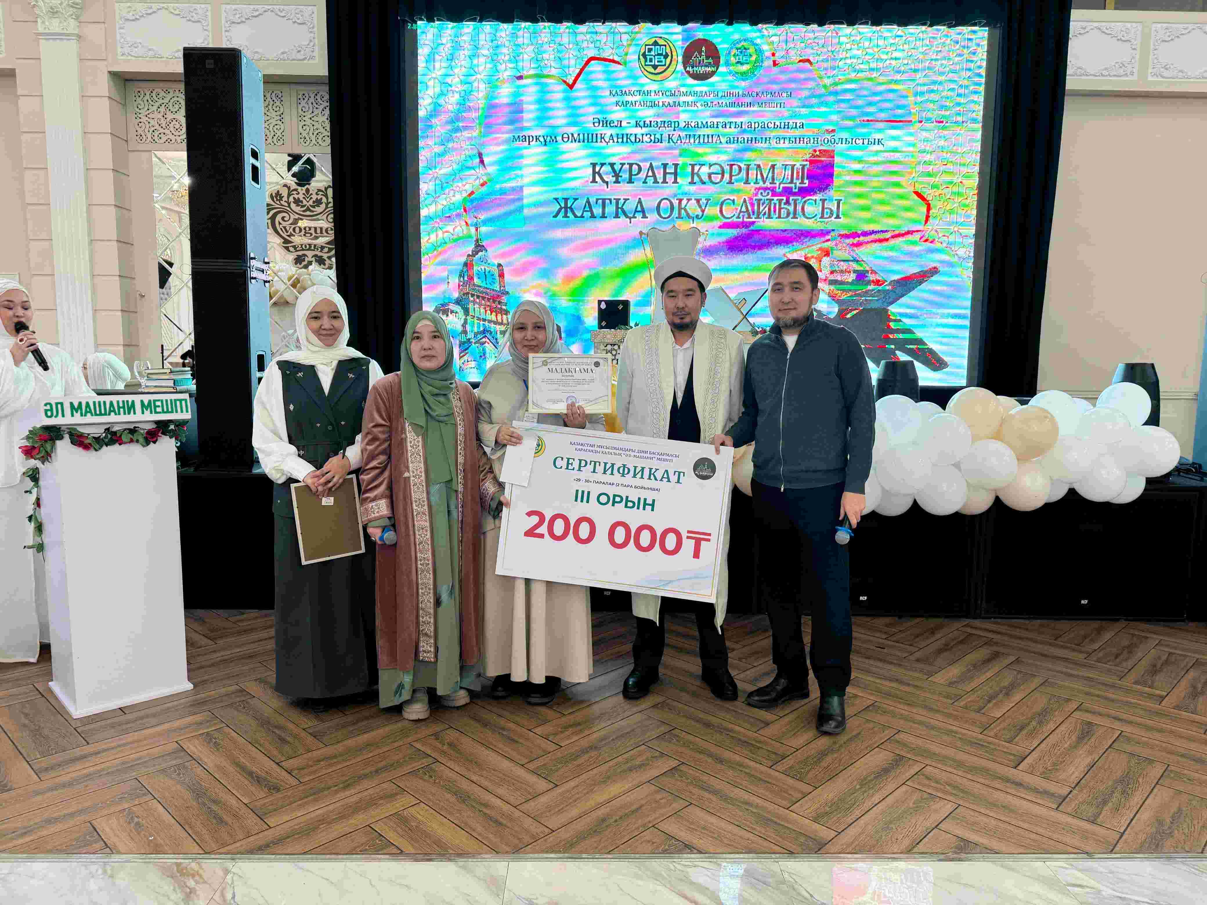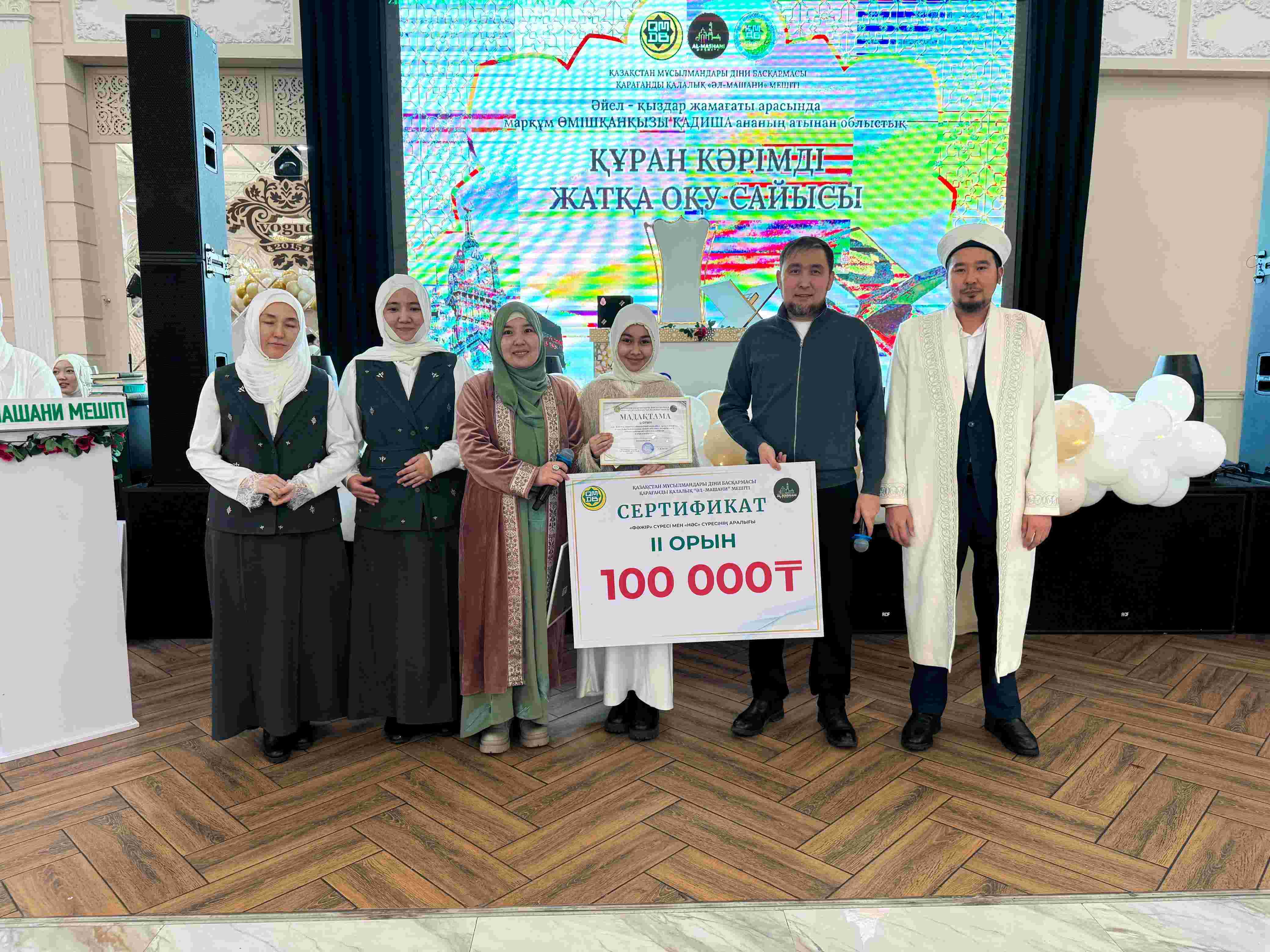 Қарағанды қалалық «Әл-Машани» мешітінің ұйымдастыруымен Vogue мейрамханасында әйел-қыздар жамағаты арасында 29–30-паралар және жарты пара бойынша Құран жарысы өтті.