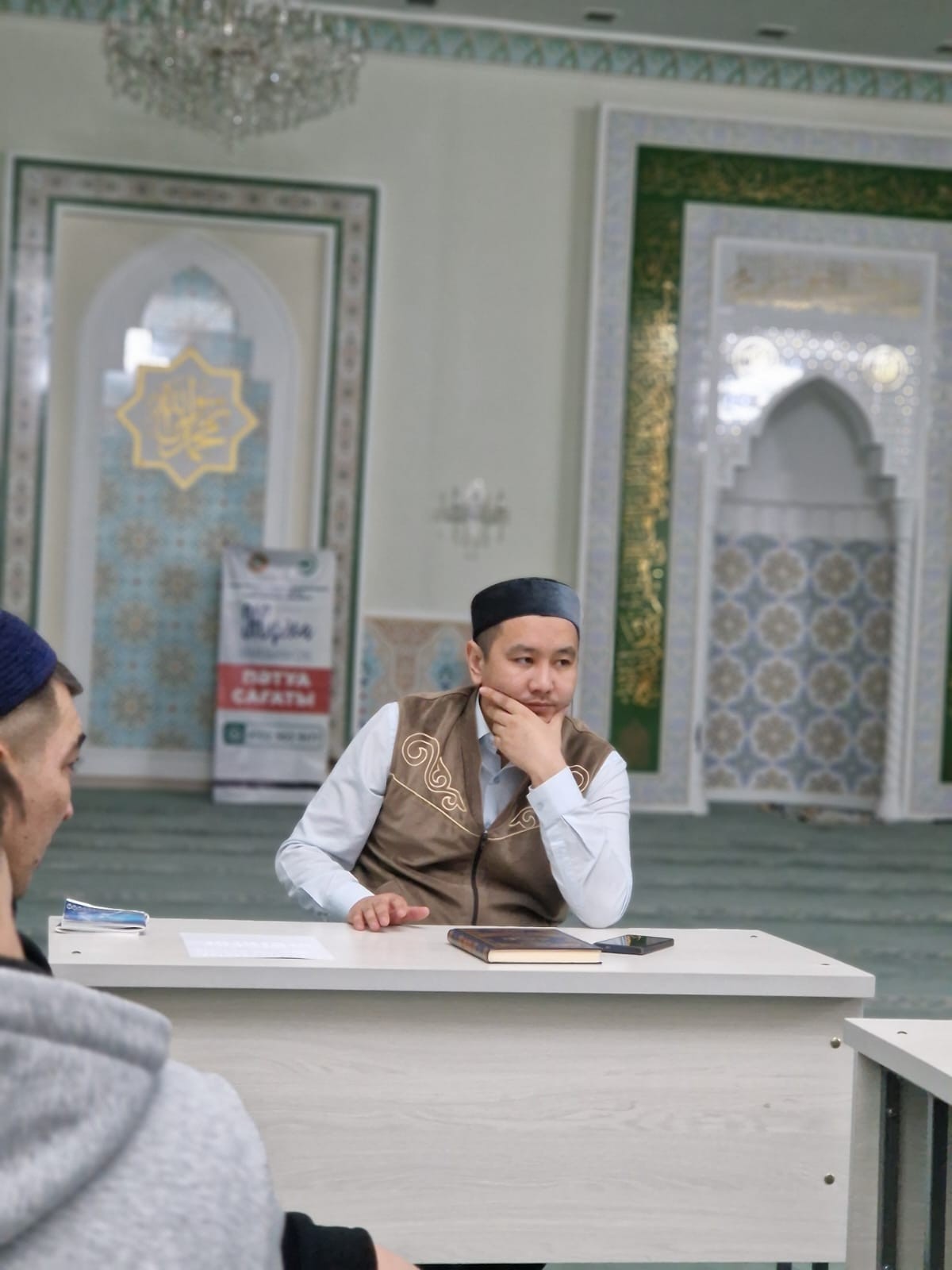 Тағылымды басқосуды мешіттің наиб имамы Дархан Түменбай жүргізіп, жамағатқа Рамазан айының адам өміріндегі маңызы, сабыр мен тақуалықтың орны, адалдық пен ізгі амалдардың сауабы жайлы насихат айтты. Сондай-ақ оразаның рухани тәрбиедегі рөліне ерекше тоқталды.