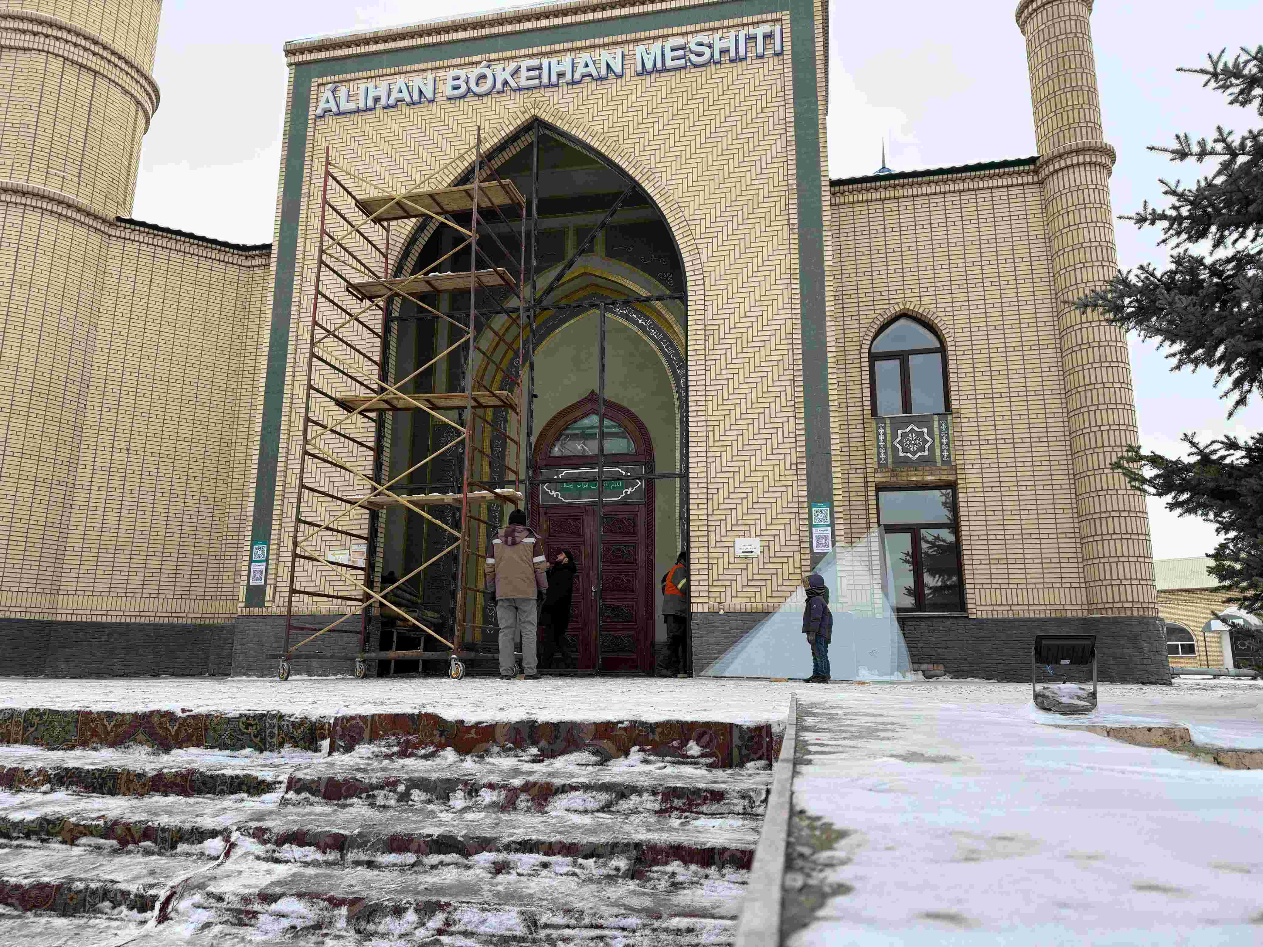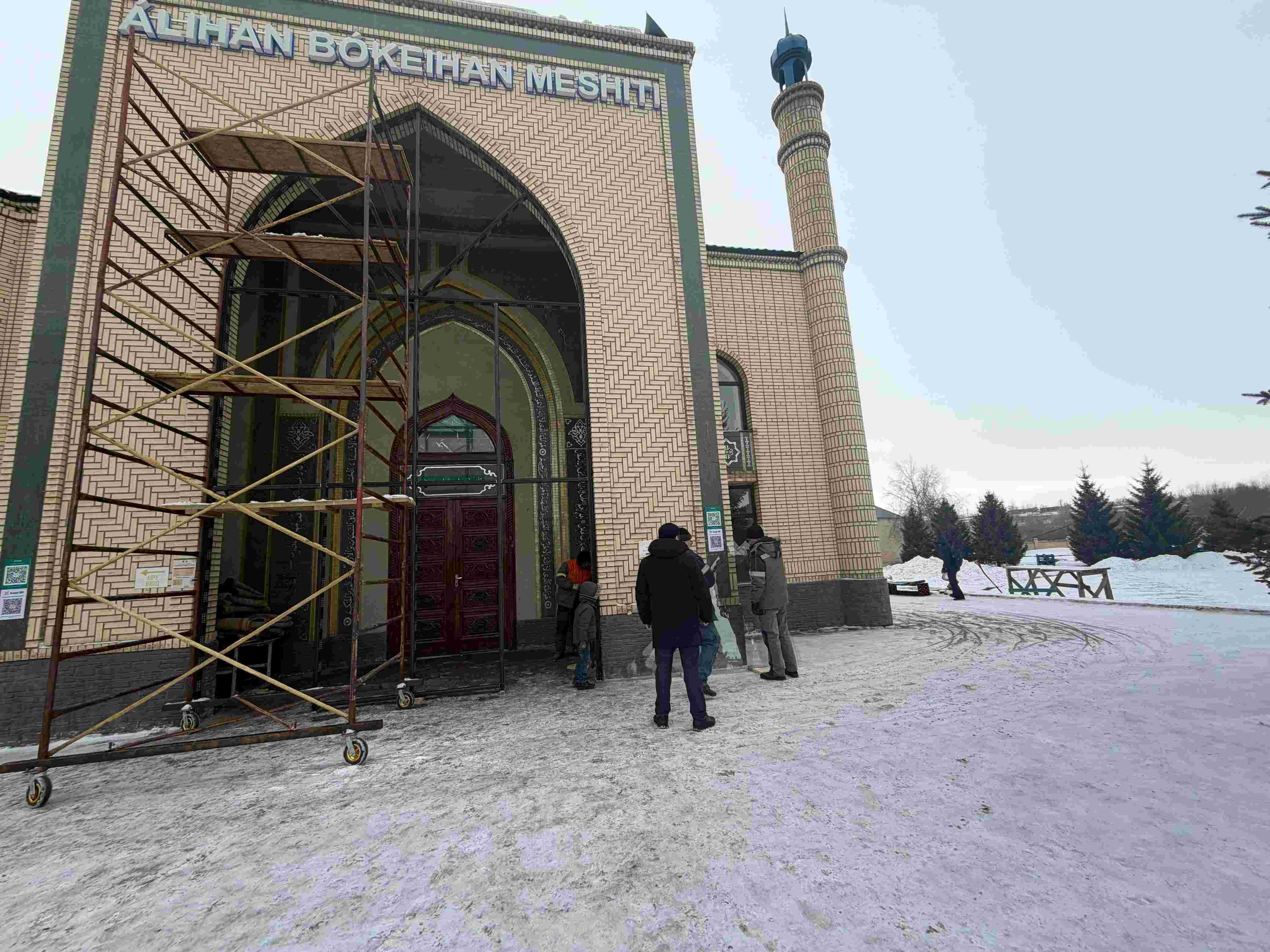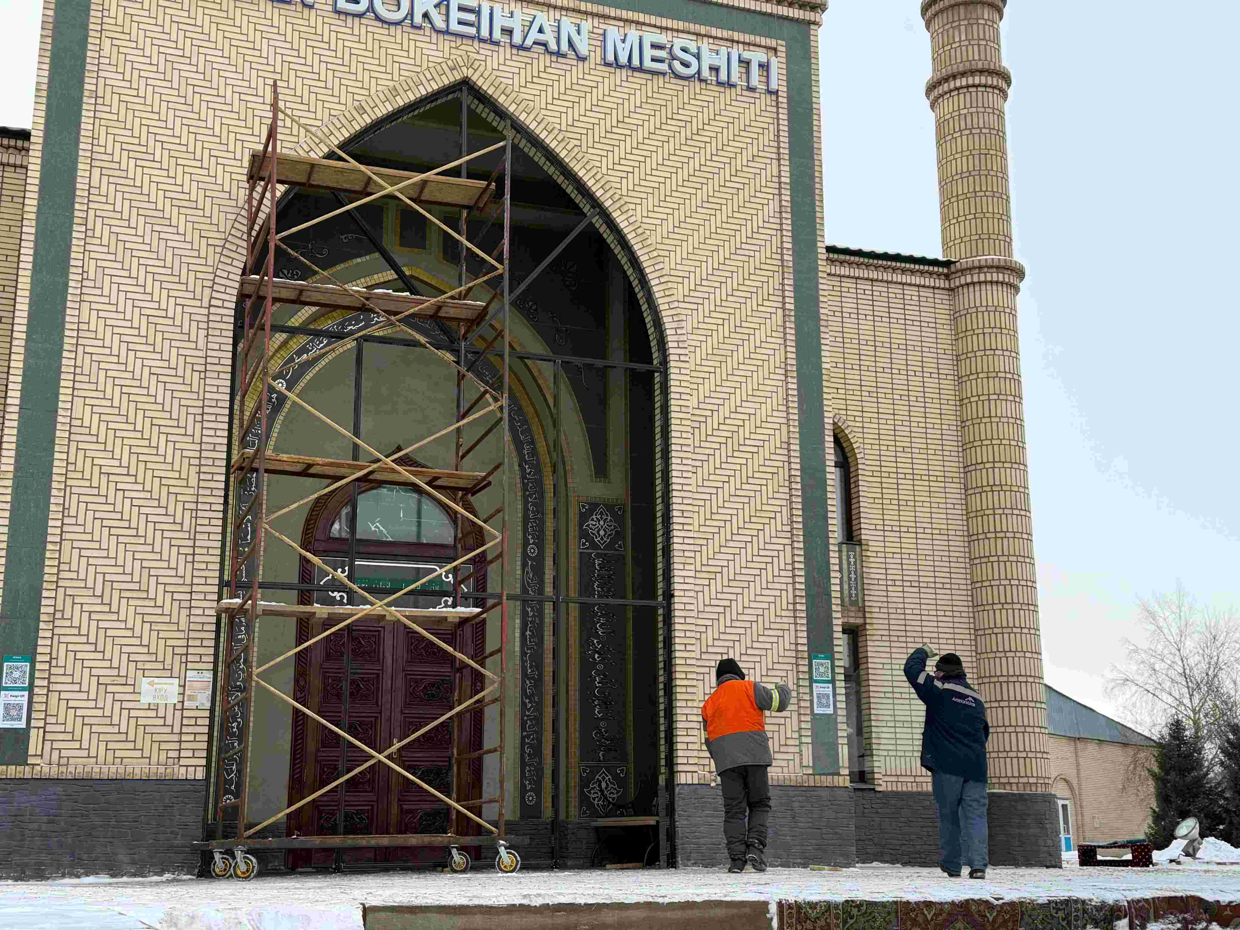 Қарағанды облысы, Теміртау орталық «Әлихан Бөкейхан» мешітінің имамы Ақниет Сәлімбайұлының ұйымдастыруымен мешіттің алдыңғы бөліміне жаңа АКФА есіктері мен терезелер орнатылуда.