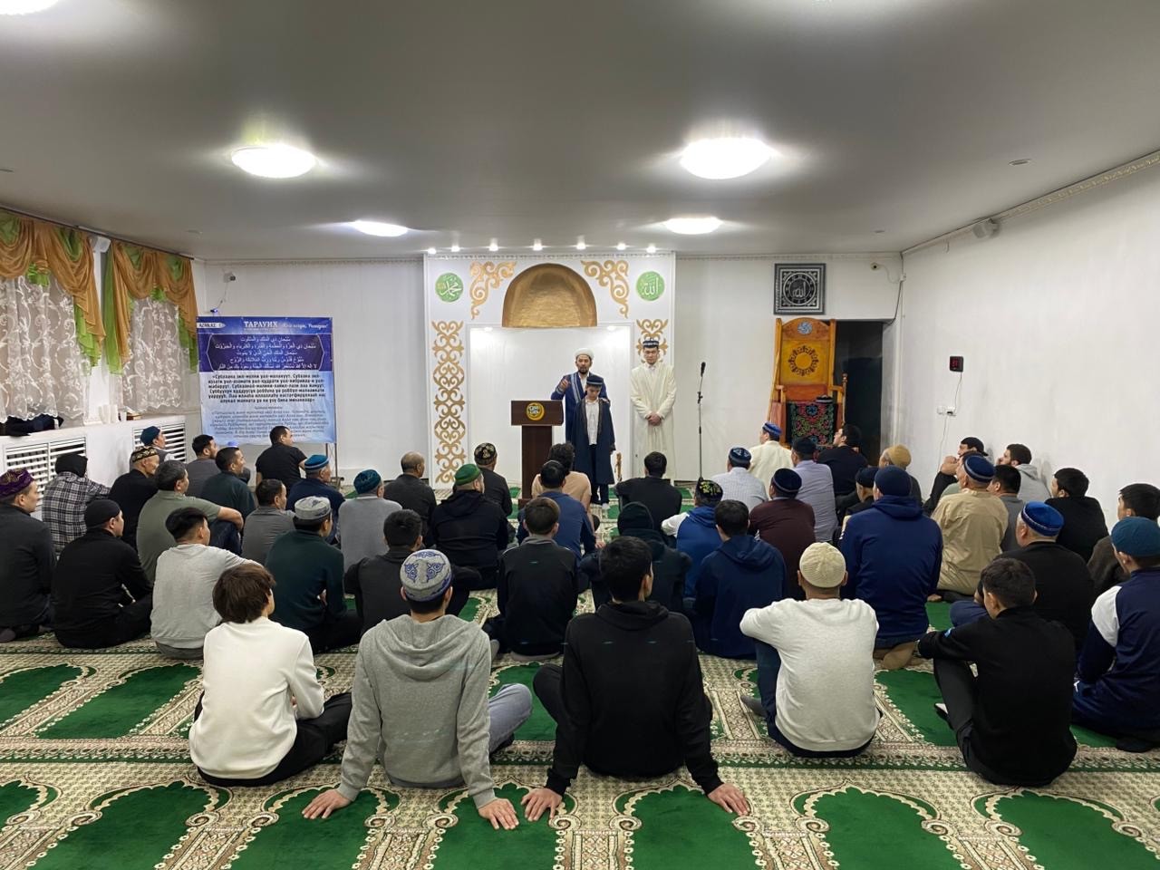 Тарауық намазының алдында қаланың бас имамы жамағатты Рамазан айының басталуымен ресми түрде құттықтап, айдың маңызы мен артықшылықтары жөнінде уағыз-насихат айтты. Сонымен қатар, биылғы Рамазан айында мешітте Құран хатымын жүргізетін қарилар жамағатқа таныстырылды.