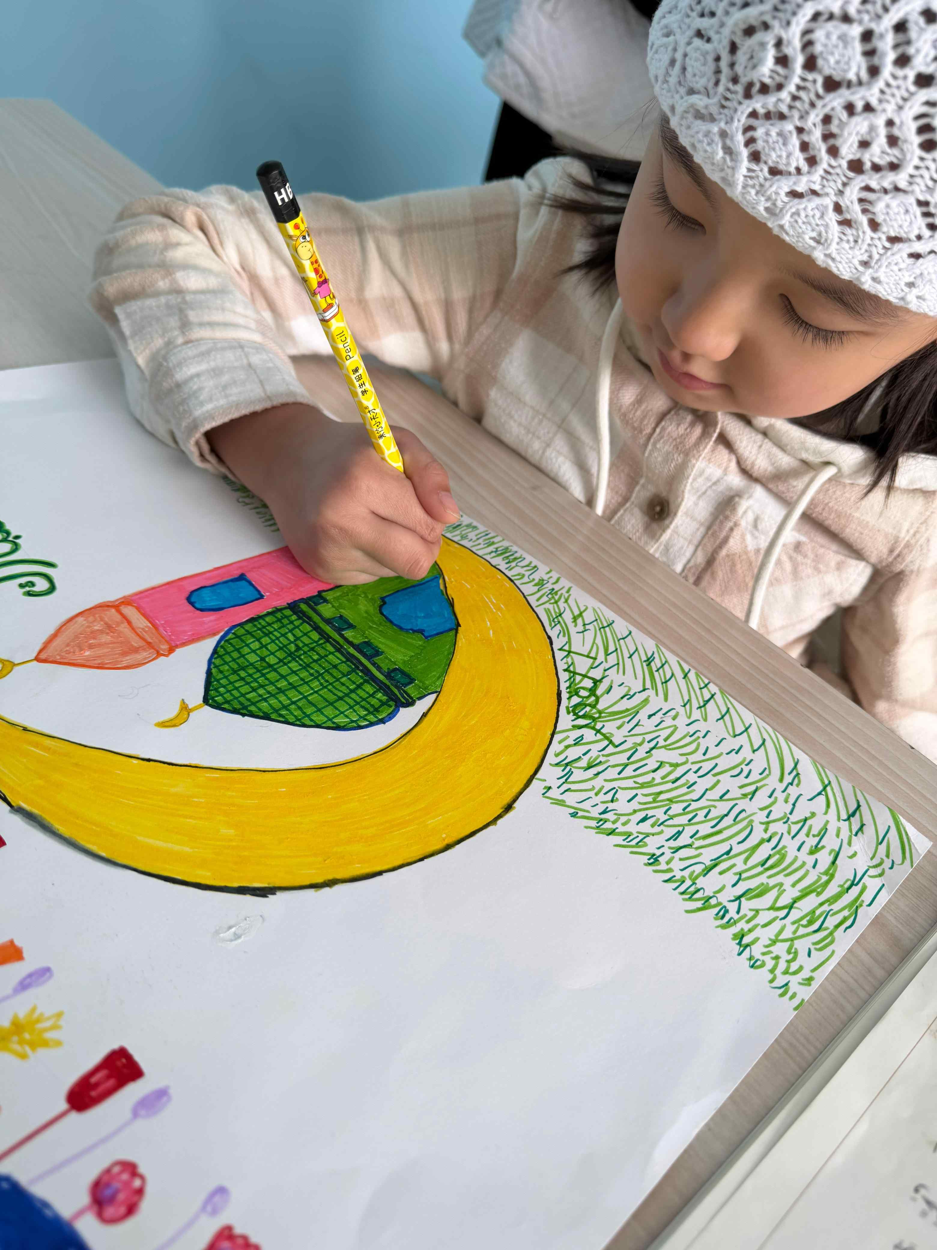 Сурет салу баланың қиялын дамытып, түстерді сезінуін және ойын бейнелеу қабілетін арттырады. Рамазан тақырыбының мағынасы терең болғандықтан, балалар өз туындылары арқылы айдың рухани мәнін жеткізуге тырысты.