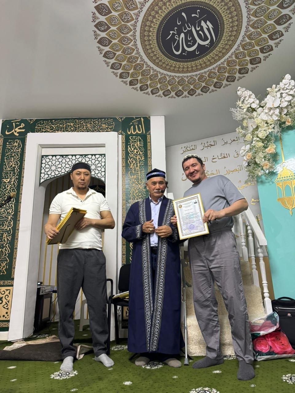 Сонымен қатар, мешітке демеушілік көрсеткен жандарға алғыс білдіріліп, арнайы Алғыс хаттармен марапатталды.
