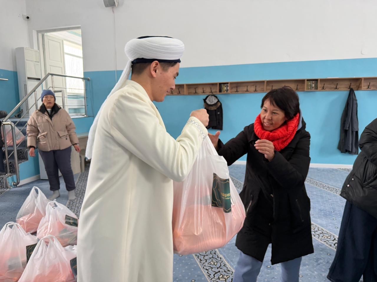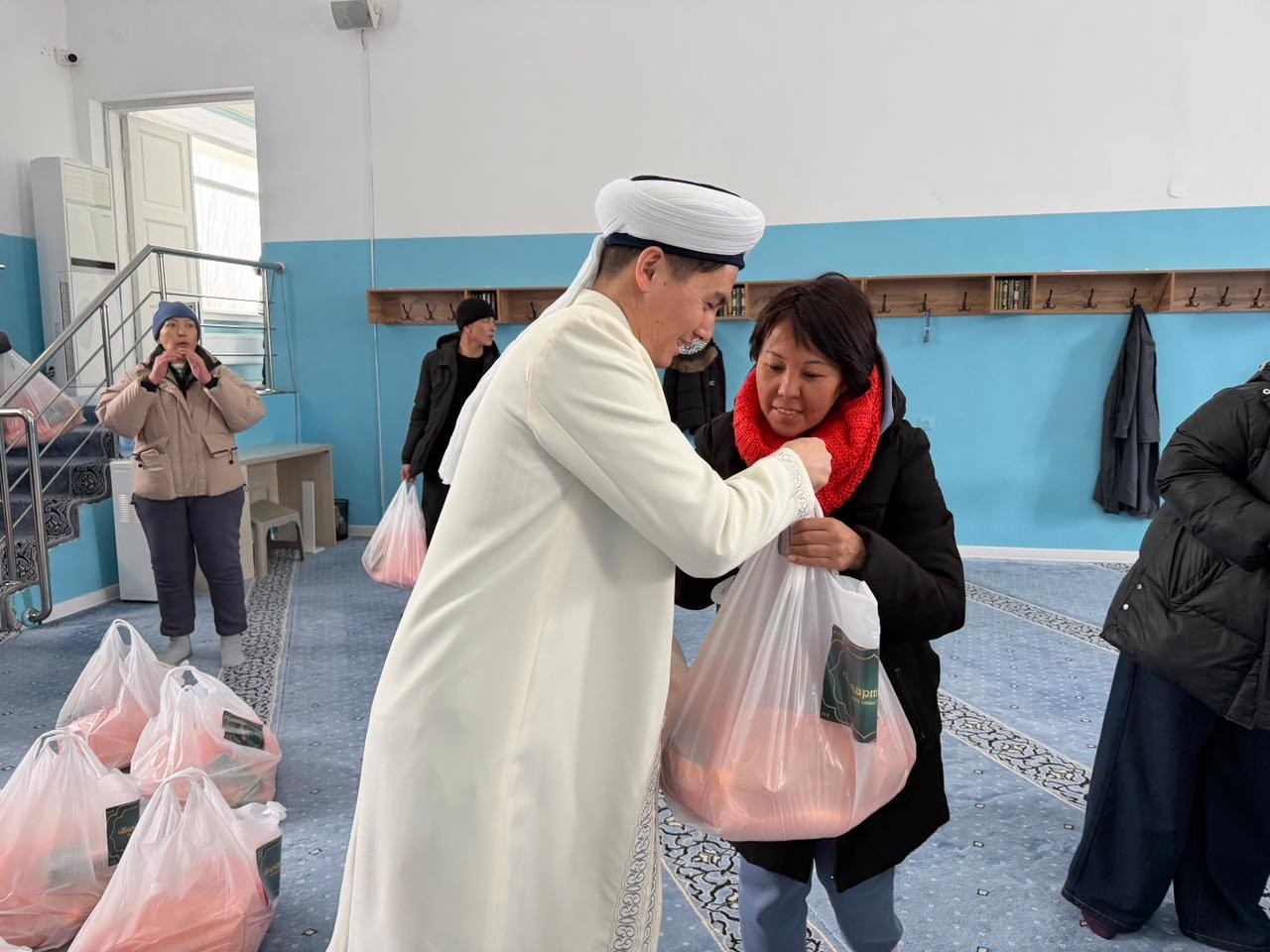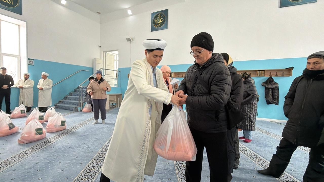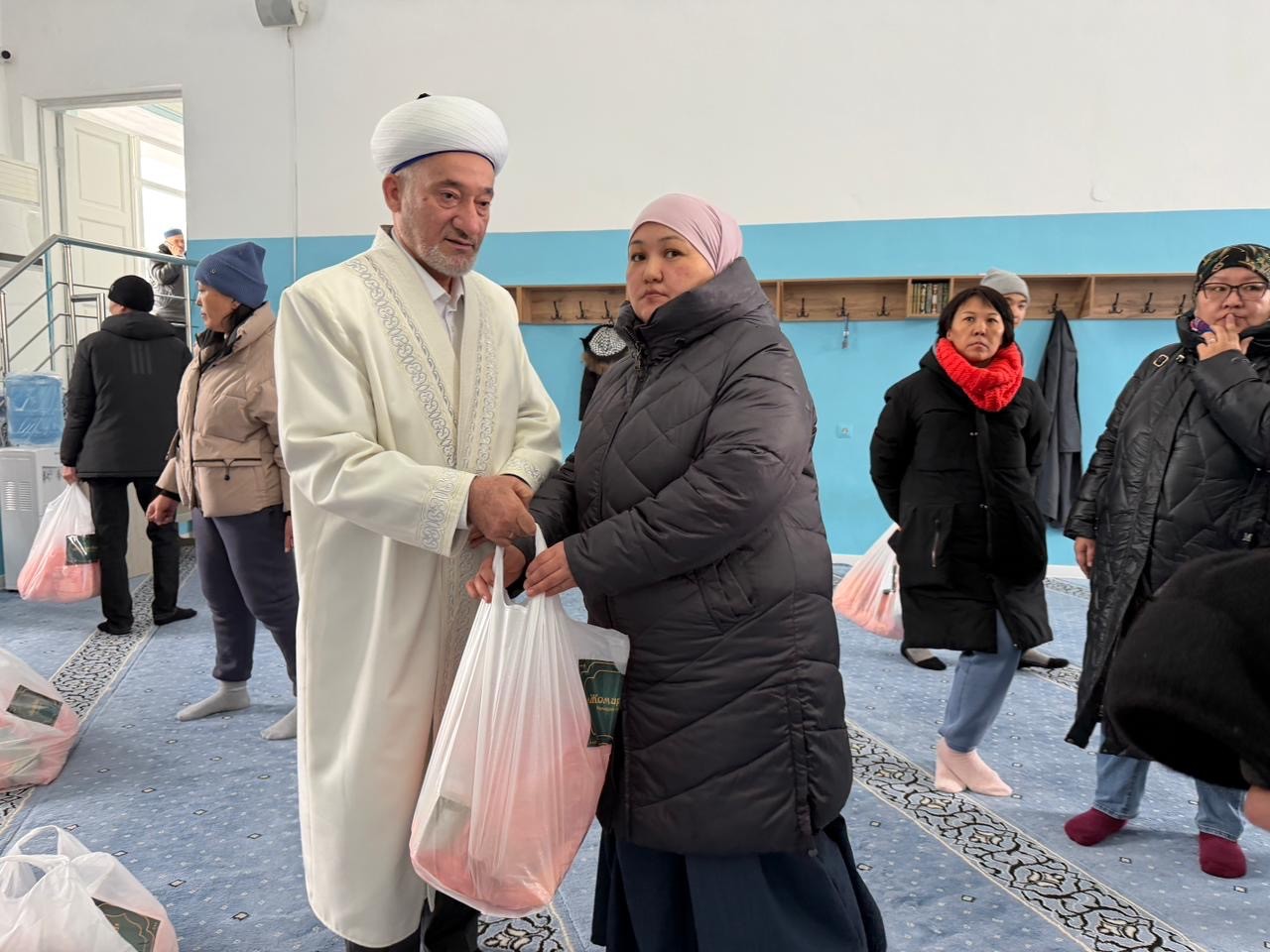 Аталған қайырымдылық барысында ерекше қажеттіліктері бар азаматтар, көпбалалы аналар және мешіт жамағатының әлеуметтік тұрғыда әлсіз топтарына жататын мүшелеріне күнделікті тұрмысқа қажетті азық-түлік жиынтықтары үлестірілді.