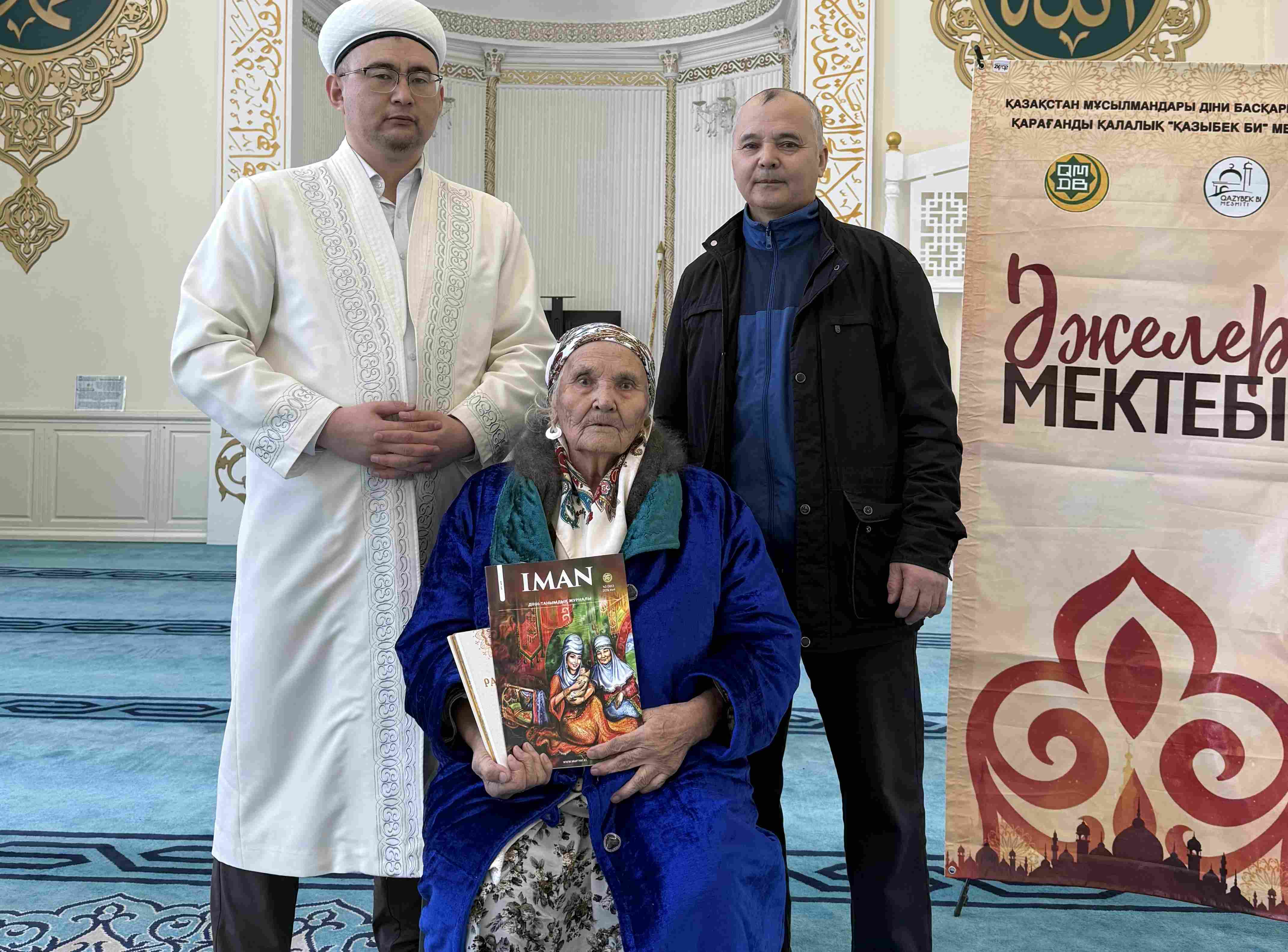 Қасиетті Рамазан айында құлшылық ордасына ат терлетіп келген қарт ана – алтын құрсақты, немере-шөбере сүйіп отырған ардақты жан. Мешіт имамы оның өнегелі өмір жолын атап өтіп, ізгі тілектерін білдірді.