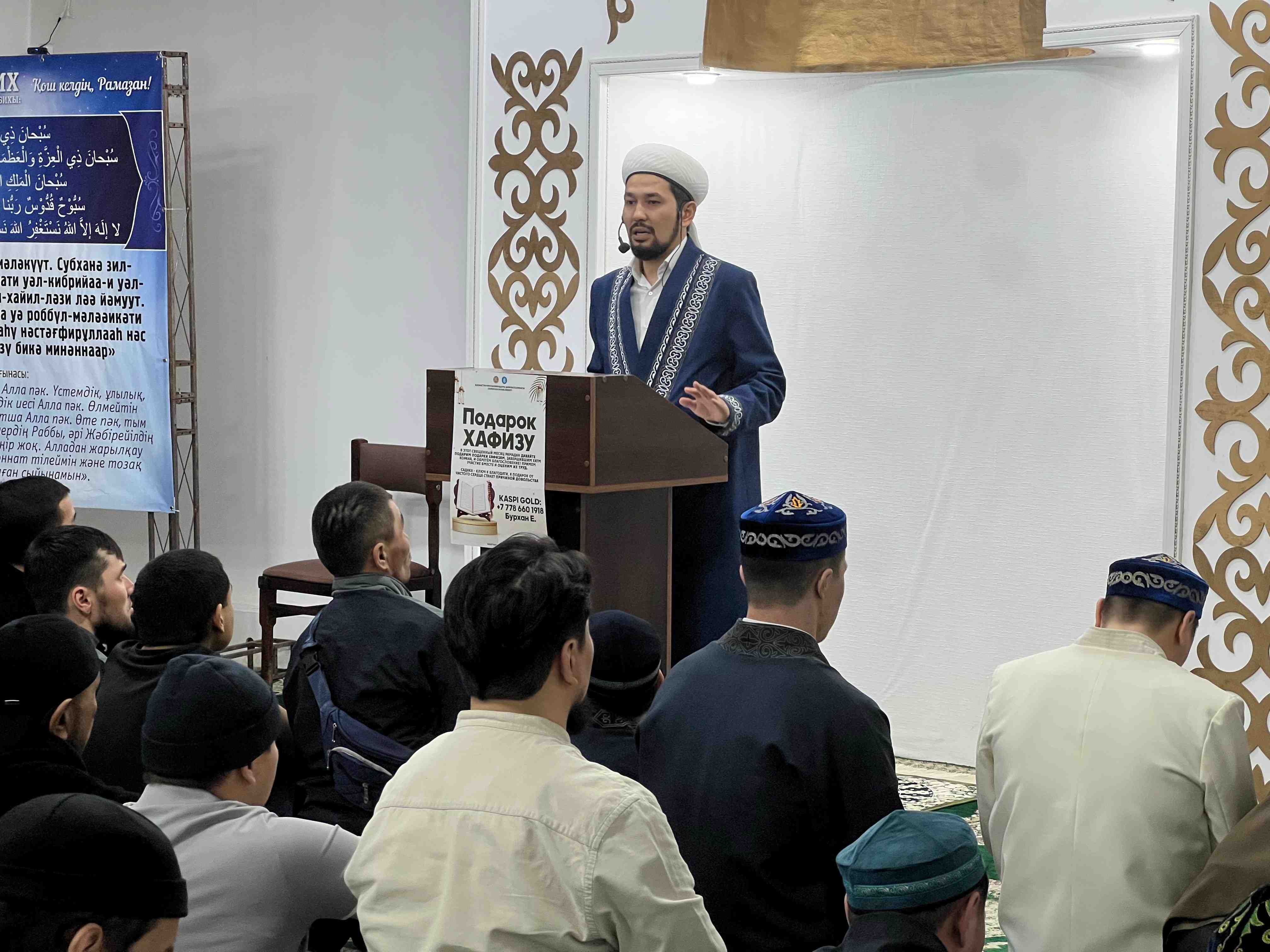 Саран қалалық мешітінде қасиетті Қадір түніне орай арнайы діни шара ұйымдастырылды. Кеш барысында жамағатпен бірге тарауық намазы оқылып, Құран Кәрім хатым етіліп, хатым дұғасы жасалды.