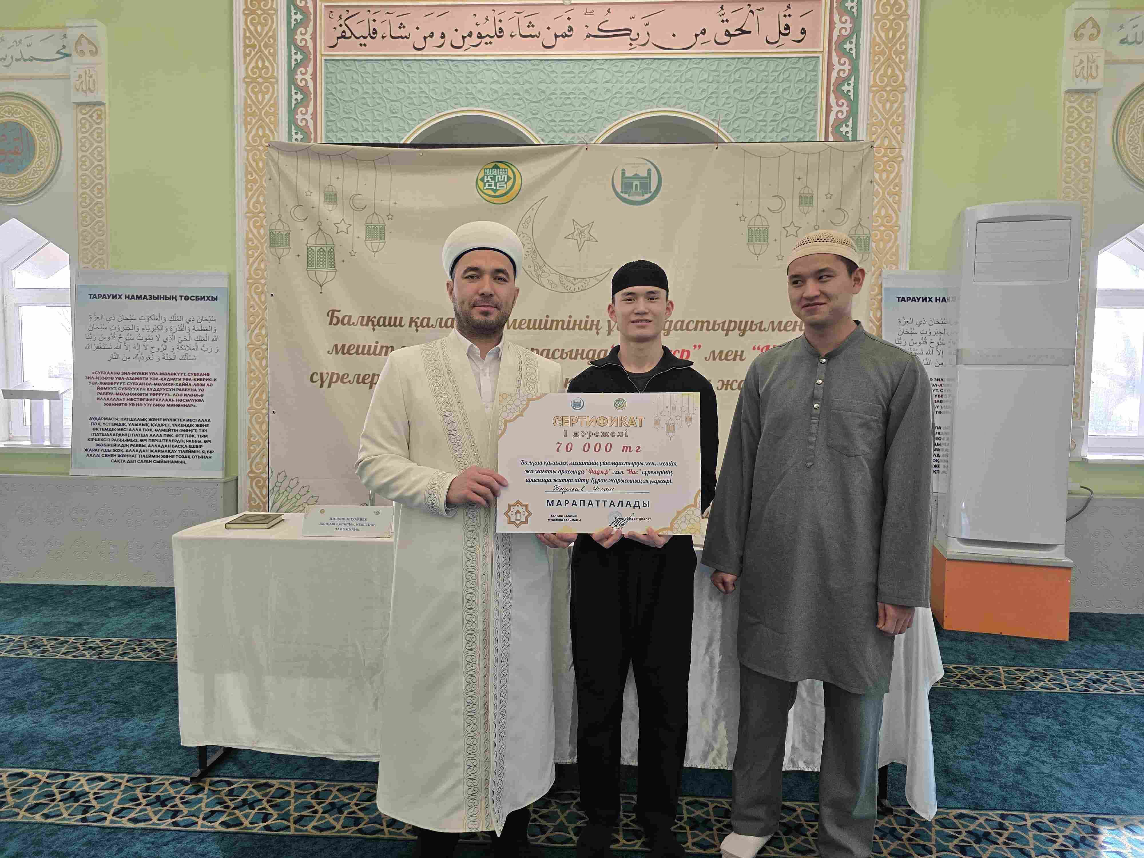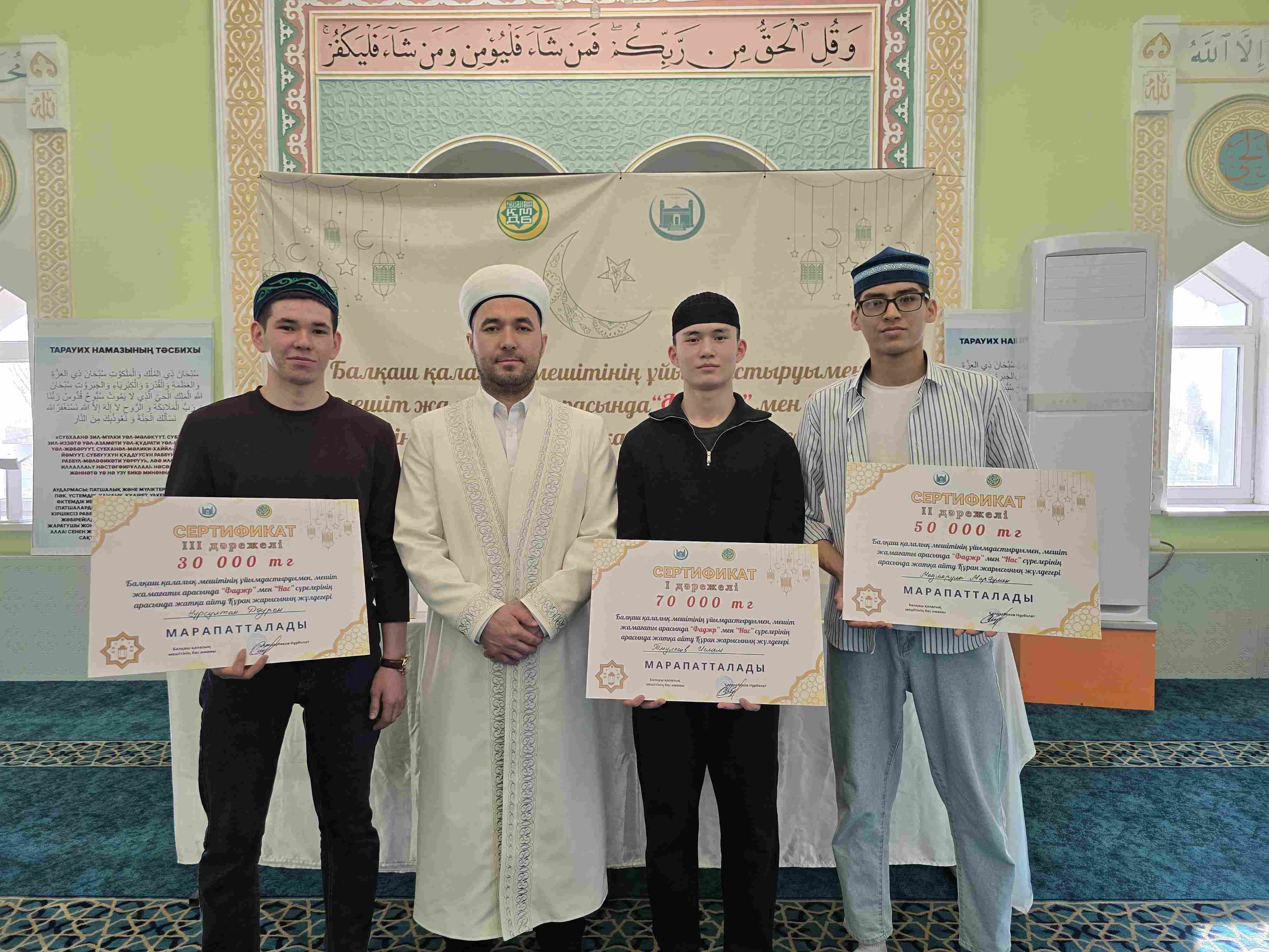 Балқаш қалалық мешітінің имамы Нұрболат Сейілханұлының ұйымдастыруымен ерлер жамағаты арасында Құран жарысы өткізілді.