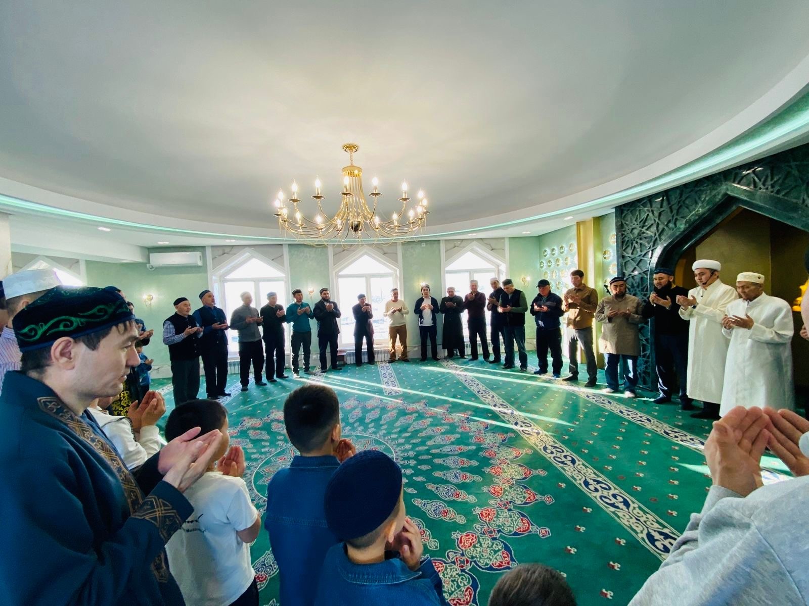 Жамағатқа айт құтпасы жеткізілді. Намаз соңында барша жамағат ел мен жердің амандығын тілесіп, дұға жасады.