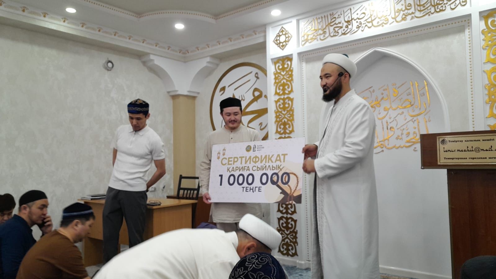 Теміртау орталық «Әлихан Бөкейхан» мешітінің имамы Ақниет Сәлімбайұлының ұйымдастыруымен қаладағы қос мешітте тарауих намазы барысында Қасиетті Құранды толық хатым етіп оқыған қариларға ерекше құрмет көрсетілді. Жамағатқа рухани азық сыйлап, түндерді Құран нұрымен көркейткен қарилардың еңбегі еленіп, оларға 1 000 000 теңгеден 2 000 000 теңгеге дейін қаржылай сыйлық табысталды.