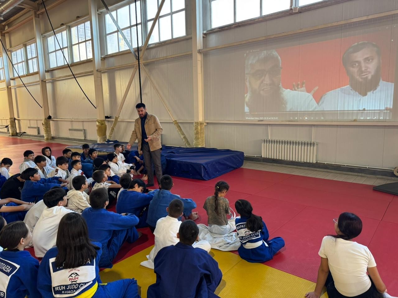 Осакаровка аудандық мешітінің имамы Құдайберген Серікұлы Қанат Байшолақов атындағы спорт кешенінде орналасқан «Жас сұңқар» мектебінің ұстаздары мен шәкірттерімен кездесу өткізді.
