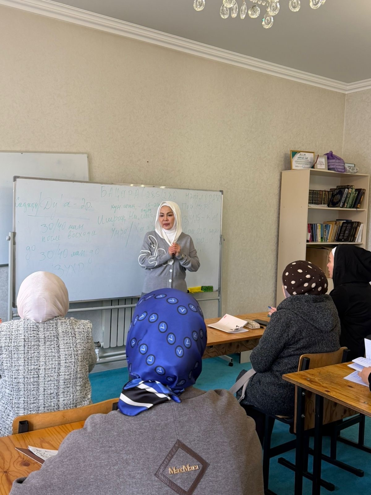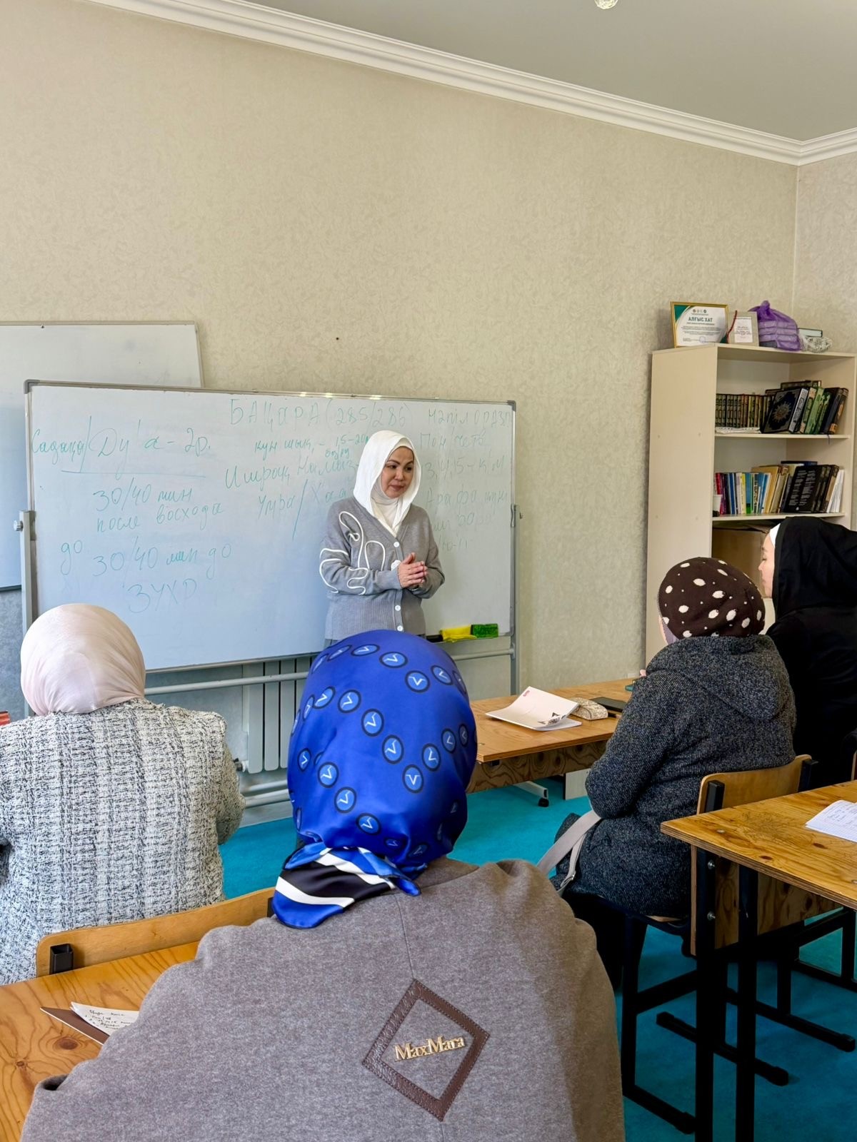 Қарағанды қалалық «Қазыбек би» мешітінің ұстазы Ажар Қыдырманқызының ұйымдастыруымен жамағаттың діни білімін арттыру мақсатында сауат ашу дәрістері тұрақты түрде ұйымдастырылып келеді.