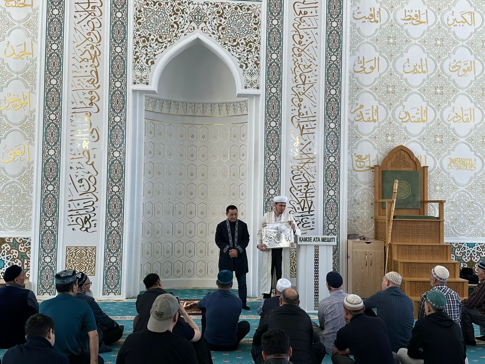 Жеңімпазды мешіт имамы Думан Қамариденұлы бастаған мешіт жамағаты зор құрметпен қарсы алып, иығына шапан жауып, сый-сияпат көрсетті.