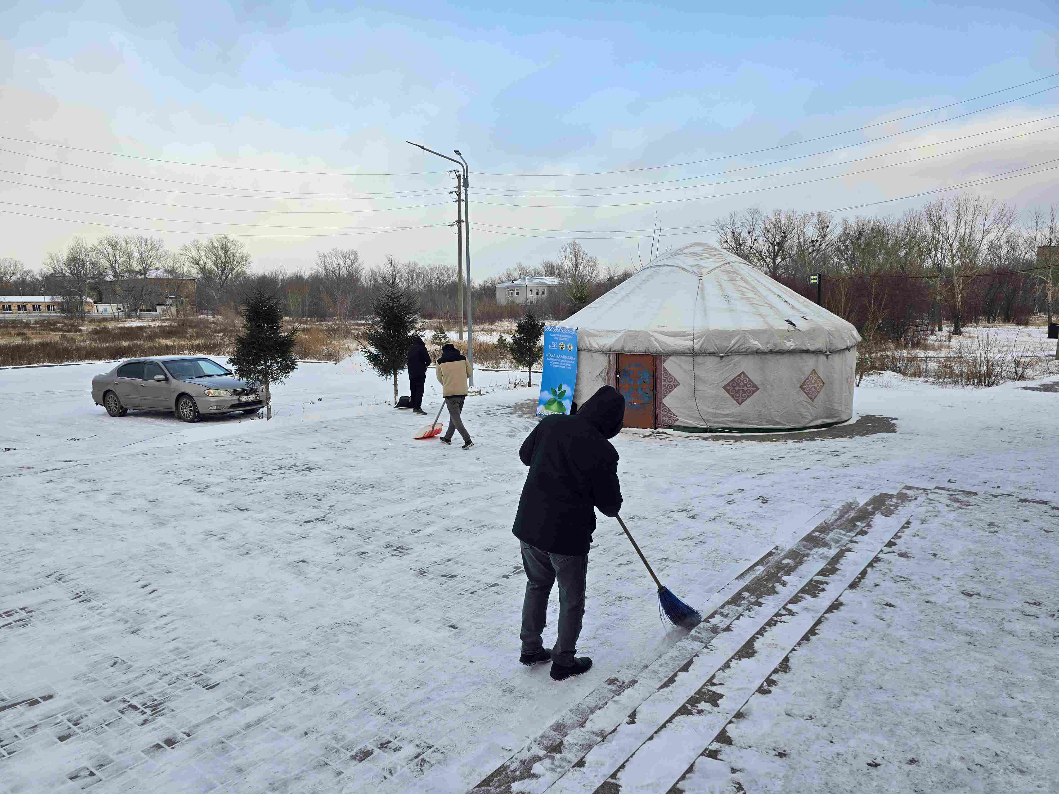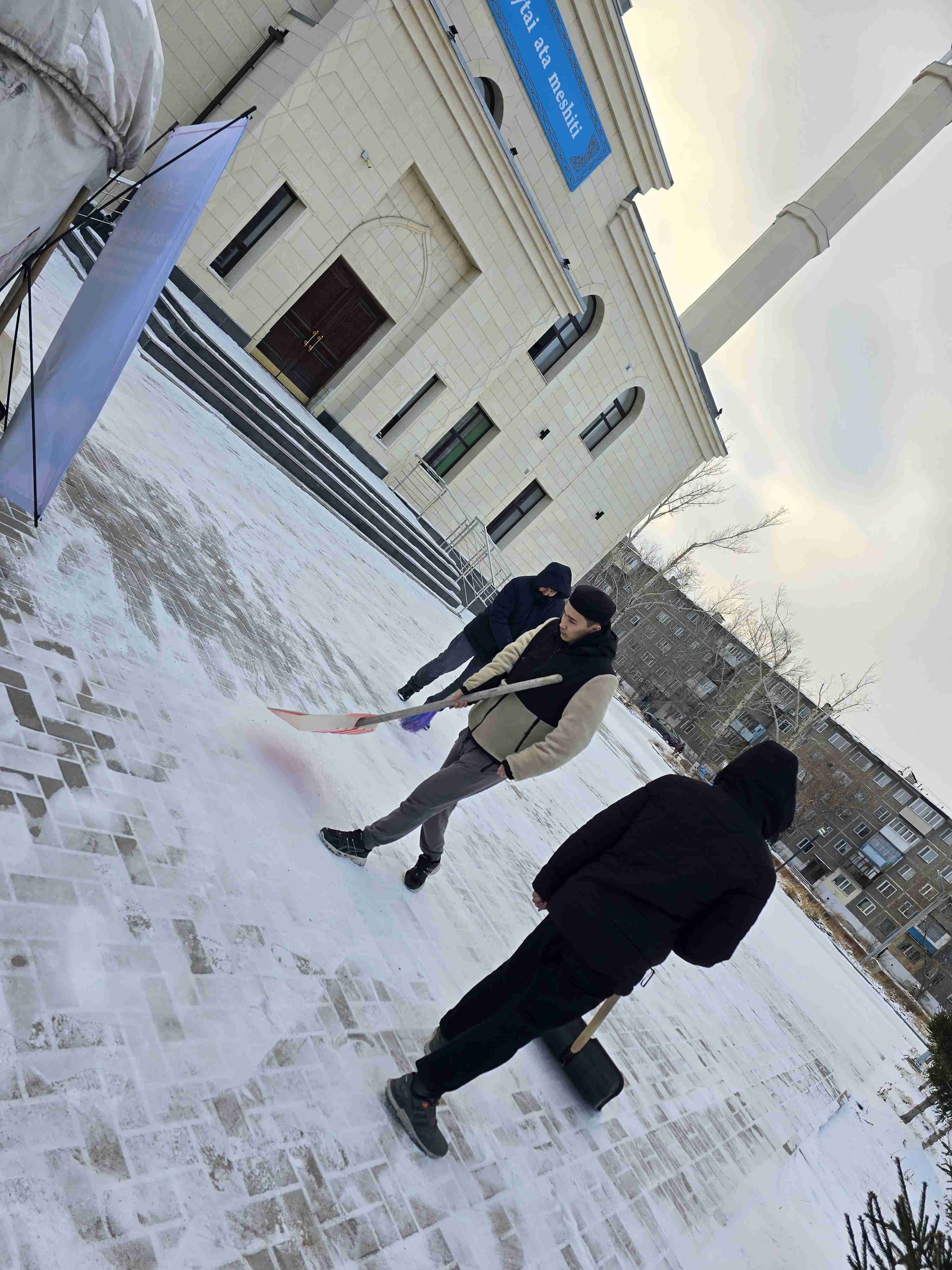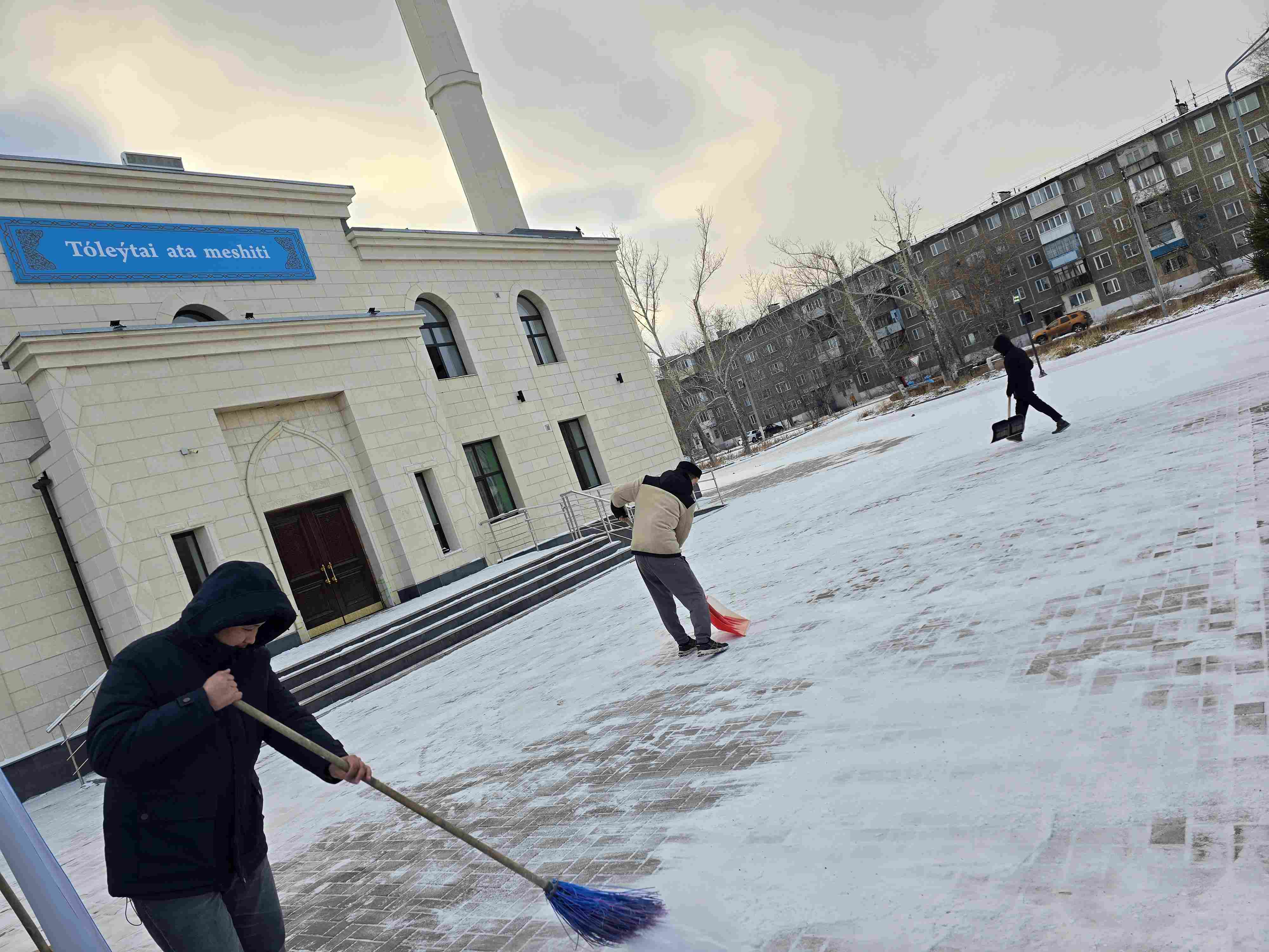 Игі істі мешіттің бас имамы Рауан Төлеубекұлы ұйымдастырды. Акцияға мешіт жамағаты мен дін қызметкерлері белсене атсалысып, мешіт ауласын қардан тазалап, айналасын ретке келтірді. Сонымен қатар мешіт ішінде де жалпы тазалық жұмыстары жүргізіліп, жамағатқа қолайлы, таза орта қалыптастырылды.