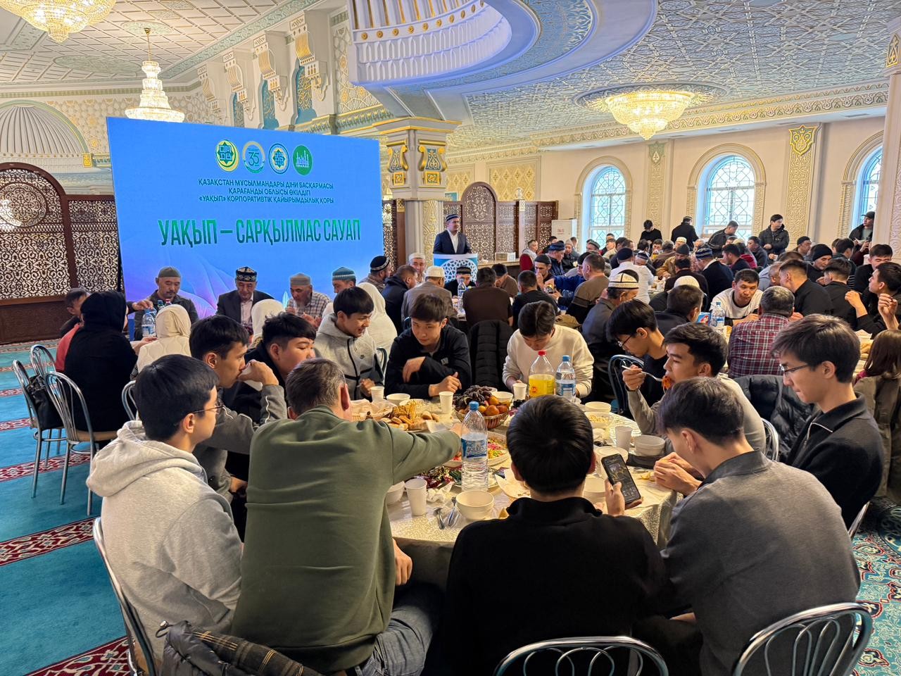 ҚМДБ-ның Қарағанды облысы бойынша бас имамы Естай Айтуғанұлының ұйымдастыруымен өткен рухани кешке ҚМДБ «Уақып» корпоративтік қайырымдылық қорының төрағасы Азамат Әбікерімұлы және Төраға орынбасары Абдуалибек Анарқұлұлы арнайы қатысты.