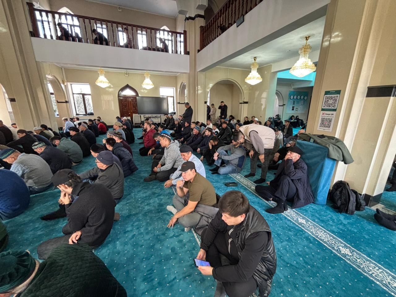 Бас имам жұма намазынан кейін мешіт жамағатымен бірге ел мен жер үшін шейіт болған батырлар руһына Құран бағыштап, халқымыздың тыныштығы үшін дұға жасады. ⠀