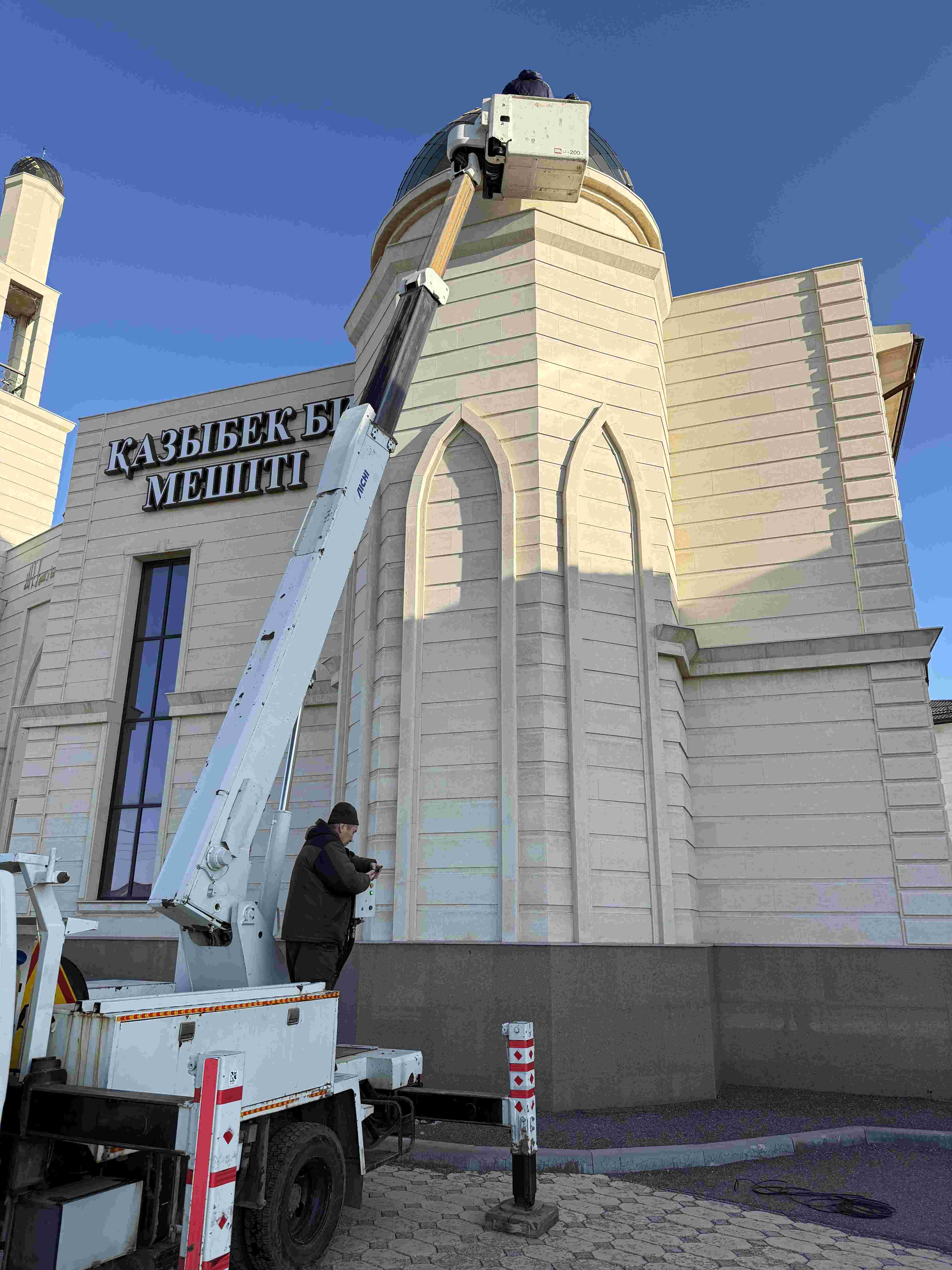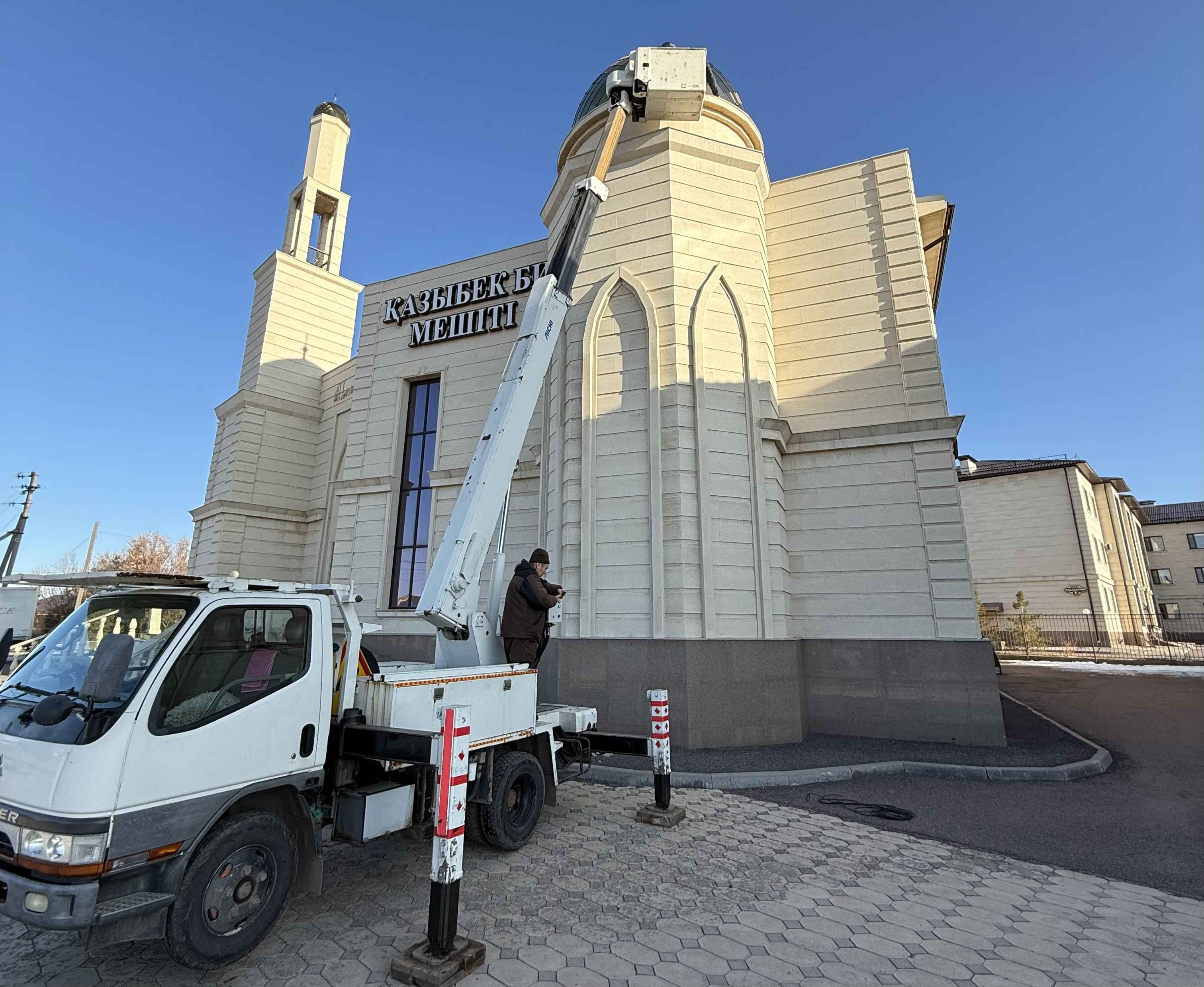 Қарағанды қалалық «Қазыбек би» мешітінің имамы Асылхан Нұртайұлының ұйымдастыруымен мешіт ғимаратының сыртына заманауи аспа шамдар орнатылды.