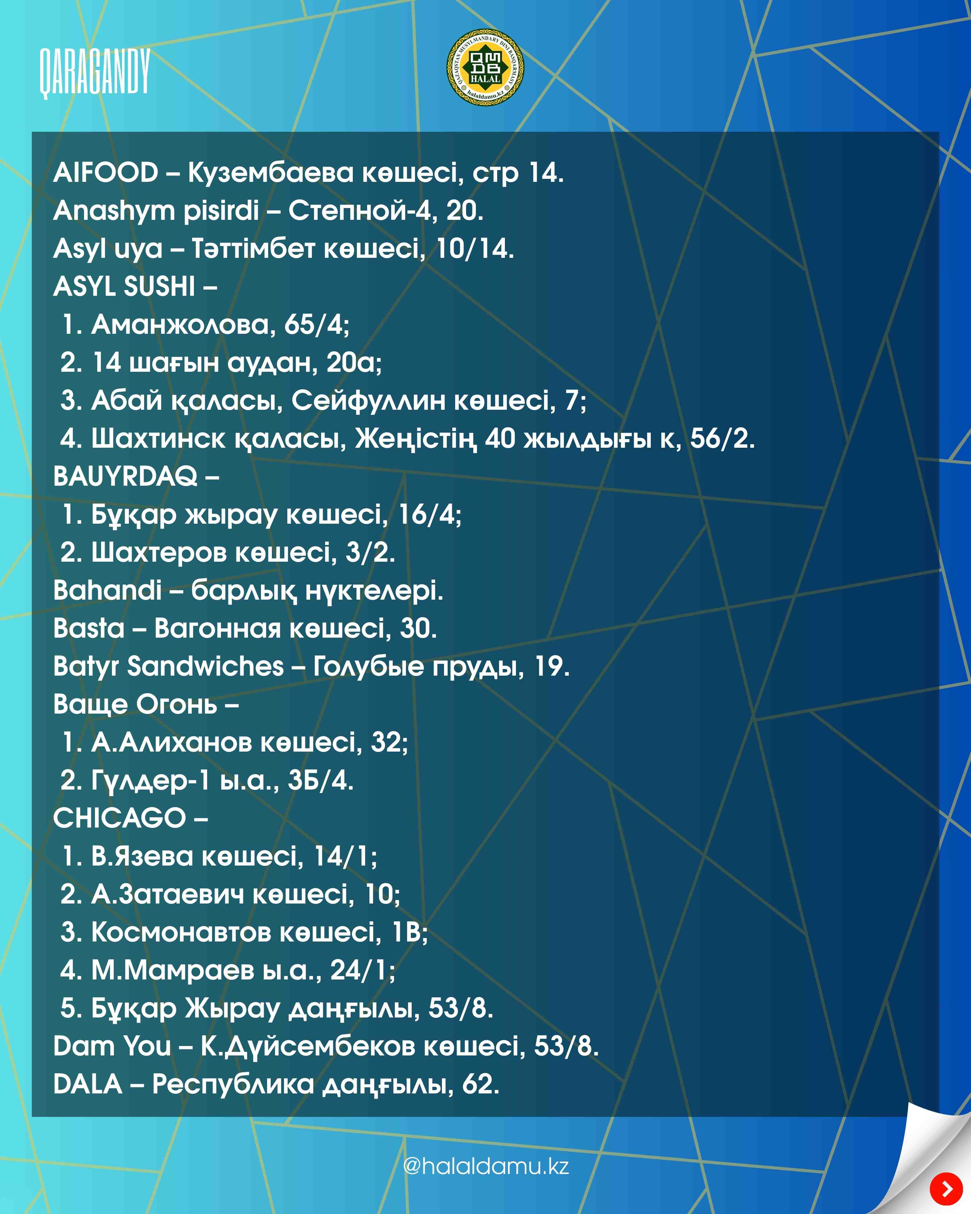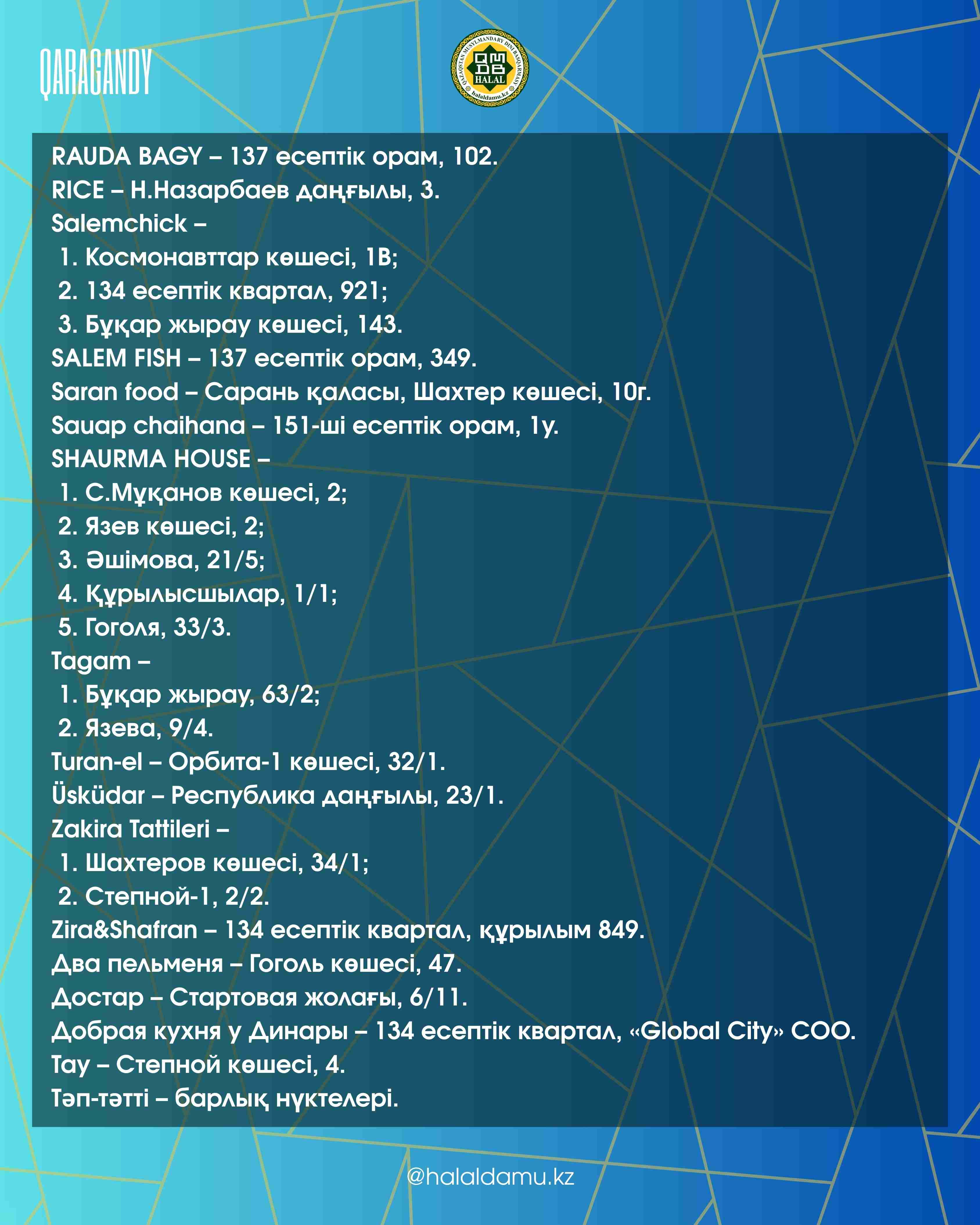 Қарағандыдағы халал дәмханалар