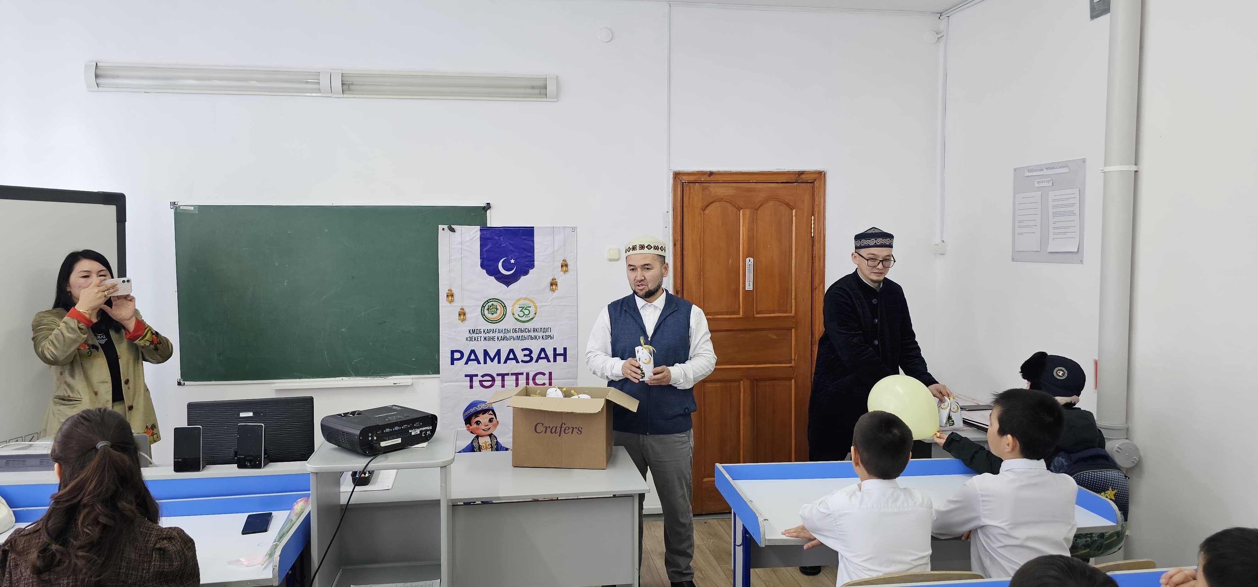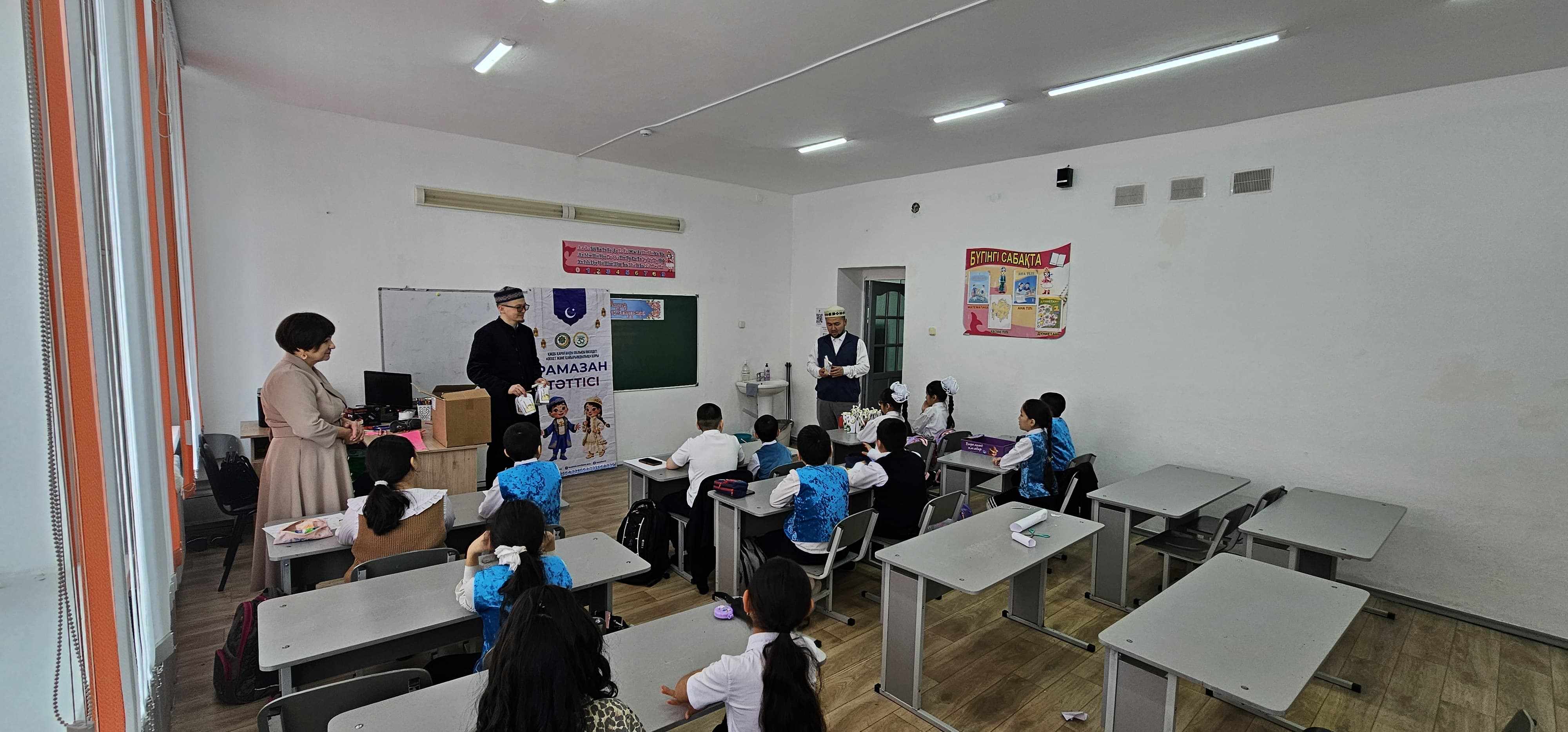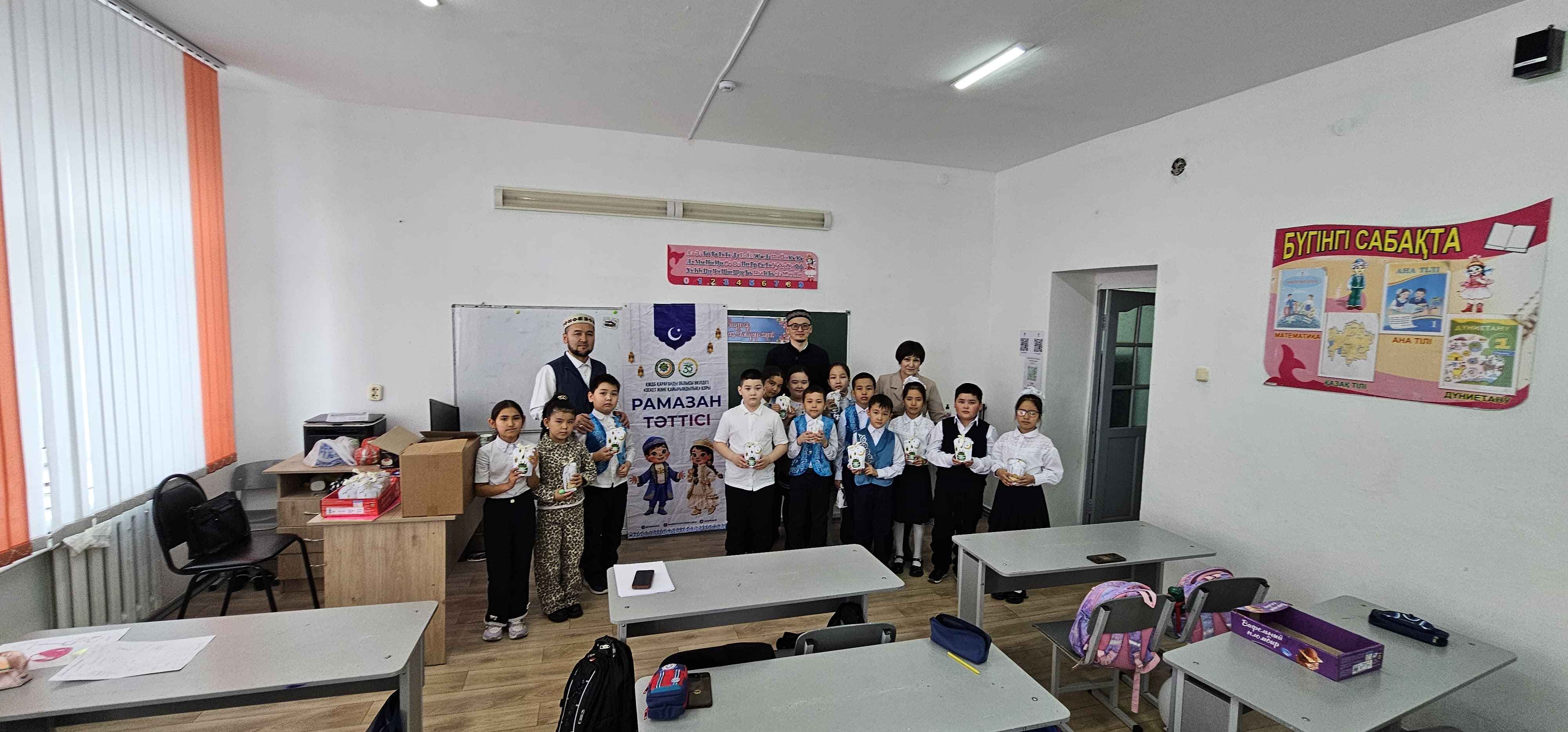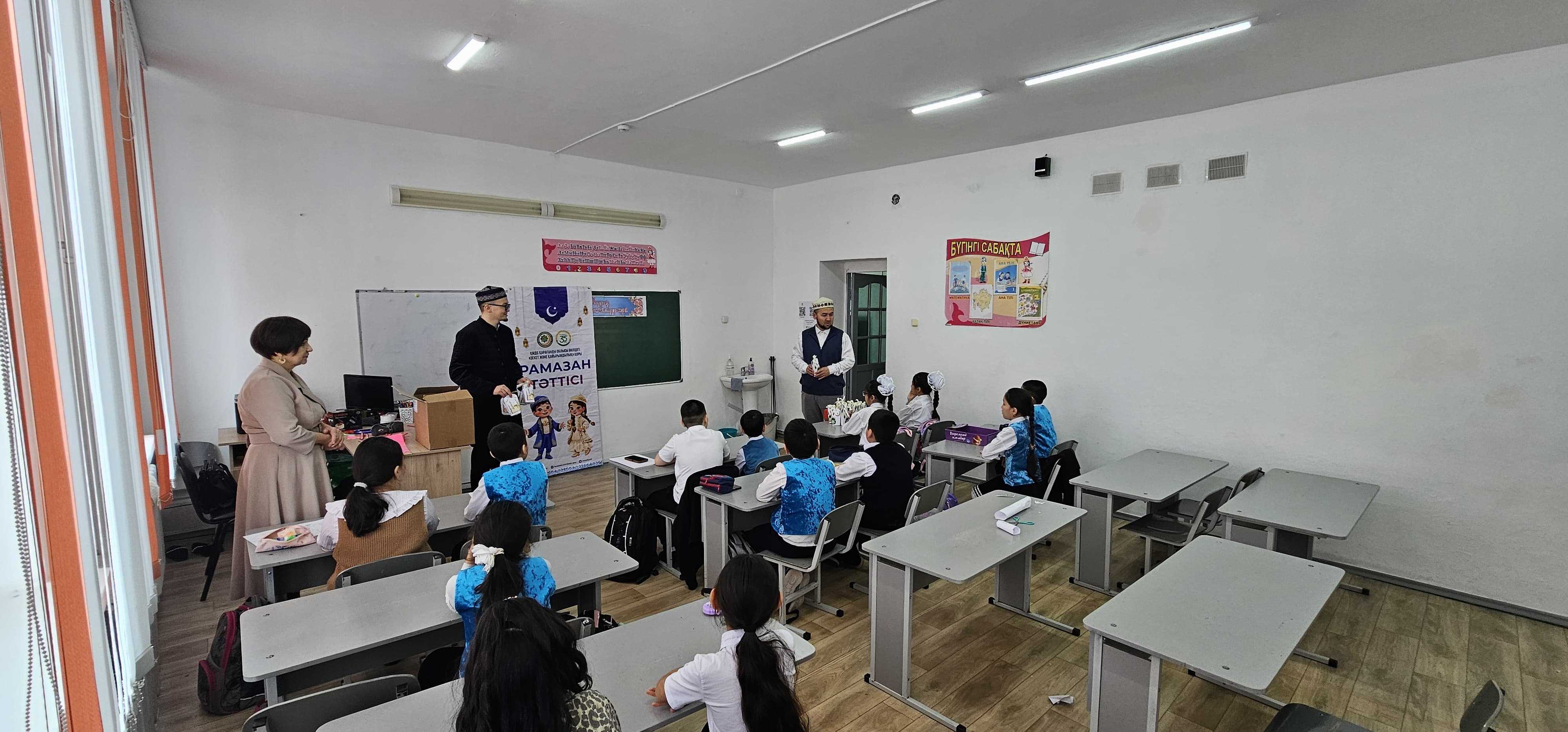 Мерейлі мереке қарсаңында өткен игі шара барысында аудан имамы мектеп оқушыларын Рамазан айымен құттықтап, оларға ізгі тілегін білдірді. Сондай-ақ жас буынды мейірімділікке, ізгілікке және үлкенді құрметтеуге үндеді.