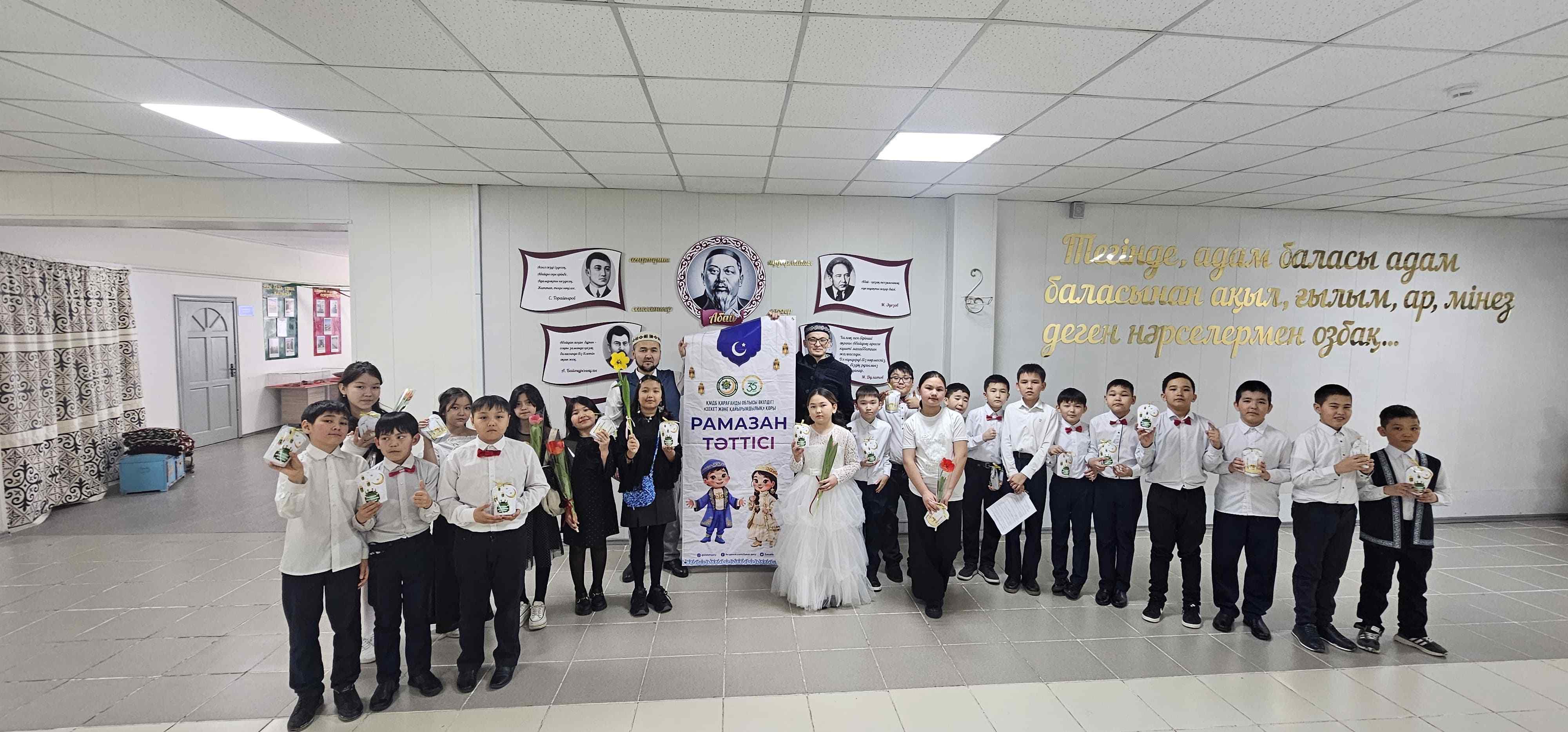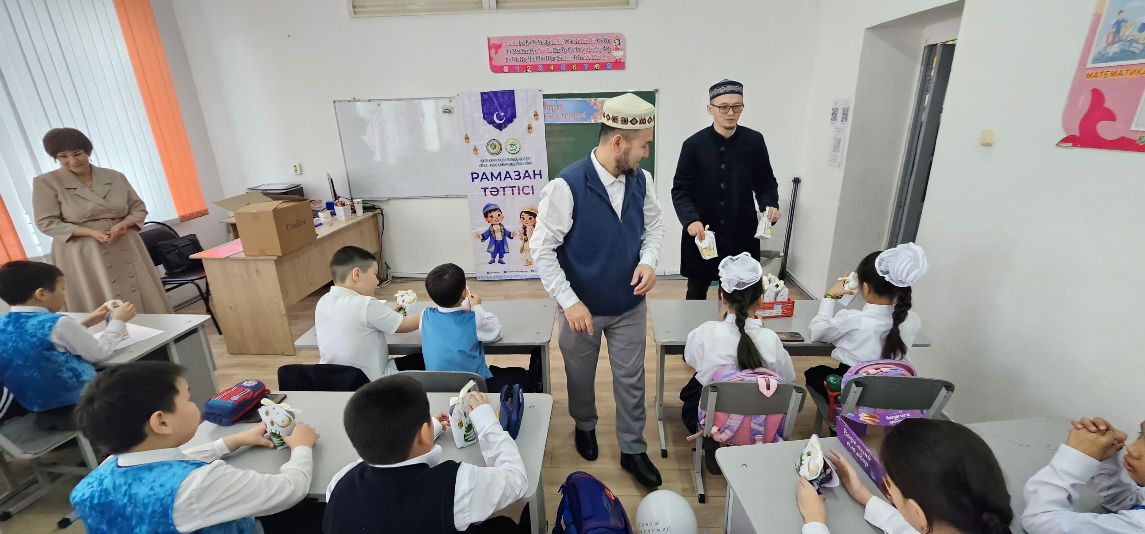 Қасиетті Рамазан айының құрметіне орай Абай аудандық орталық мешітінің имамы Асхат Қанайұлының ұйымдастыруымен Абай қаласындағы мектеп оқушыларына «Рамазан тәттілері» үлестірілді.