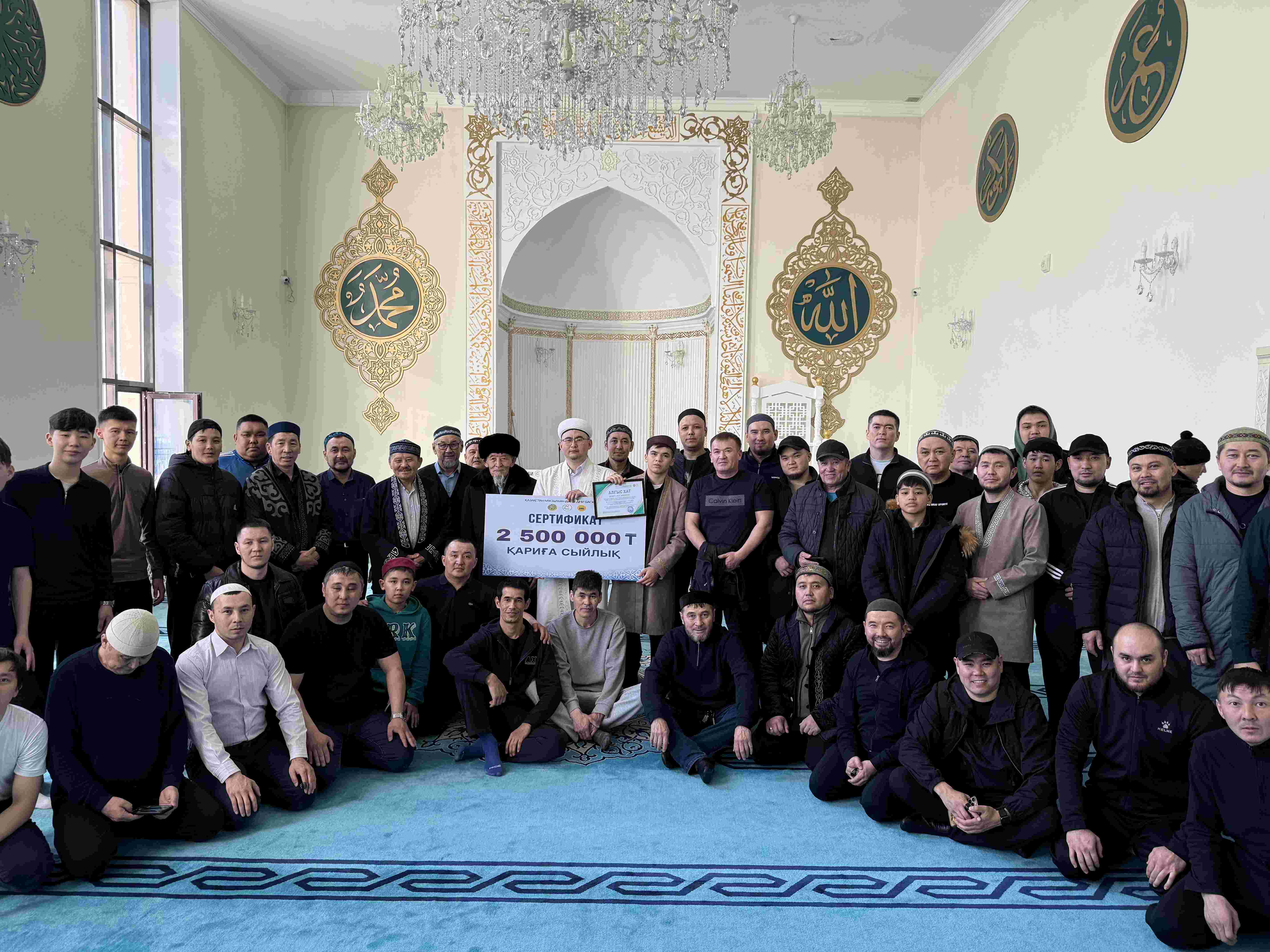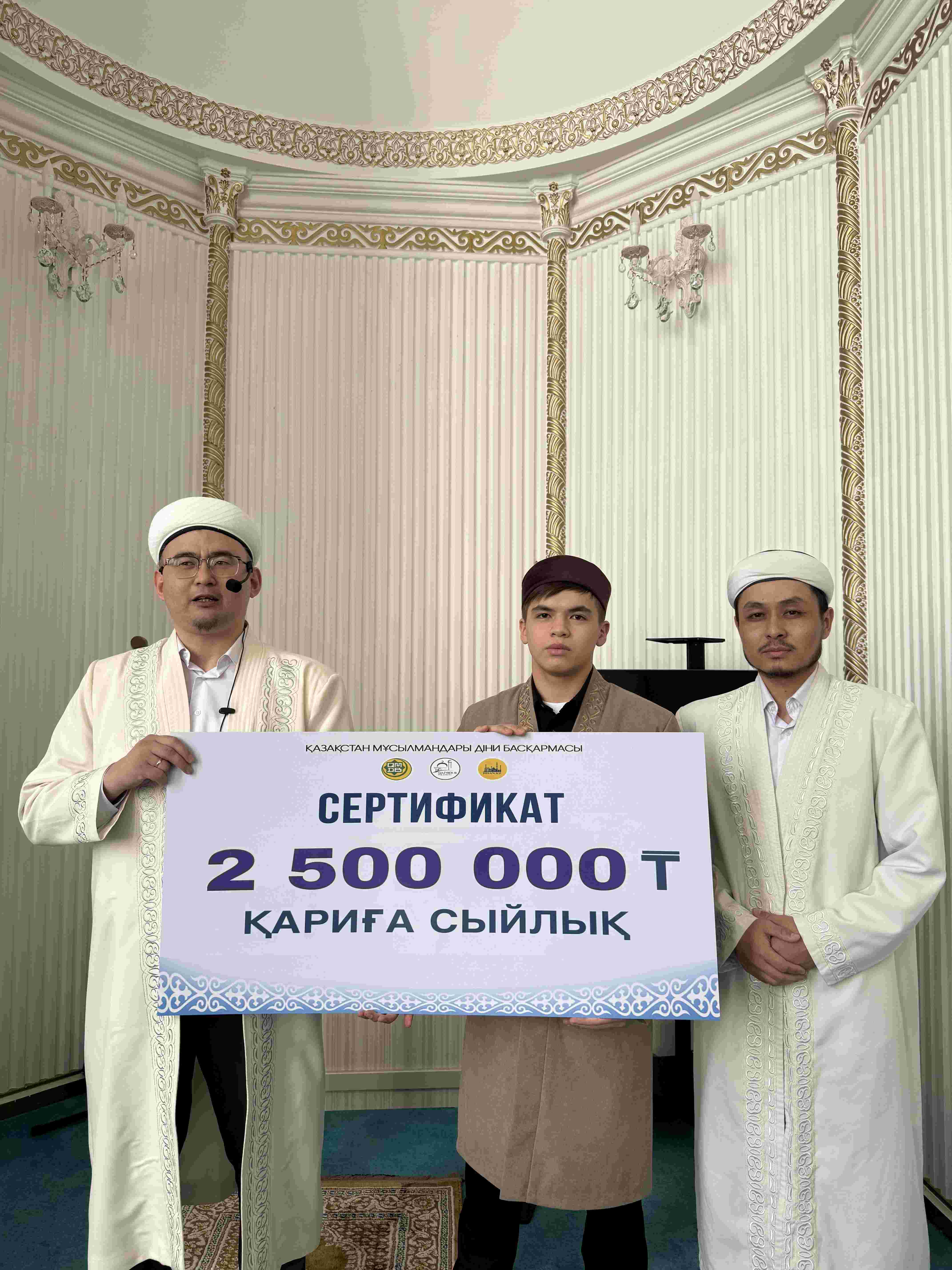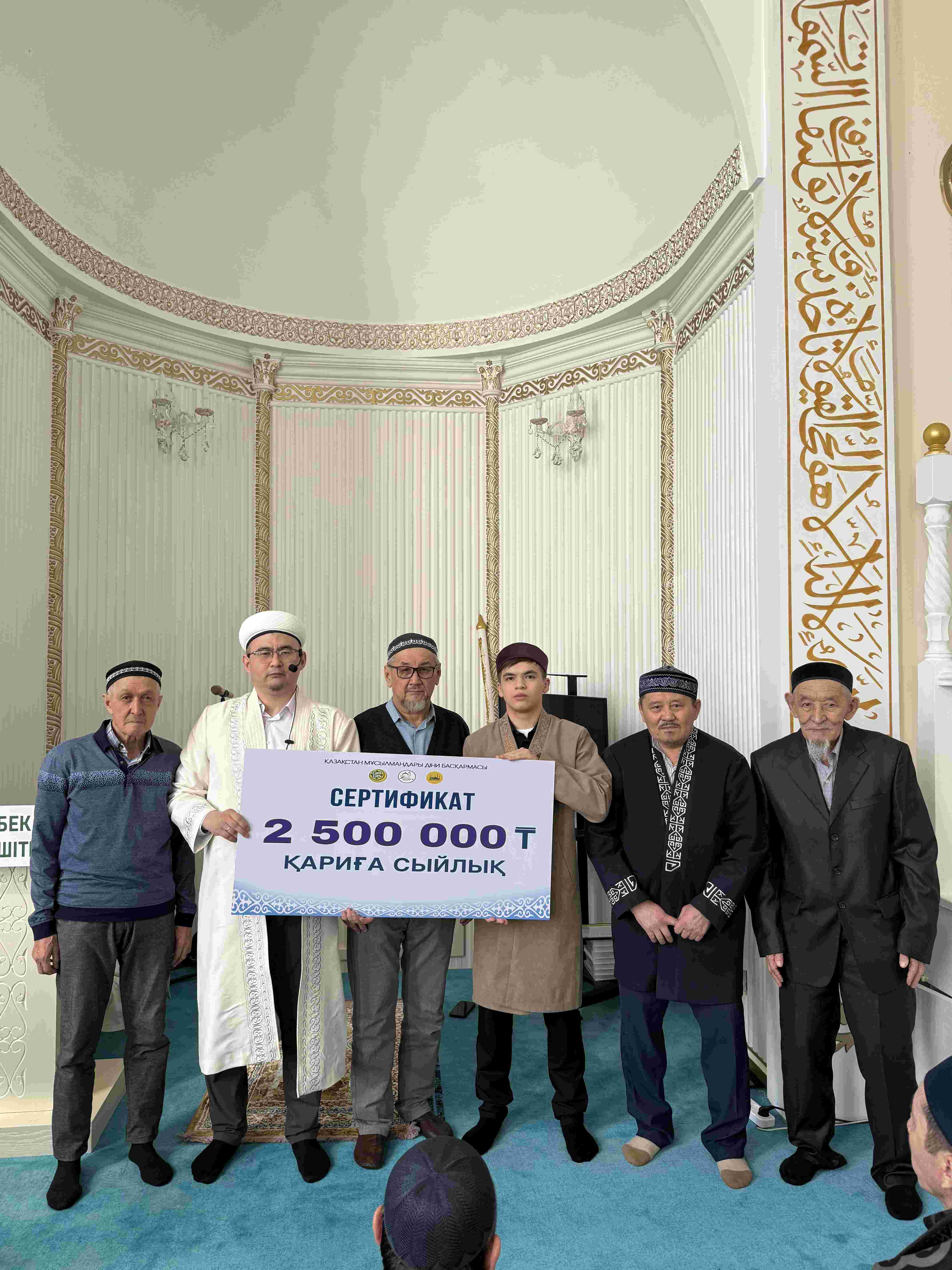 Ұлық айда әр түнде тарауық намазын жүргізіп, Құран Кәрімді әуезді мақаммен толық хатым еткен қариға мешіт имамы Асылхан Нұртайұлы шексіз ризашылығын жеткізіп, 2 500 000 теңге қаржылай сертификат табыстады. Сондай-ақ, қаридың иығына қазақы дәстүрмен шапан жабылып, жамағат шынайы ризашылықтарын білдірді.