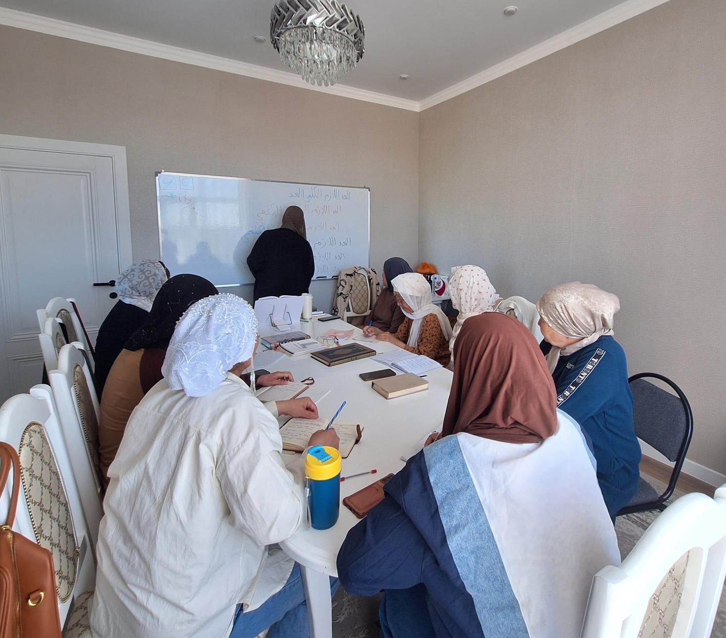 Сабақ барысында қатысушыларға ғибадаттың негізгі қағидалары, әдеп пен тәрбие мәселелері жан-жақты түсіндірілуде.