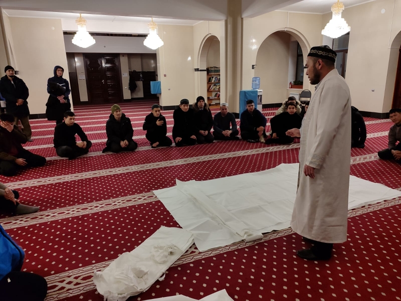 Теміртау Орталық “Әлихан Бөкейхан” мешітінде «Қамқор – шарапат» салттық қызмет көрсету орталығының қызметі бойынша мешіт жамағатына мәйіт кебіндеу рәсімі түсіндірілді.
