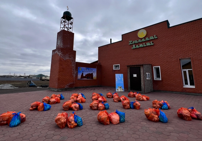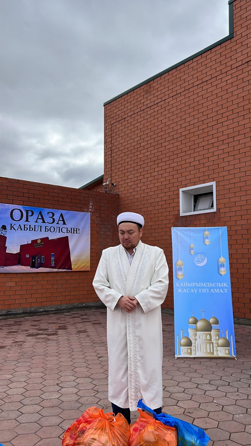 Қарағанды облысы, Бұқар Жырау ауданына қарасты Көкпекті ауылдық мешітінің имамы Нұржан Оңғарұлының ұйымдастыруымен рамазан айының құрметіне орай әлеуметтік көмекке мұқтаж 60 отбасыға азық-түлік үлестірілді.