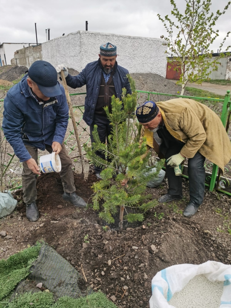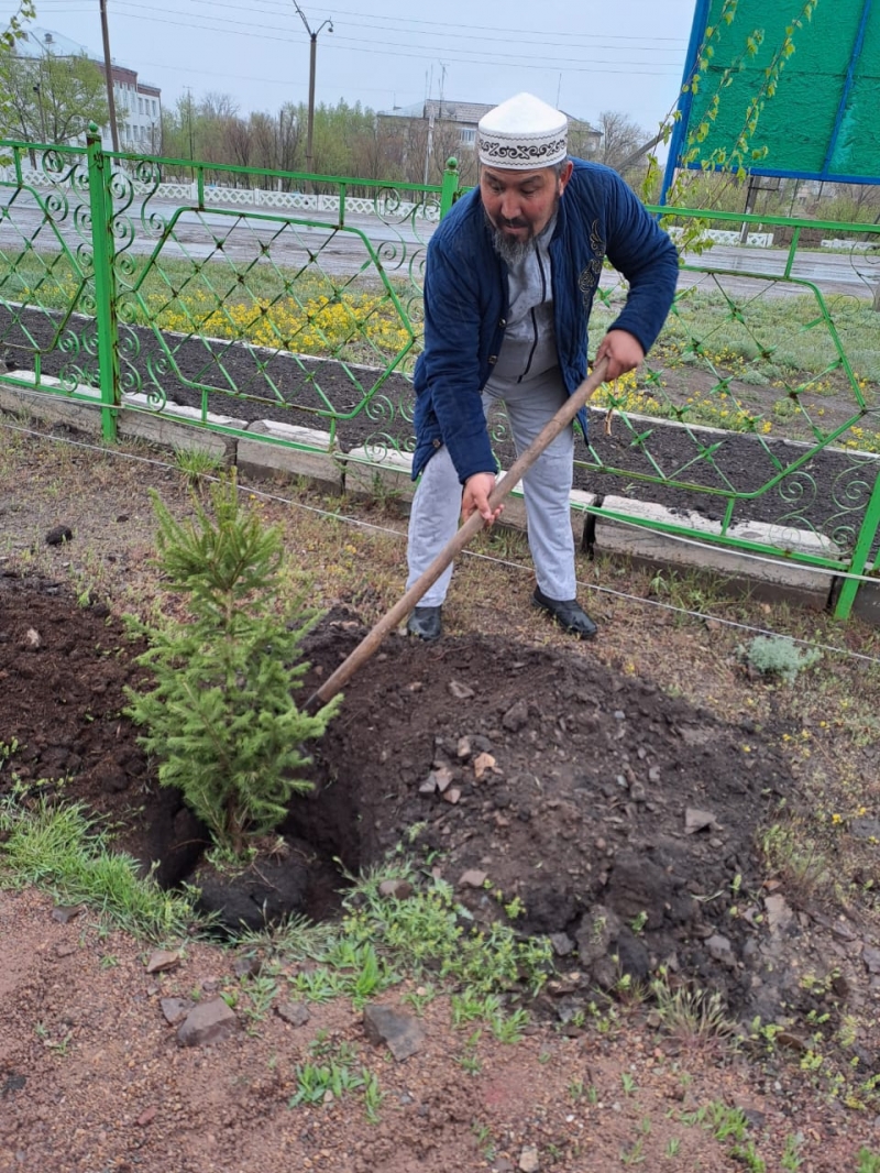 Абай ауданына қарасты Топар кенті «Жұмабек Тәшен» мешітінің имамы Ақмағамбет Мурсали Қаленұлының ұйымдастыруымен мешіт ауласында көгалдандыру жұмыстары жүргізіліп, тал отырғызылды.