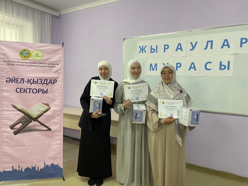 Үштөбе ауылдық "Қажыбай қажы" мешіті, әйел-қыздар секторы, Гүлімжан Уматаева және Гүлнұр Қаныбекқызы ұстаздардың ұйымдастыруымен, шәкірттер арасында "Жыраулар мұрасы -тәрбие тамыры" тақырыбында интеллектуалды сайыс өтті.