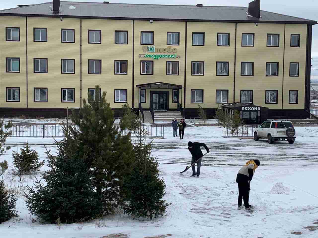 «Хазірет Әли» мешітінің жамағаты мешіт ауласын қардан тазартты